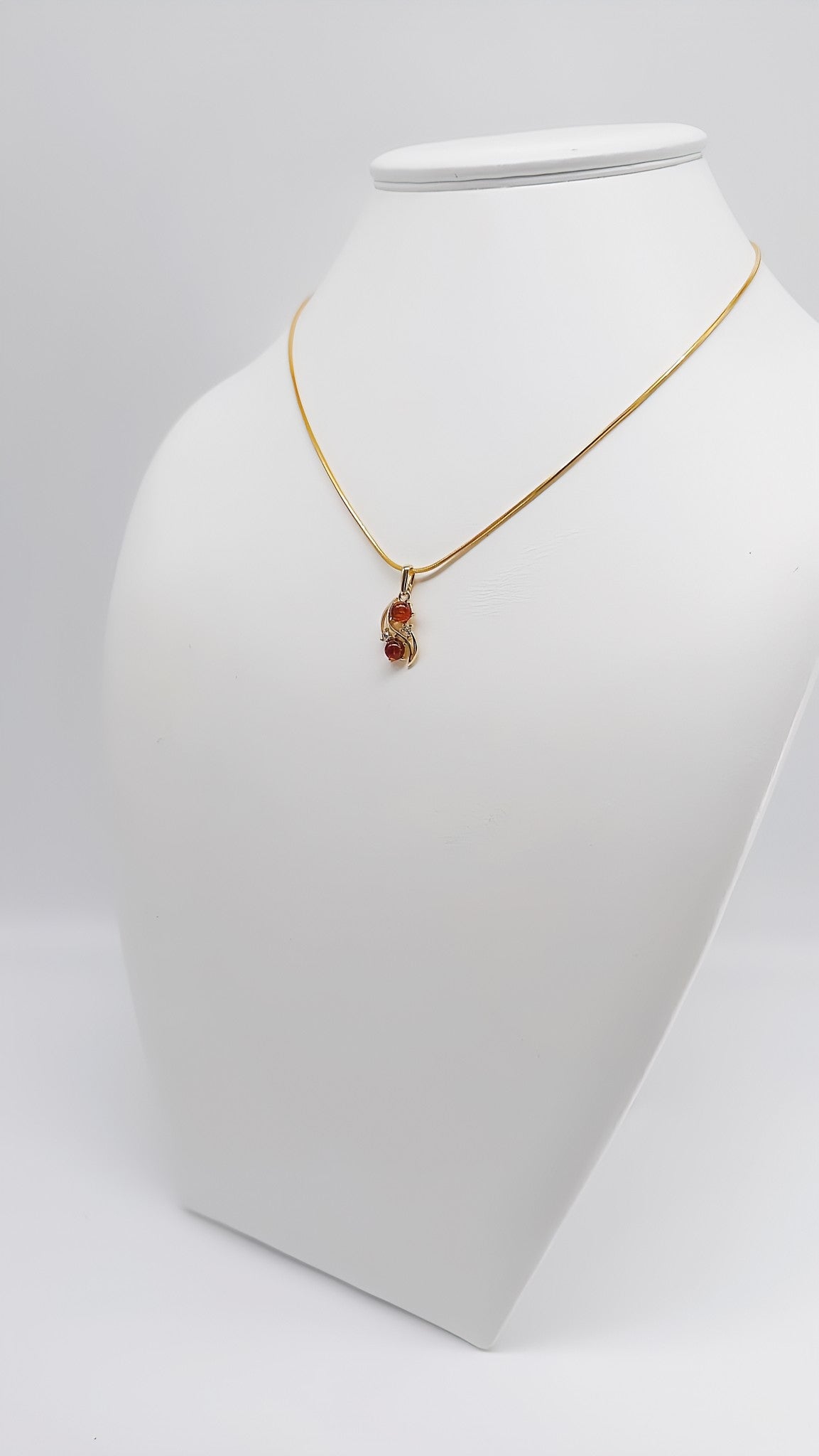 This decorative, gold-plated amber pendant exudes refined elegance. The meticulous craftsmanship and delicate design make this pendant a timeless piece of jewelry. The sparkling amber adds a beautiful accent and adds a sophisticated touch to any outfit. Ideal as a special gift or to enhance your jewelry collection.