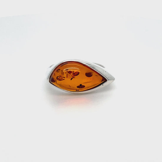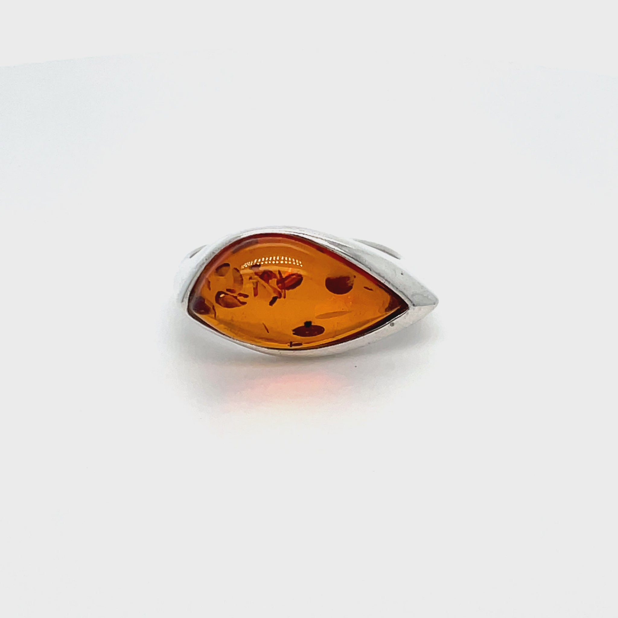925er Sterlingsilber mit echtem Bernstein, handgefasst.