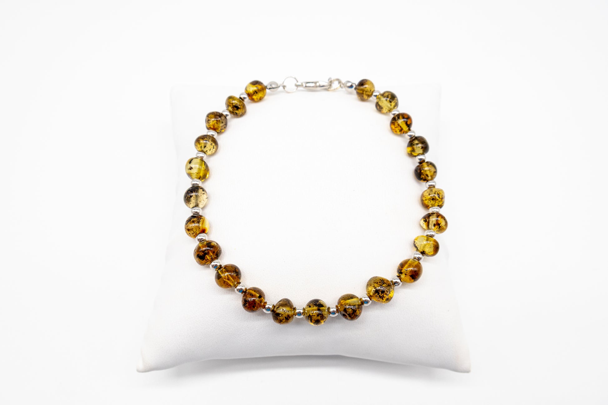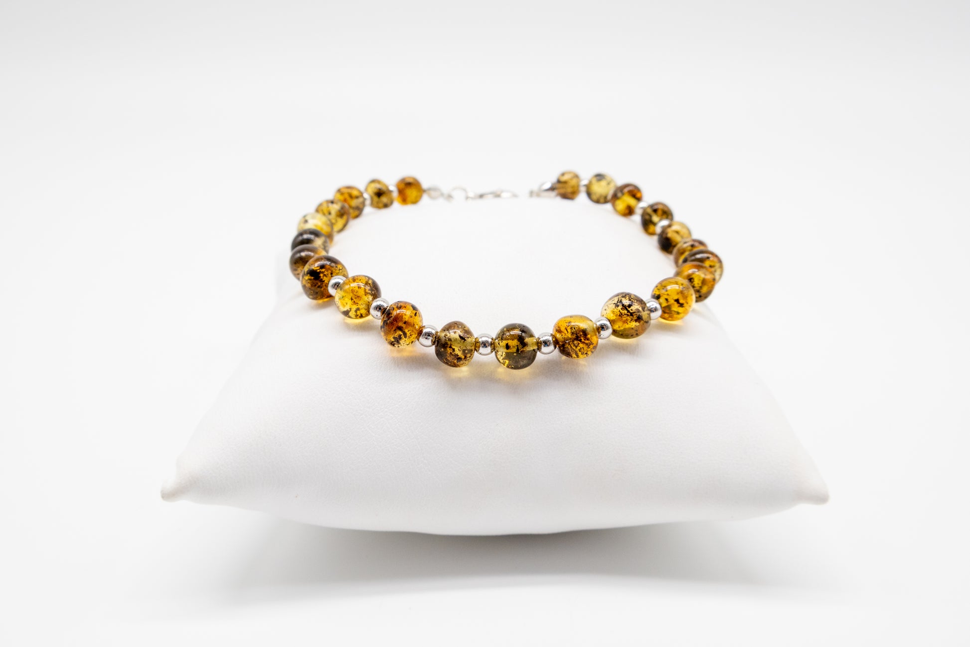 This elegant amber bracelet with silver beads is a timeless piece of jewelry for women and teenagers. The round amber beads in warm cognac and honey tones are stylishly complemented by lustrous silver beads.