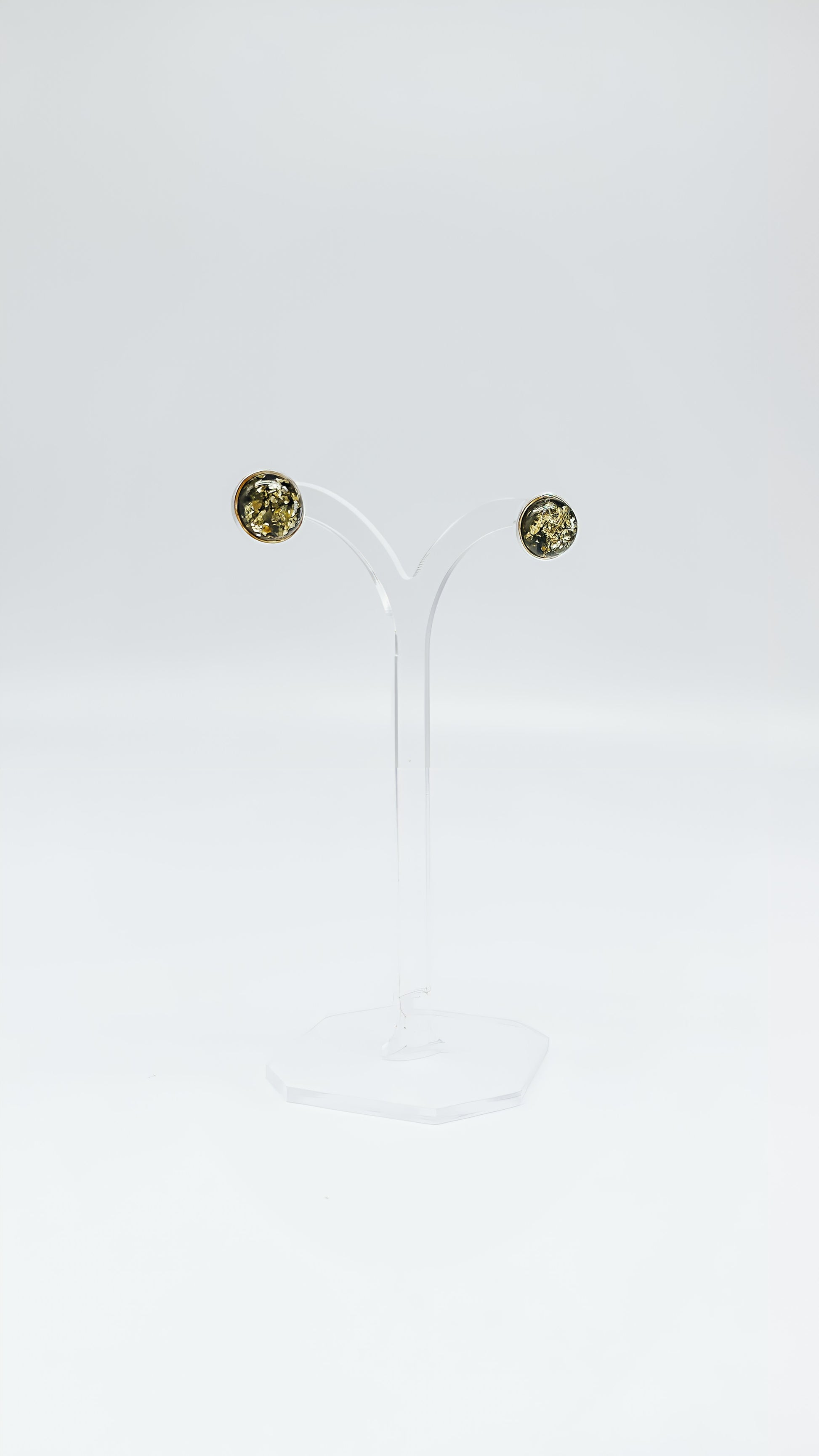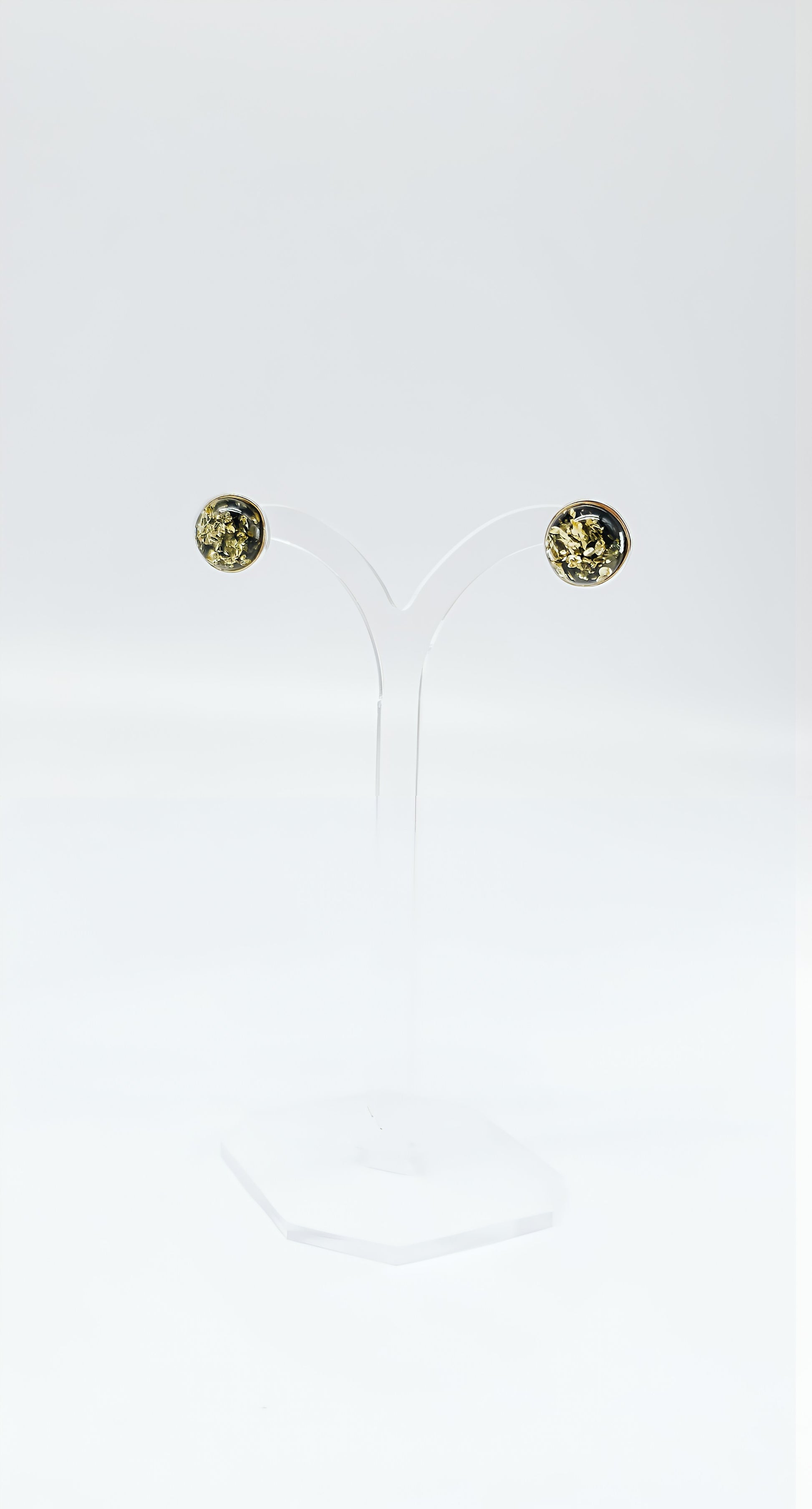 These 925 sterling silver stud earrings with green amber combine natural charm and simple elegance. The unique green hue of the amber creates a mesmerizing sparkle that immediately catches the eye. Perfect for everyday wear or special occasions, these stud earrings offer a subtle yet stylish addition to any look.