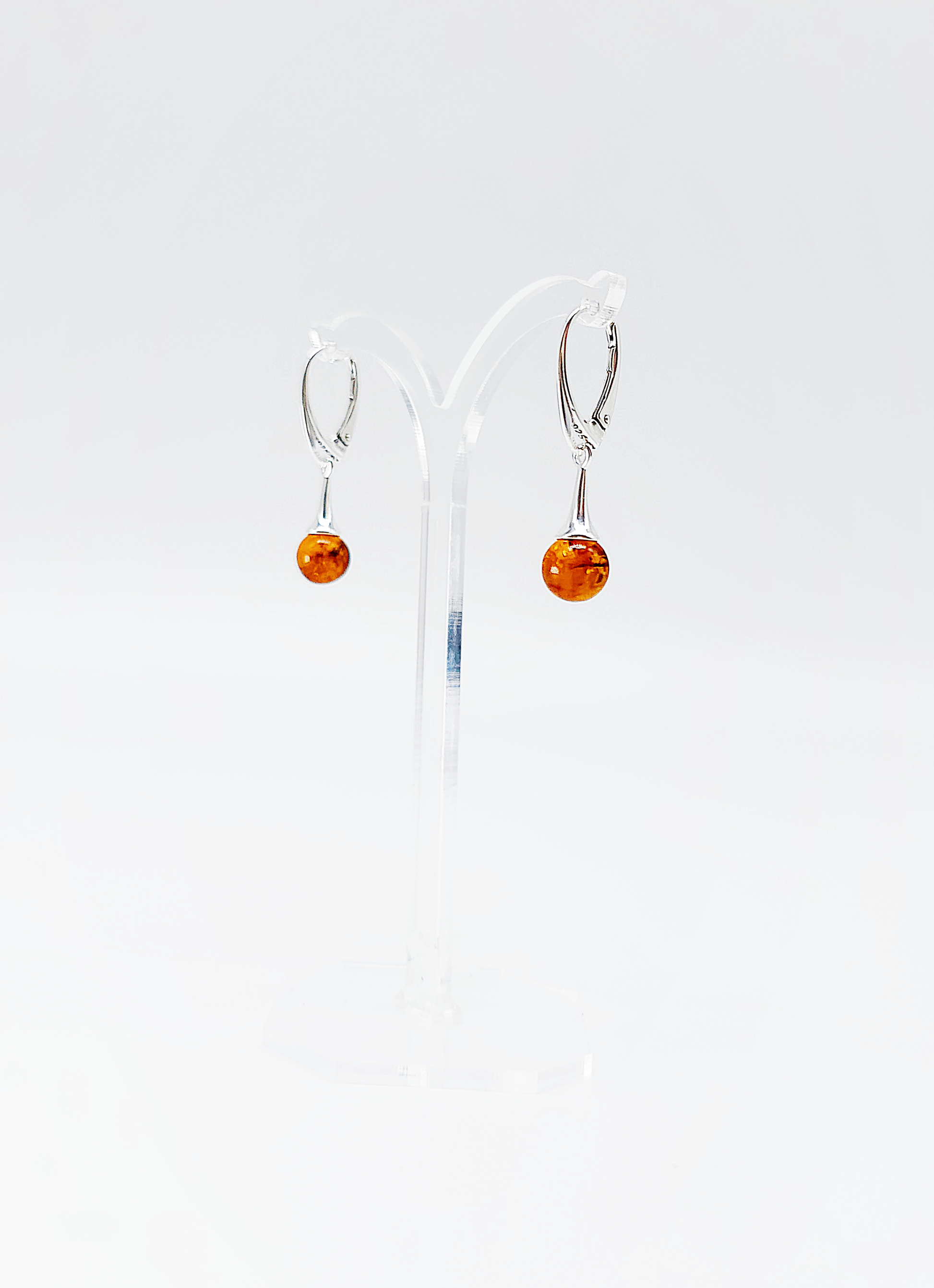 These elegant silver amber drop earrings combine simple design with timeless elegance. The luminous amber spheres hang from a smooth silver setting, perfectly highlighting the warm glow of the amber. These earrings are an ideal companion for any occasion, whether everyday or special occasions. They add a sophisticated and stylish touch to any outfit.