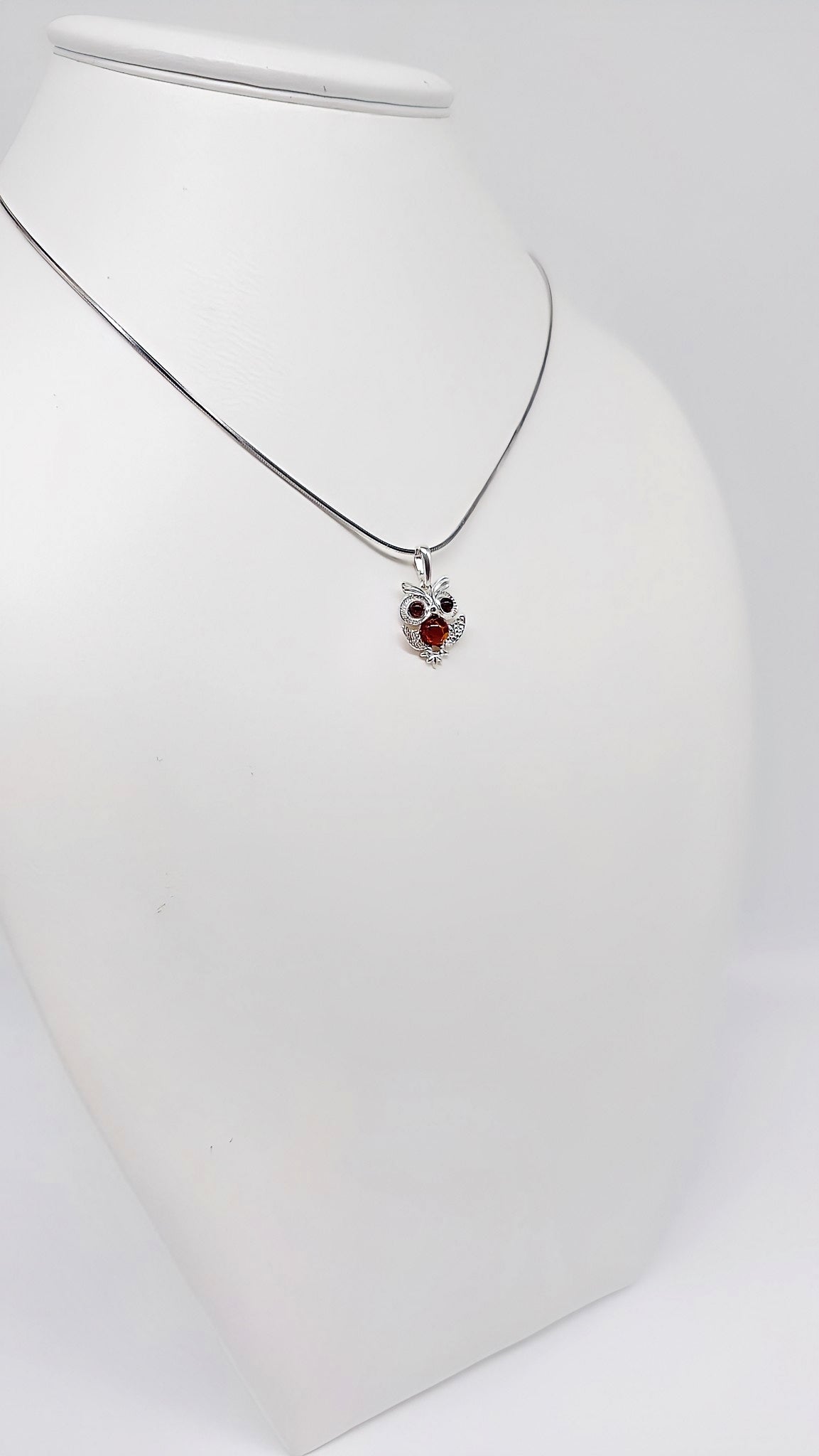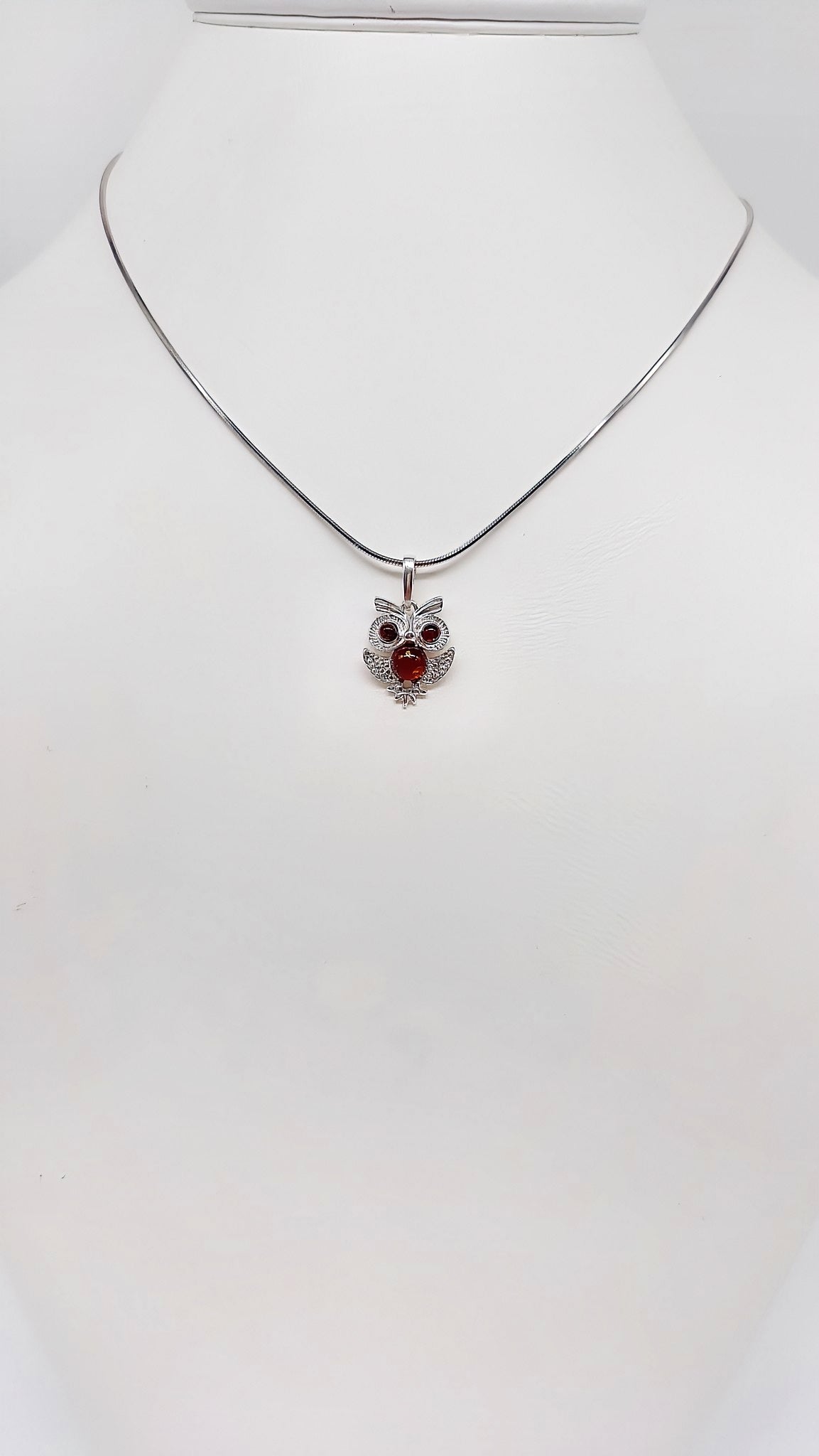 This enchanting owl pendant, crafted from precious silver and set with radiant amber, adds a unique touch to your style. The owl symbolizes wisdom and protection, while the amber represents positive energy and warmth. An elegant and meaningful piece of jewelry that adds sparkle and depth to your outfit.