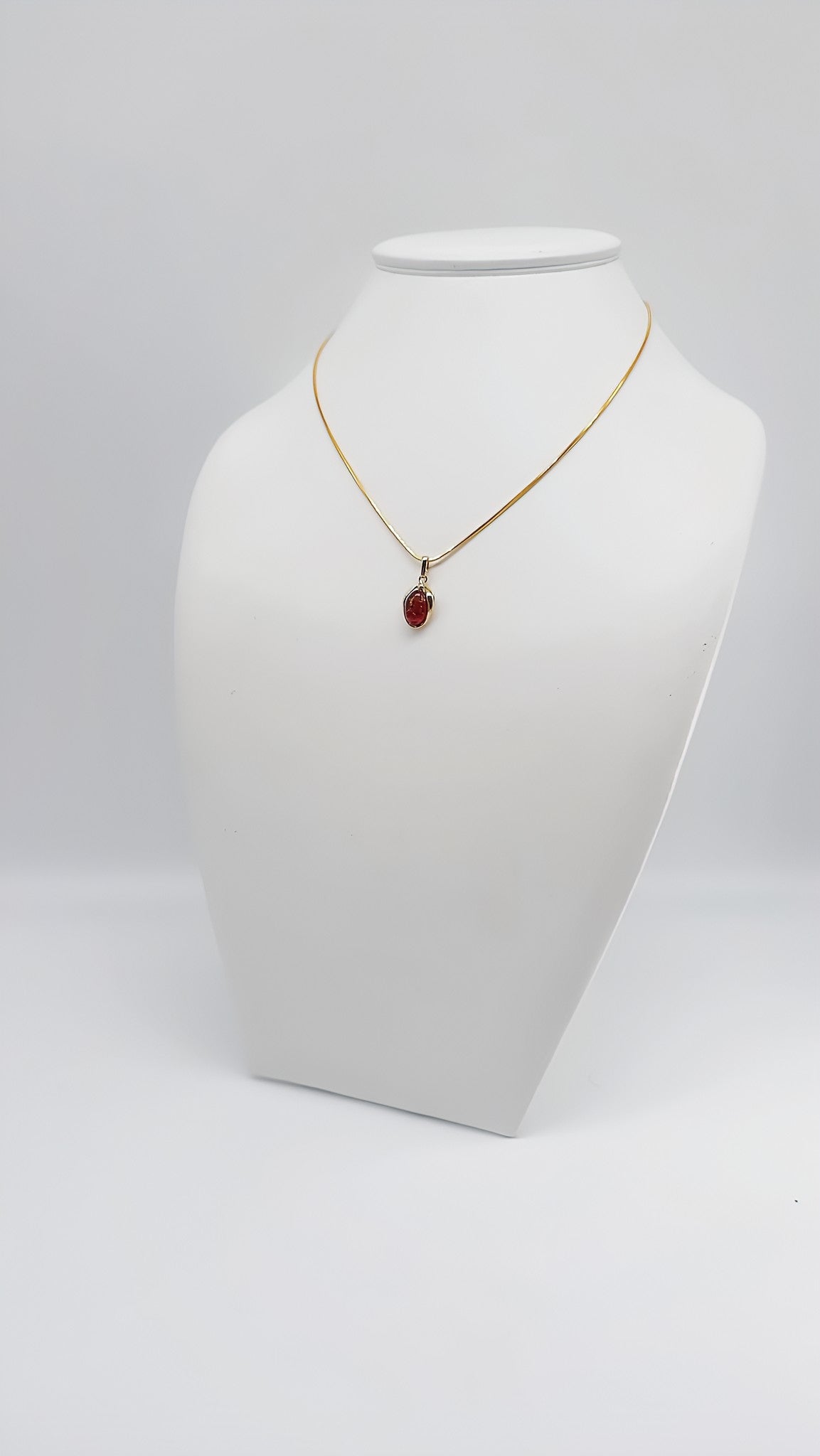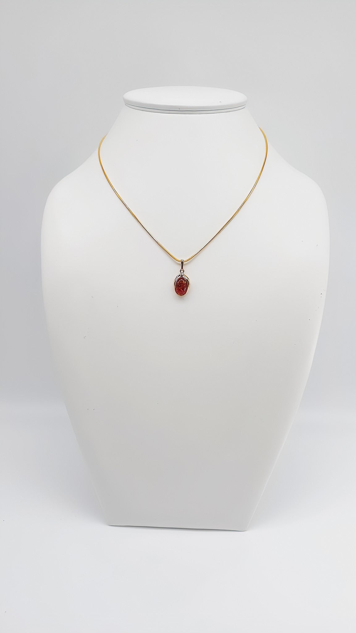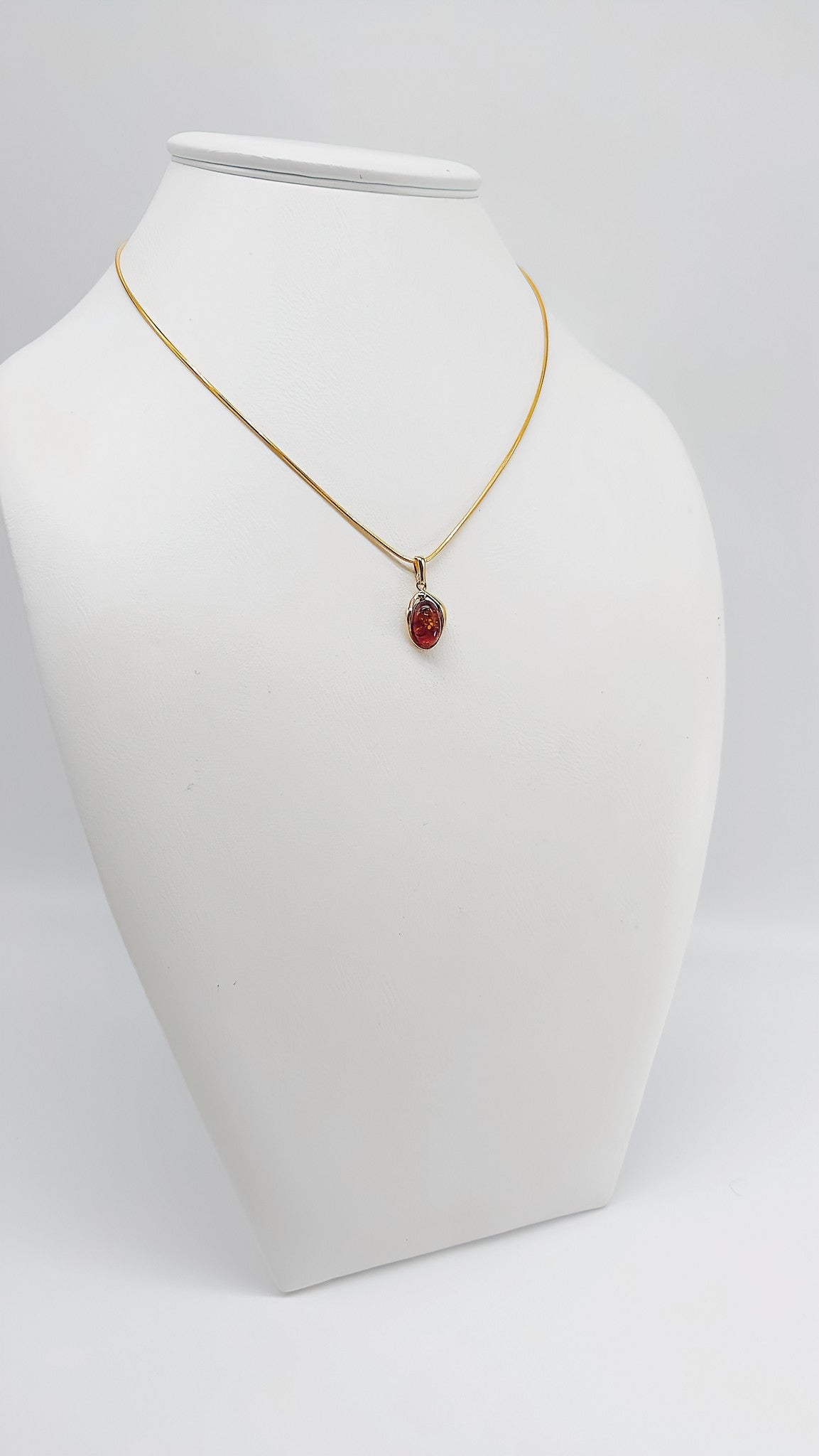 This delicate amber pendant captivates with its simple elegance and the warm radiance of amber. The amber is embedded in a high-quality, gold-plated setting that perfectly showcases its luminous tones. A stylish and timeless piece of jewelry, perfect for everyday wear as well as special occasions.