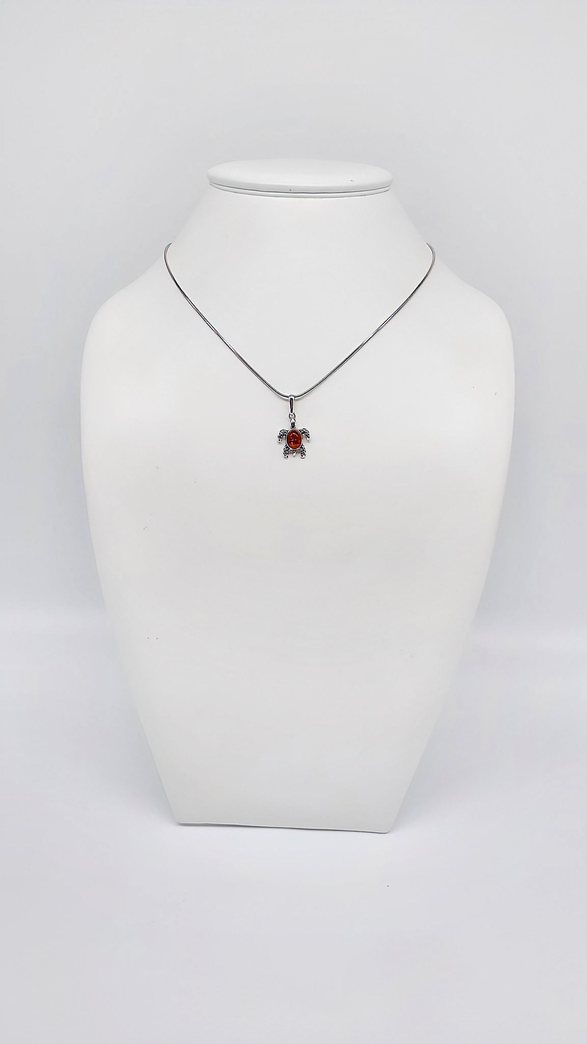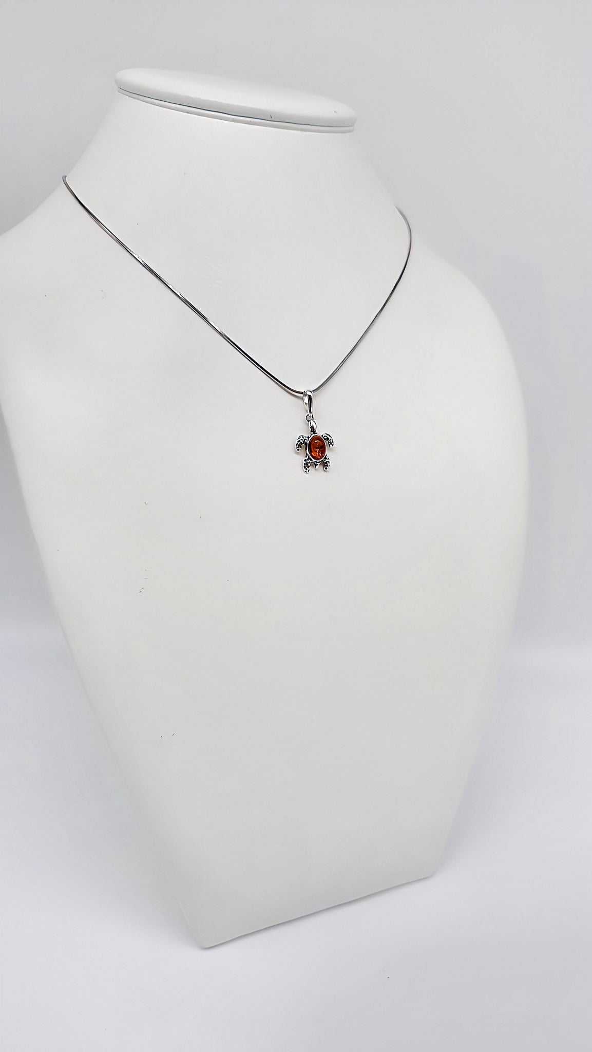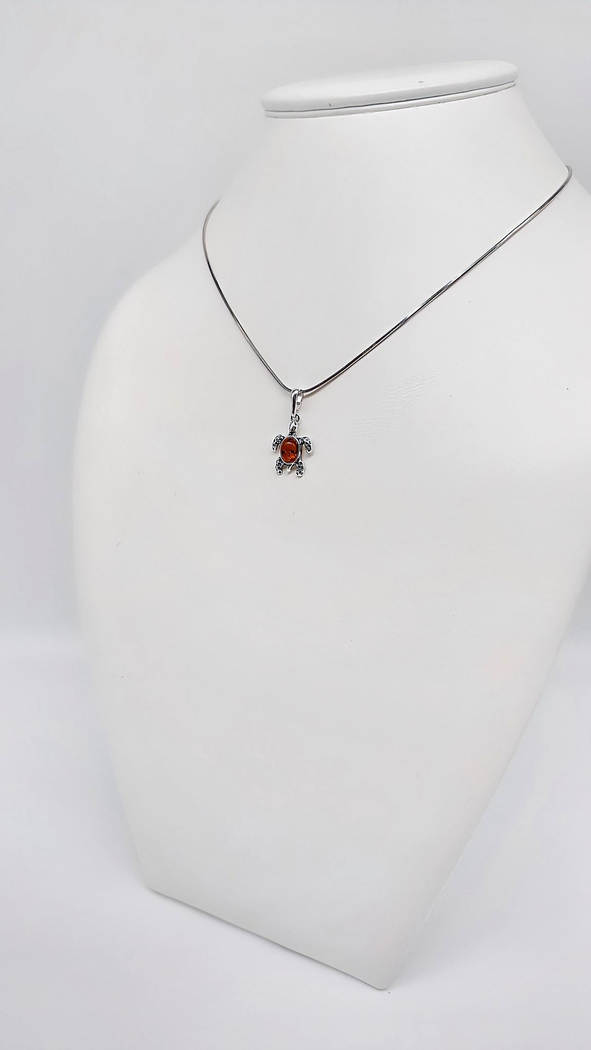 This enchanting turtle pendant, crafted from high-quality 925 sterling silver, is a perfect piece of jewelry for nature and turtle lovers. The pendant is adorned with warm amber, giving the piece a natural beauty and a unique radiance. The delicate depiction of the turtle adds elegance and charm to any outfit. This pendant makes a wonderful gift for animal lovers or a stylish addition to your own jewelry collection. Wear this carefully crafted piece of jewelry and show your connection to nature with style.