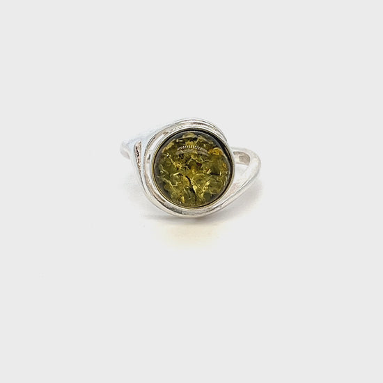 Dieser Silberring aus 925er Sterlingsilber besticht durch einen ausdrucksstarken grünen Bernstein mit lebendiger Struktur. Die natürlichen Einschlüsse im Stein sorgen für Tiefe und machen jedes Schmuckstück zu einem echten Unikat.