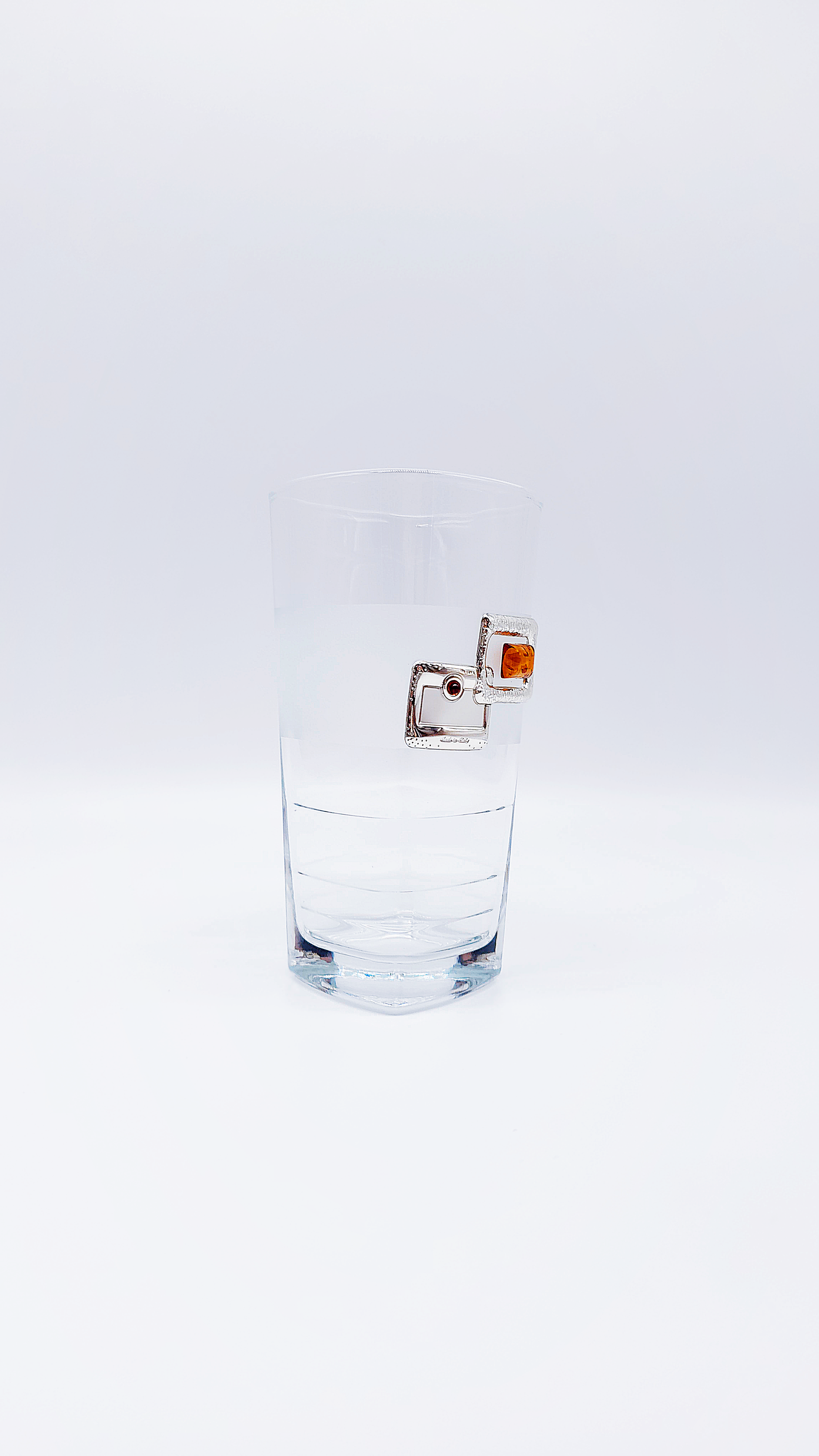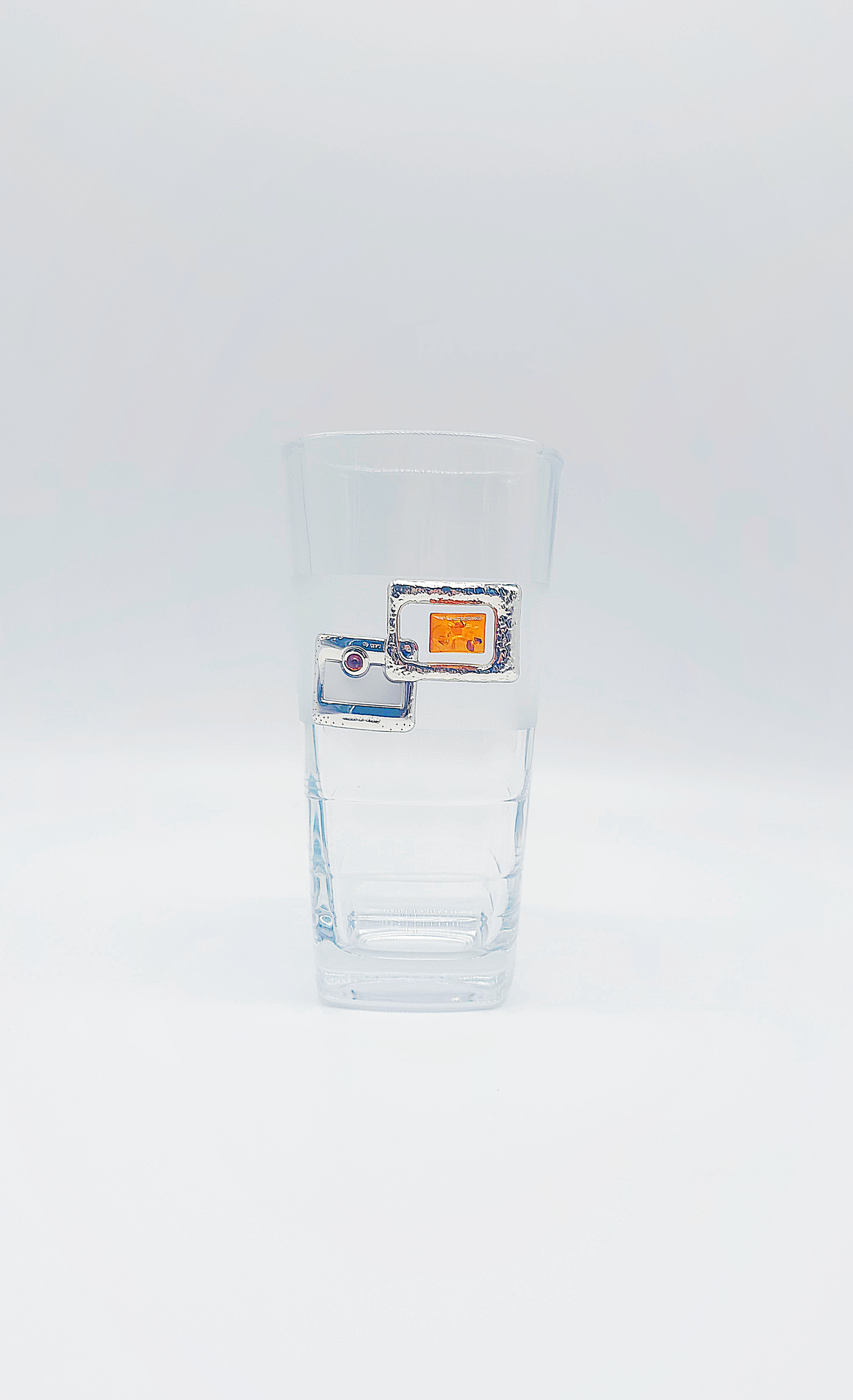 Elegant water glass with amber and silver decoration