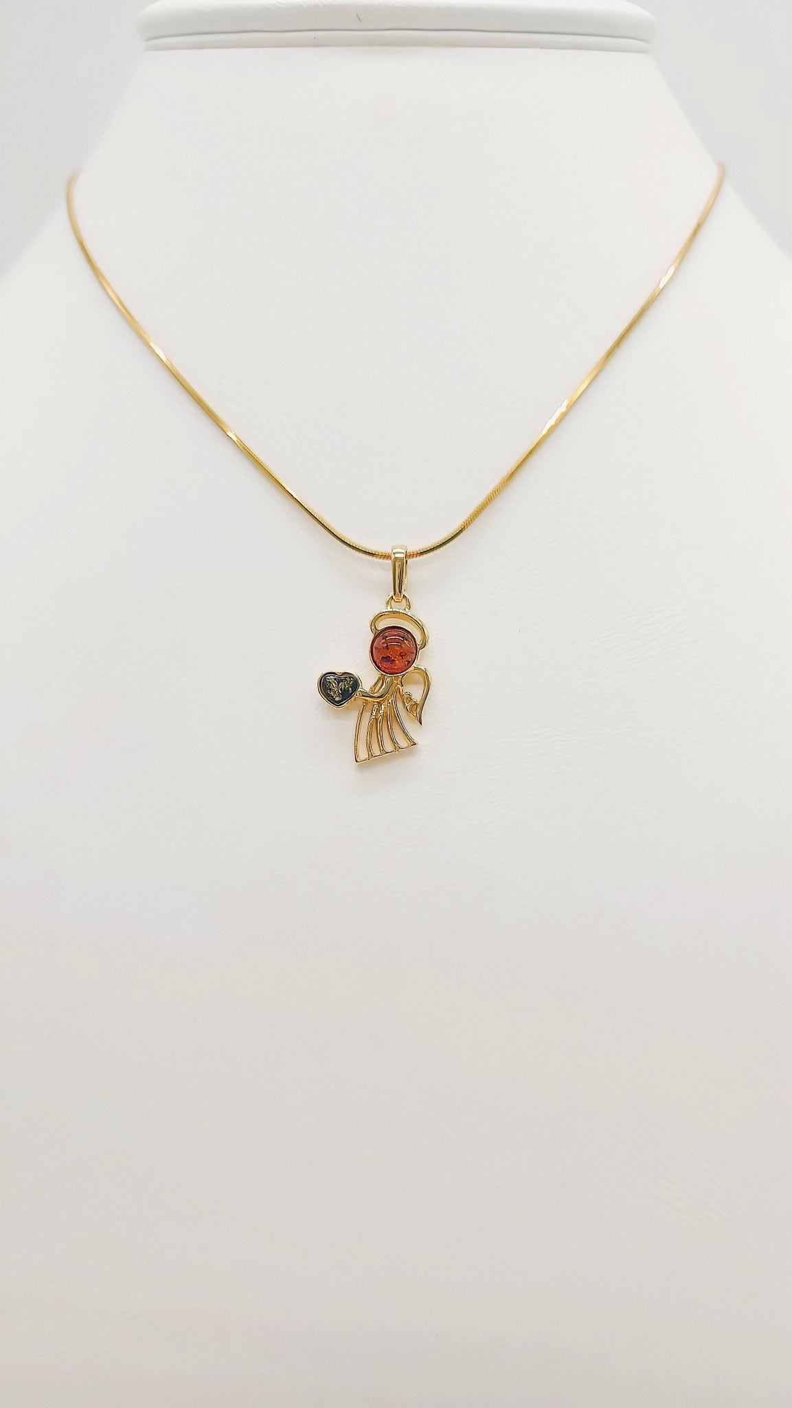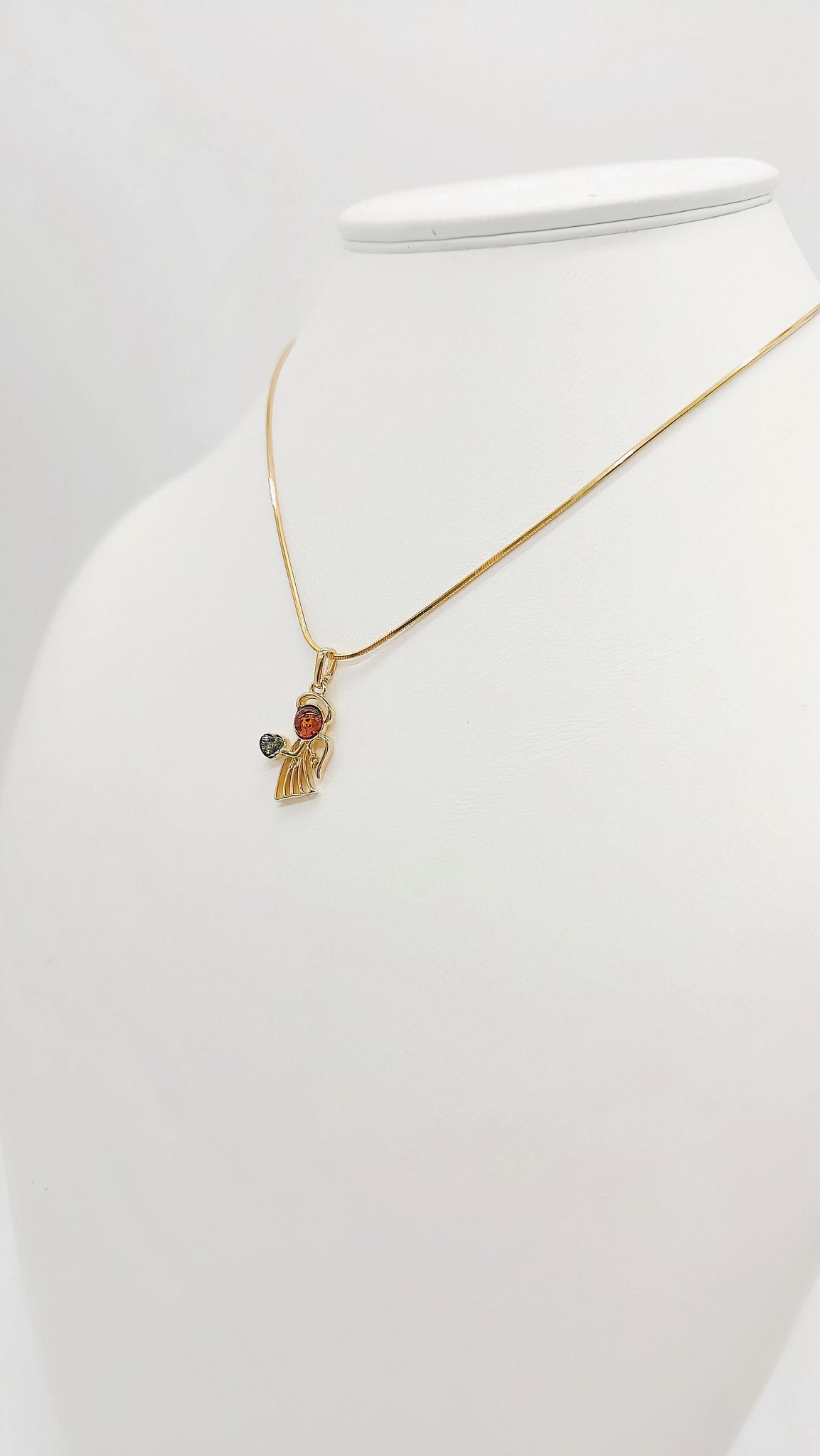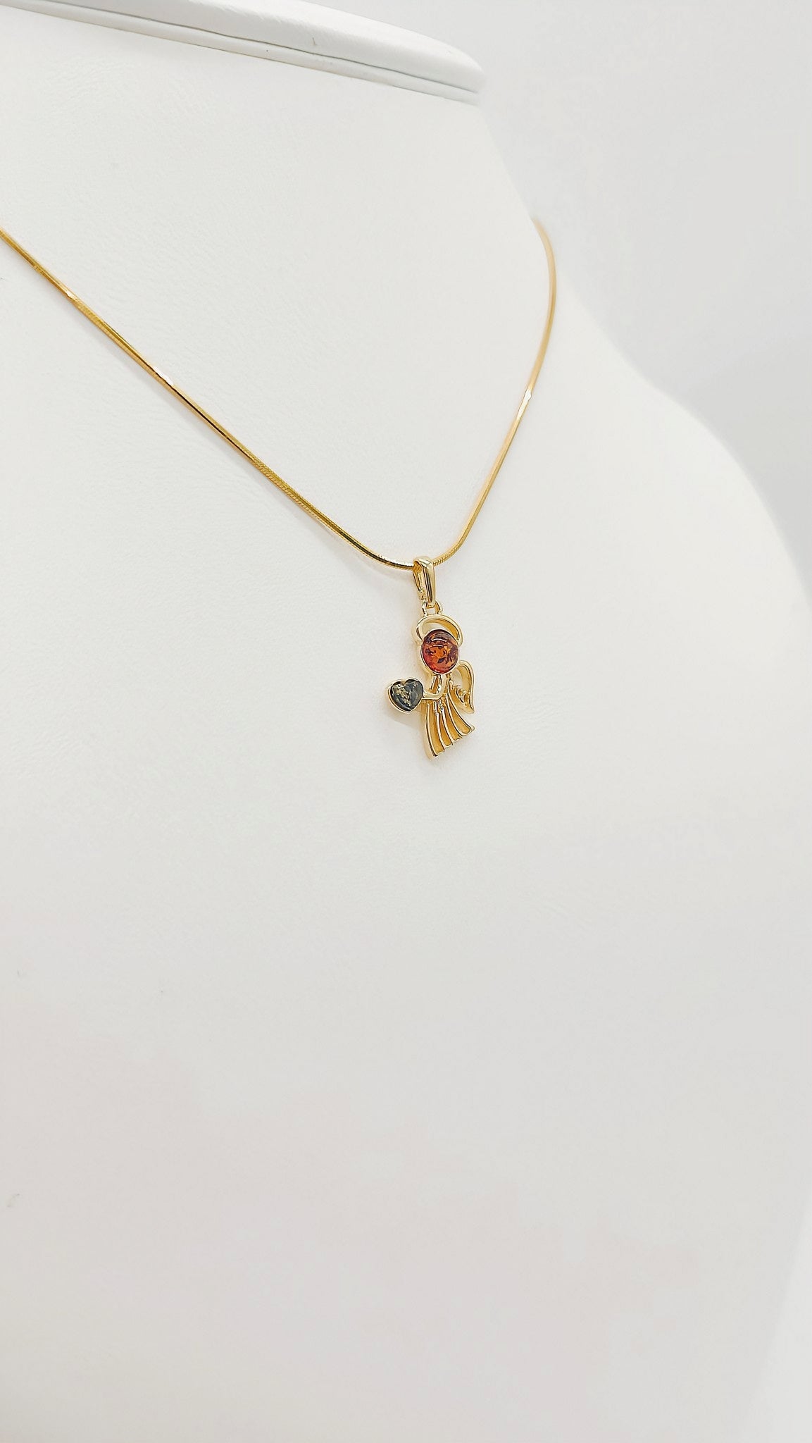 Angel pendant made of gold-plated silver with amber