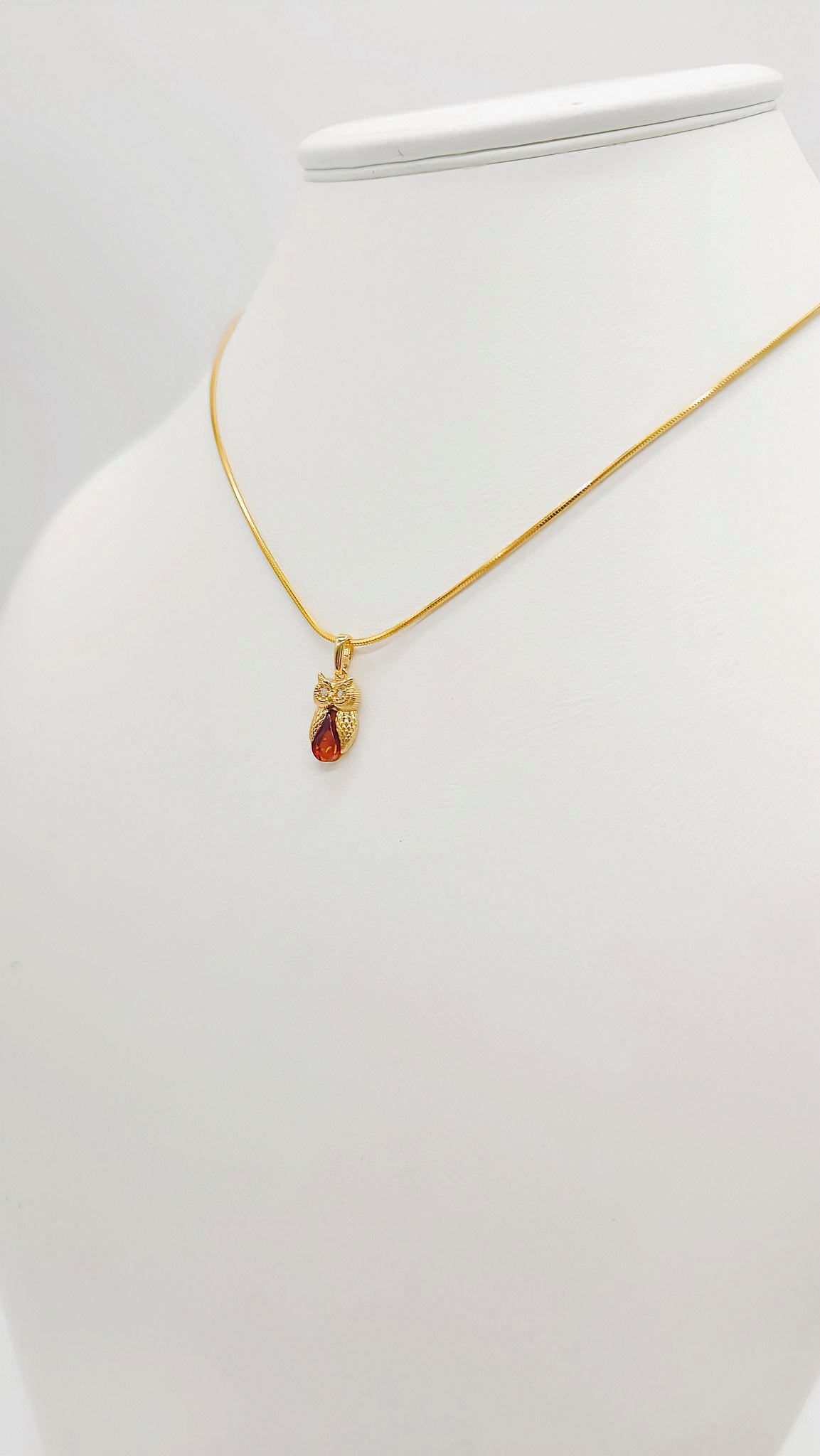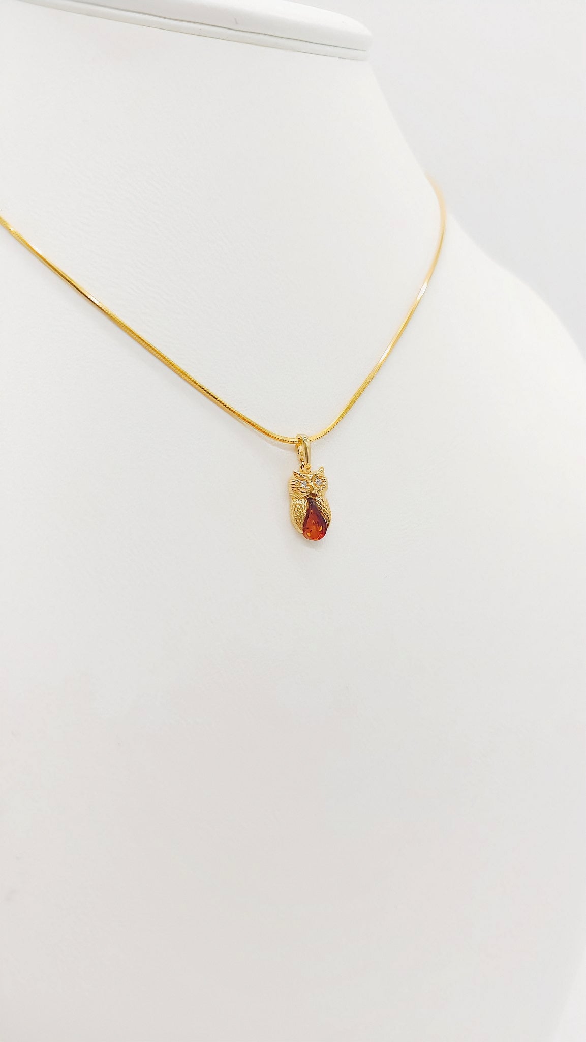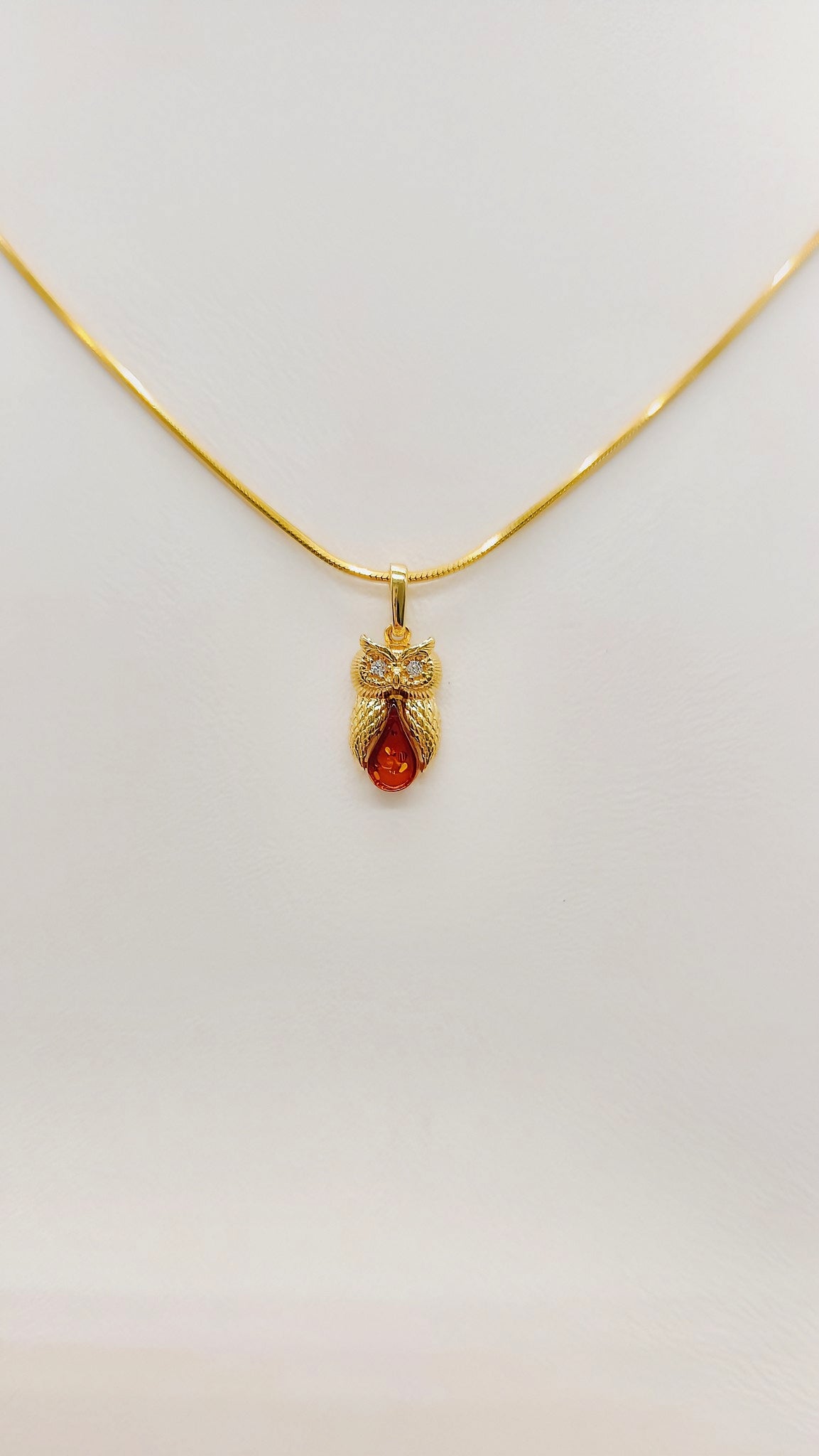 This charming owl pendant, crafted from gold-plated 925 Sterling silver and sparkling amber, is a symbol of wisdom and protection. The luminous amber forms the owl's belly and lends the pendant a warm, golden glow. The detailed design and high-quality material make this piece of jewelry a unique accessory that can be worn both everyday and on special occasions.