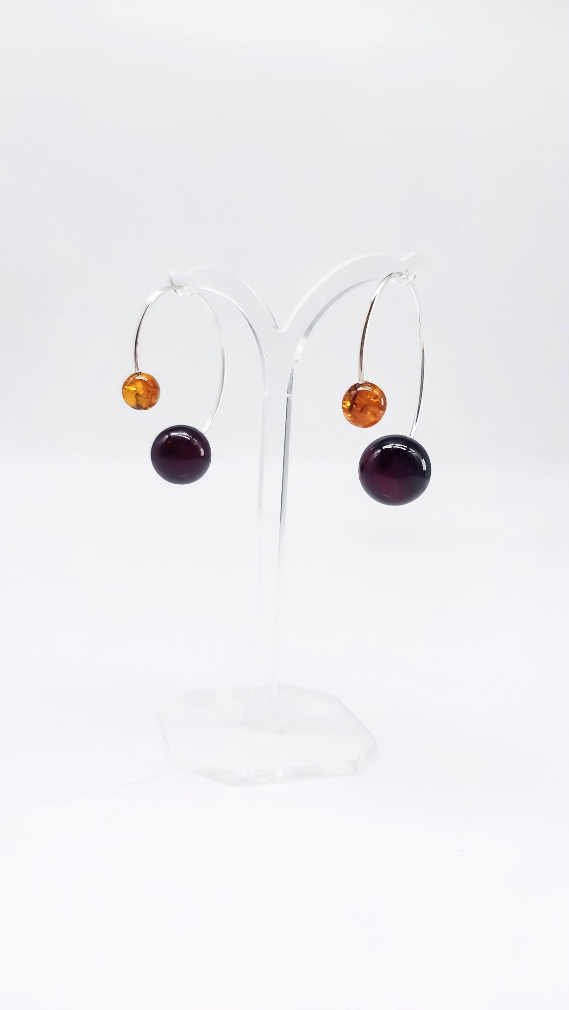 These handcrafted amber earrings crafted from 925 sterling silver combine modern design with natural beauty. The amber beads of varying sizes create a harmonious balance that gently resonates with every movement. The delicate silver setting adds lightness and elegance. Each pair is handcrafted and unique , perfectly showcasing the warm hues of the natural stone.