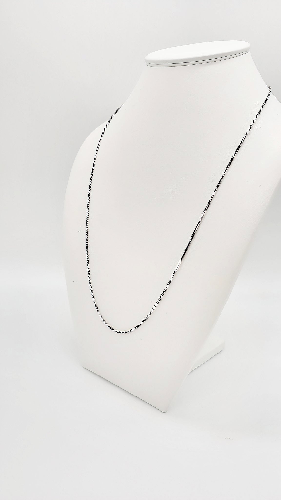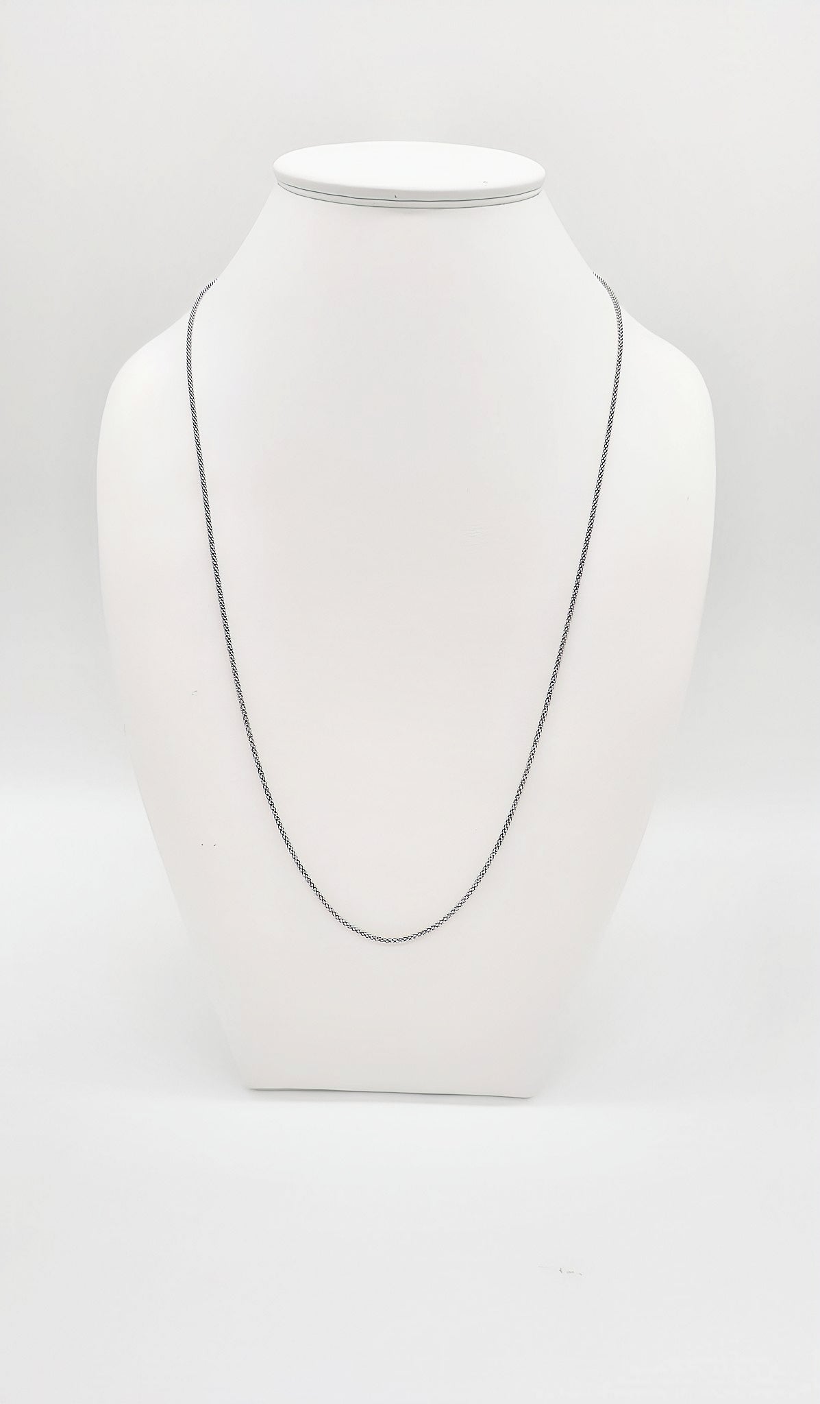 This delicate rhodium-plated 925 sterling silver necklace impresses with its simple, elegant design. The rhodium plating protects the silver from tarnishing and gives the necklace a radiant shine. Measuring 70 cm in length, it's ideal for stylishly displaying your amber jewelry. This necklace is the perfect choice for anyone looking for a timeless and versatile piece of jewelry.