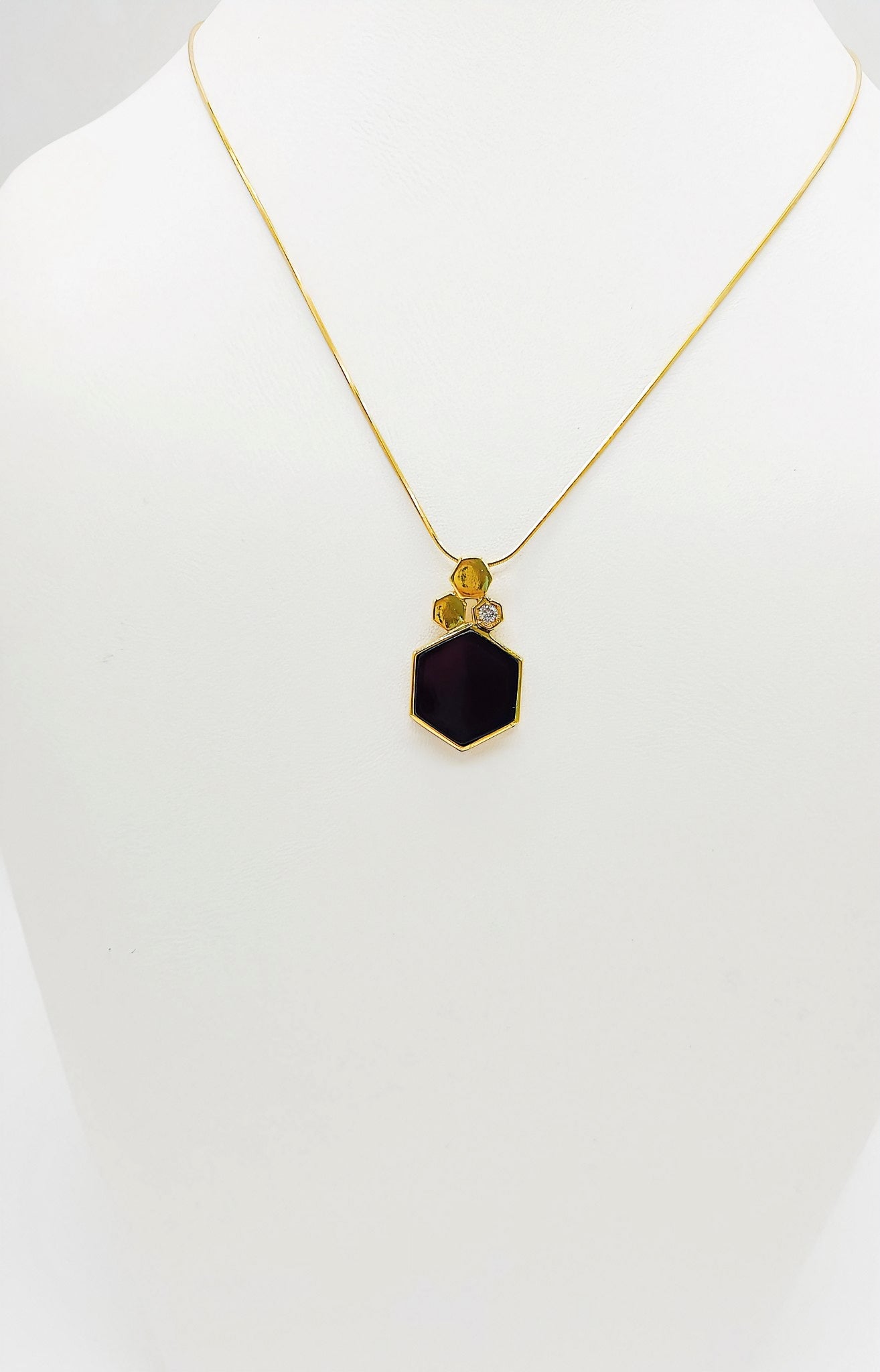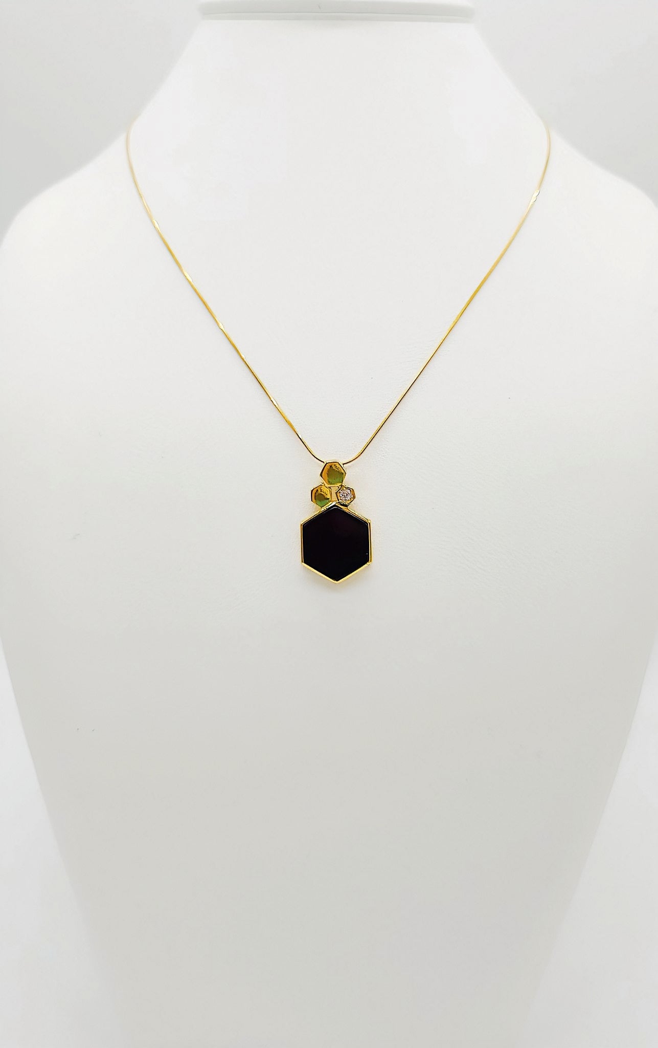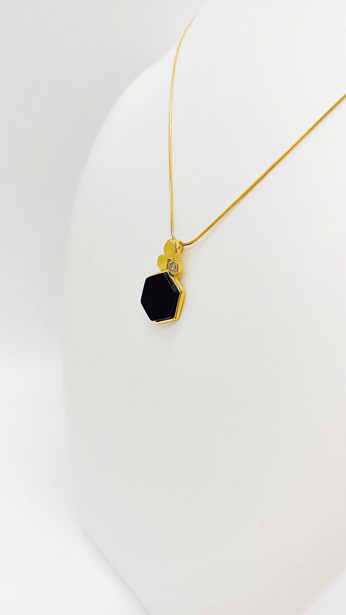 This modern pendant, crafted from gold-plated 925 sterling silver, combines minimalist design with the natural beauty of amber. The geometric hexagon design lends the piece a contemporary elegance, while the deep, warm tone of the amber exudes a sense of sophistication and style. Ideal for those who appreciate modern aesthetics and timeless materials.