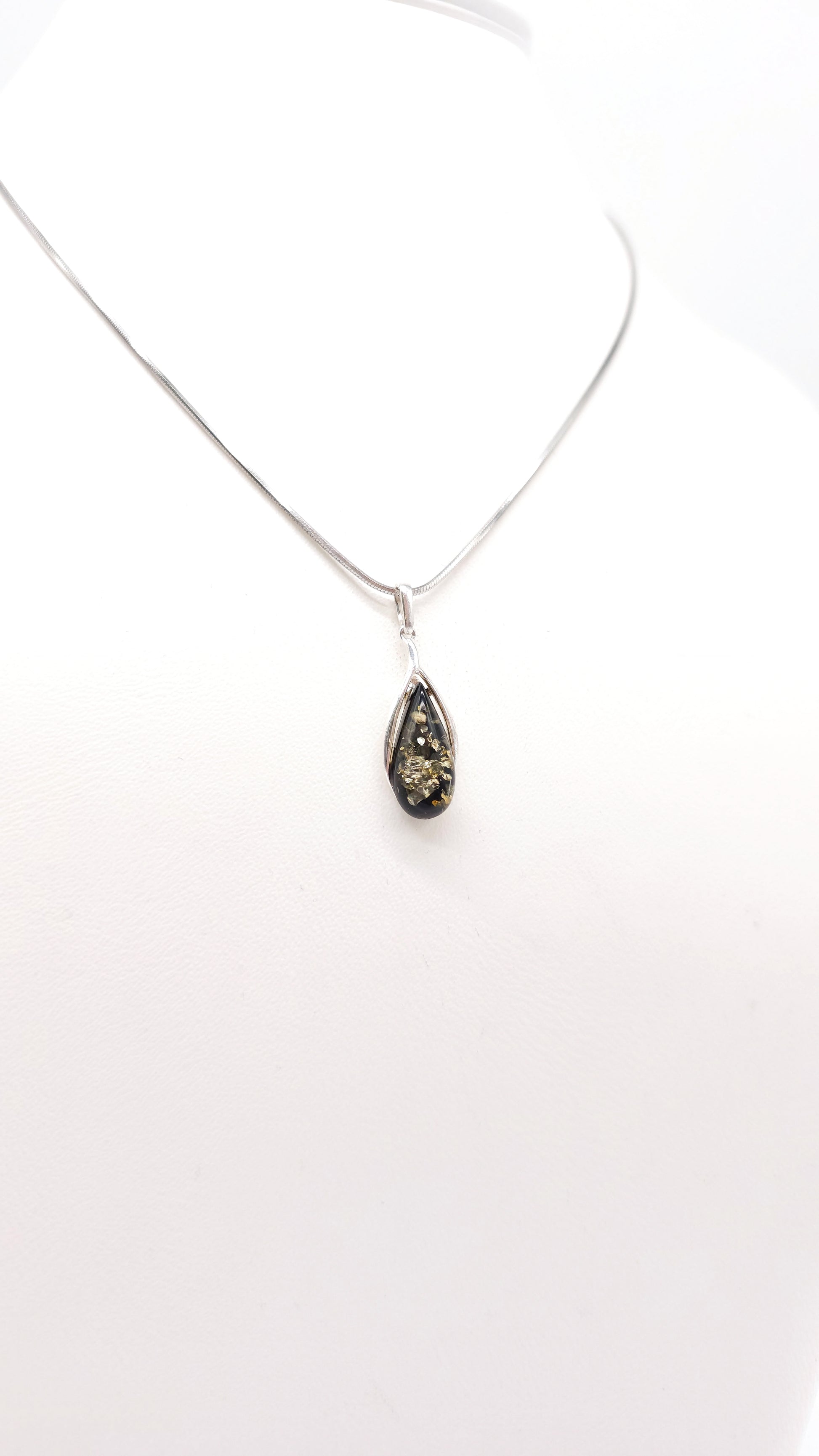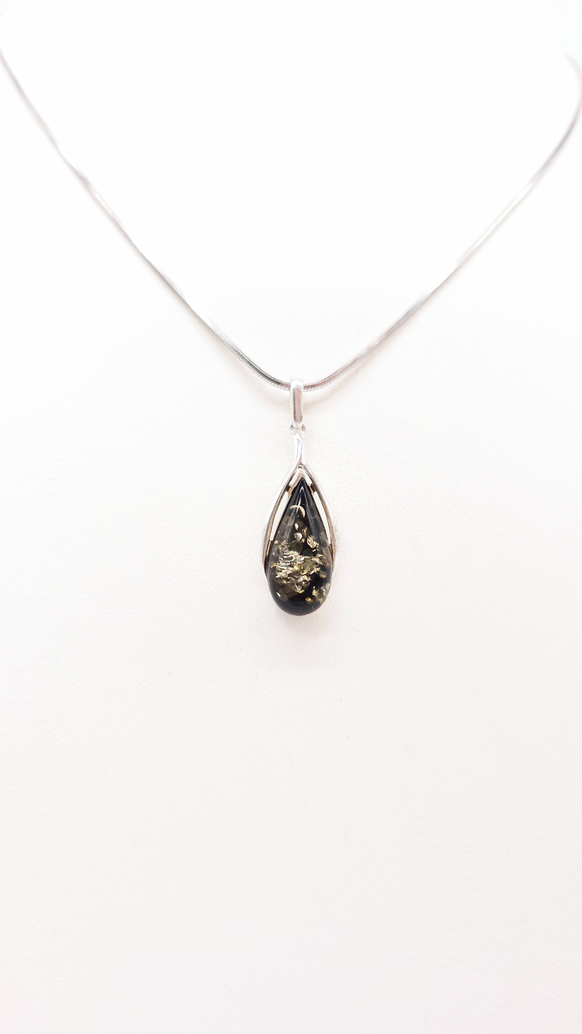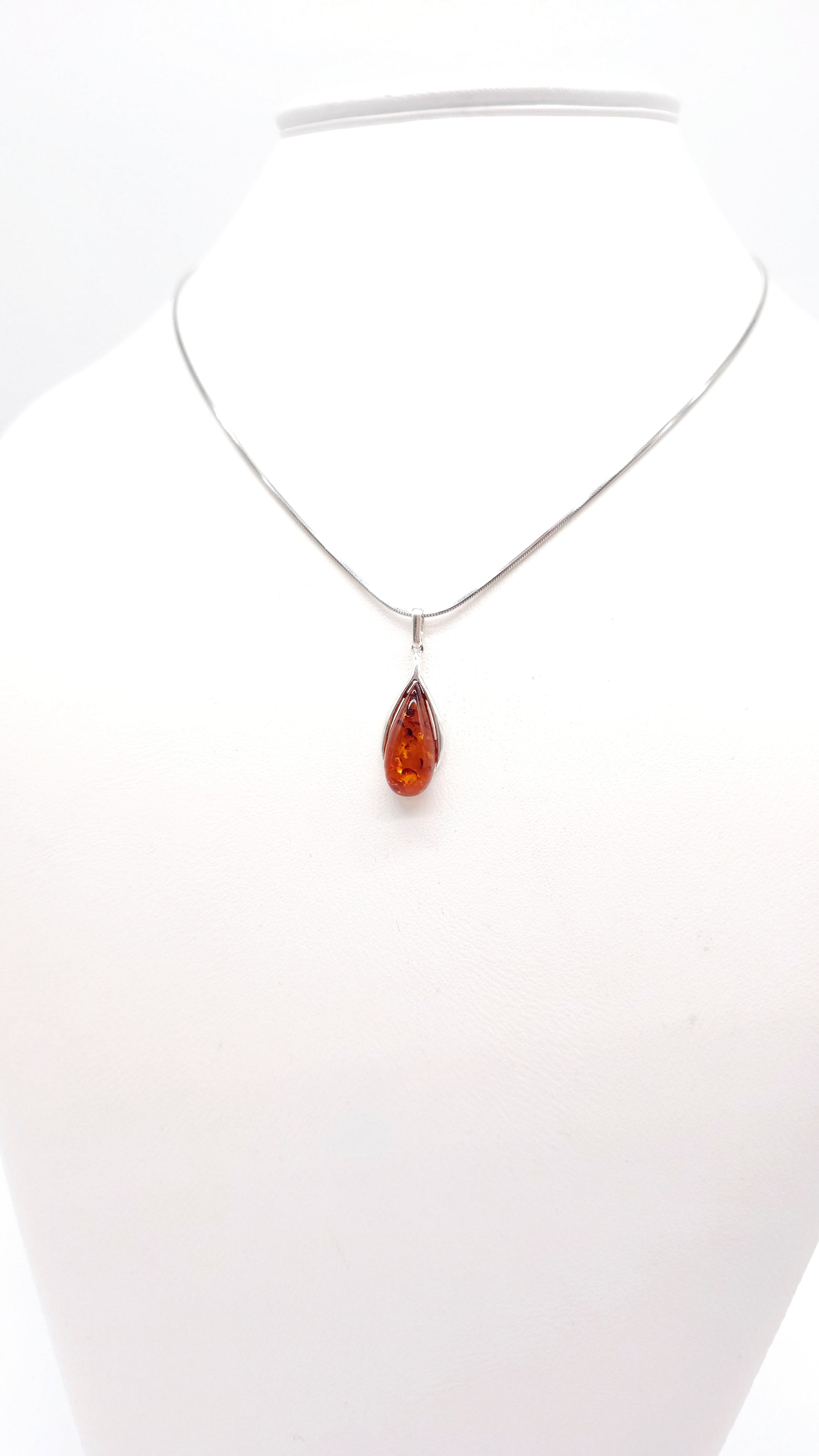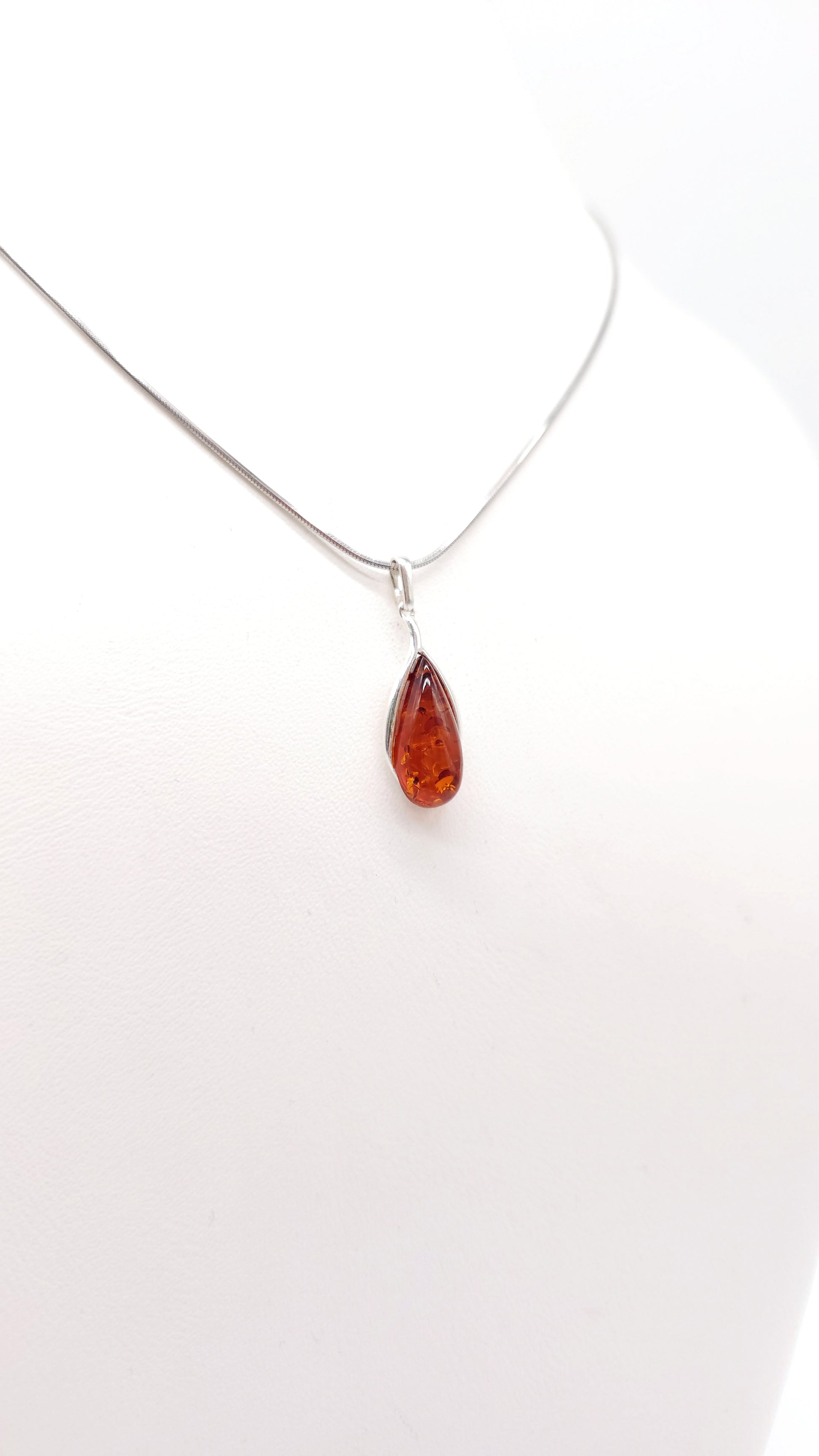 This elegant pendant made of 925 sterling silver impresses with its natural beauty and timeless design. The 3.6 cm x 1.5 cm pendant is set with a teardrop-shaped genuine amber, whose warm, honey-colored tones shimmer mesmerizingly in the light. The classic silver setting emphasizes the stone's refined radiance and makes the pendant a versatile companion.