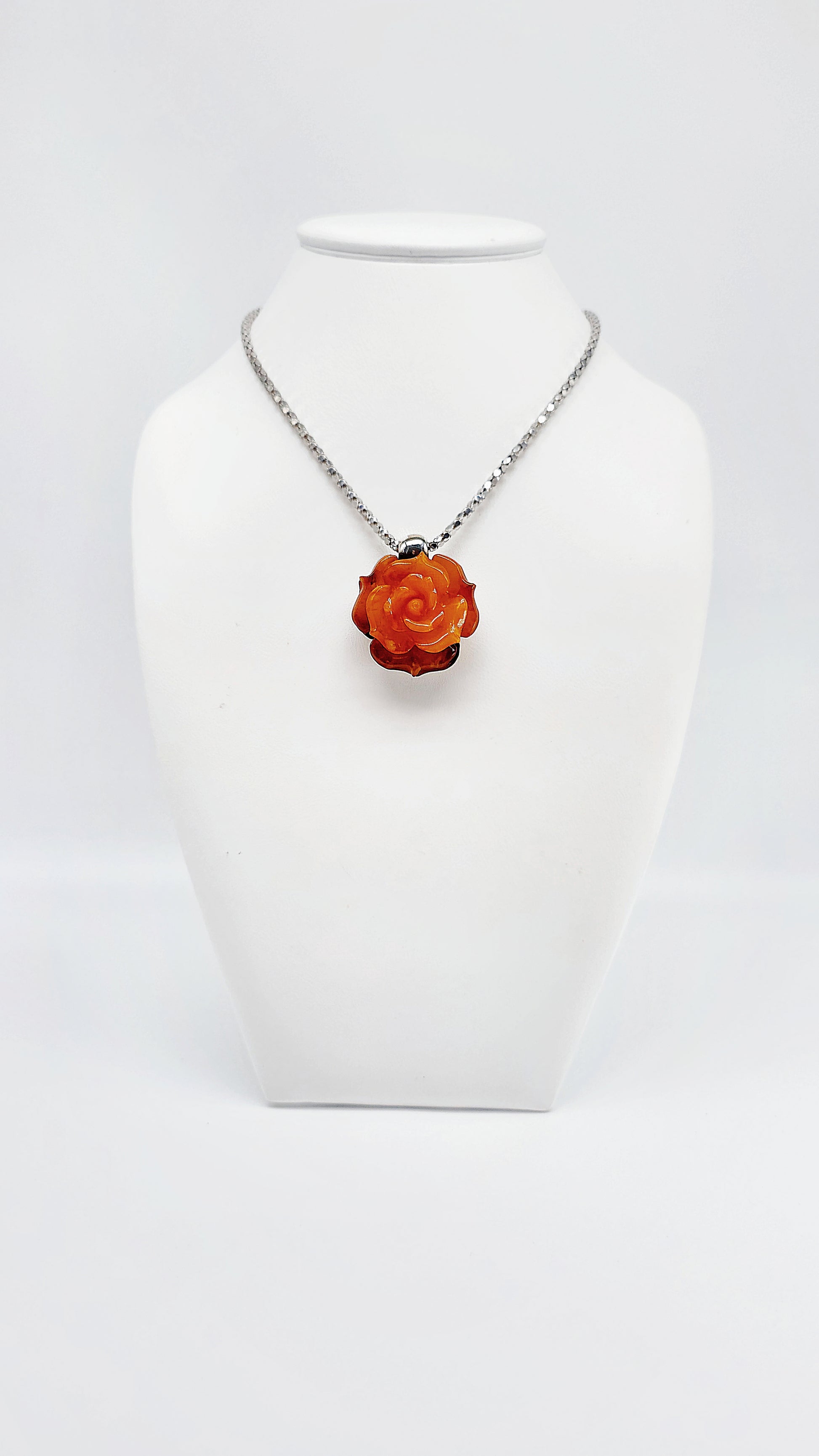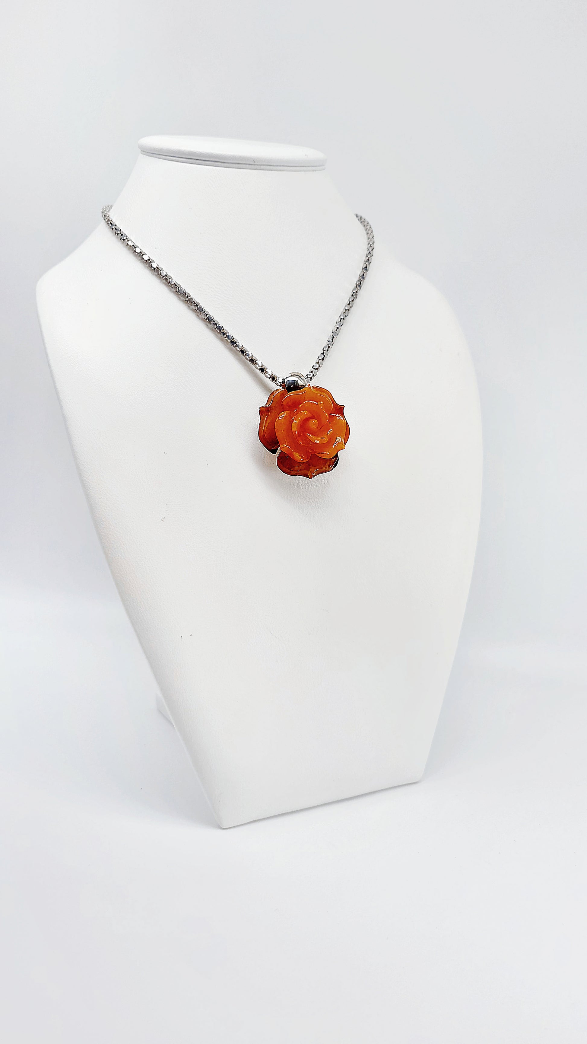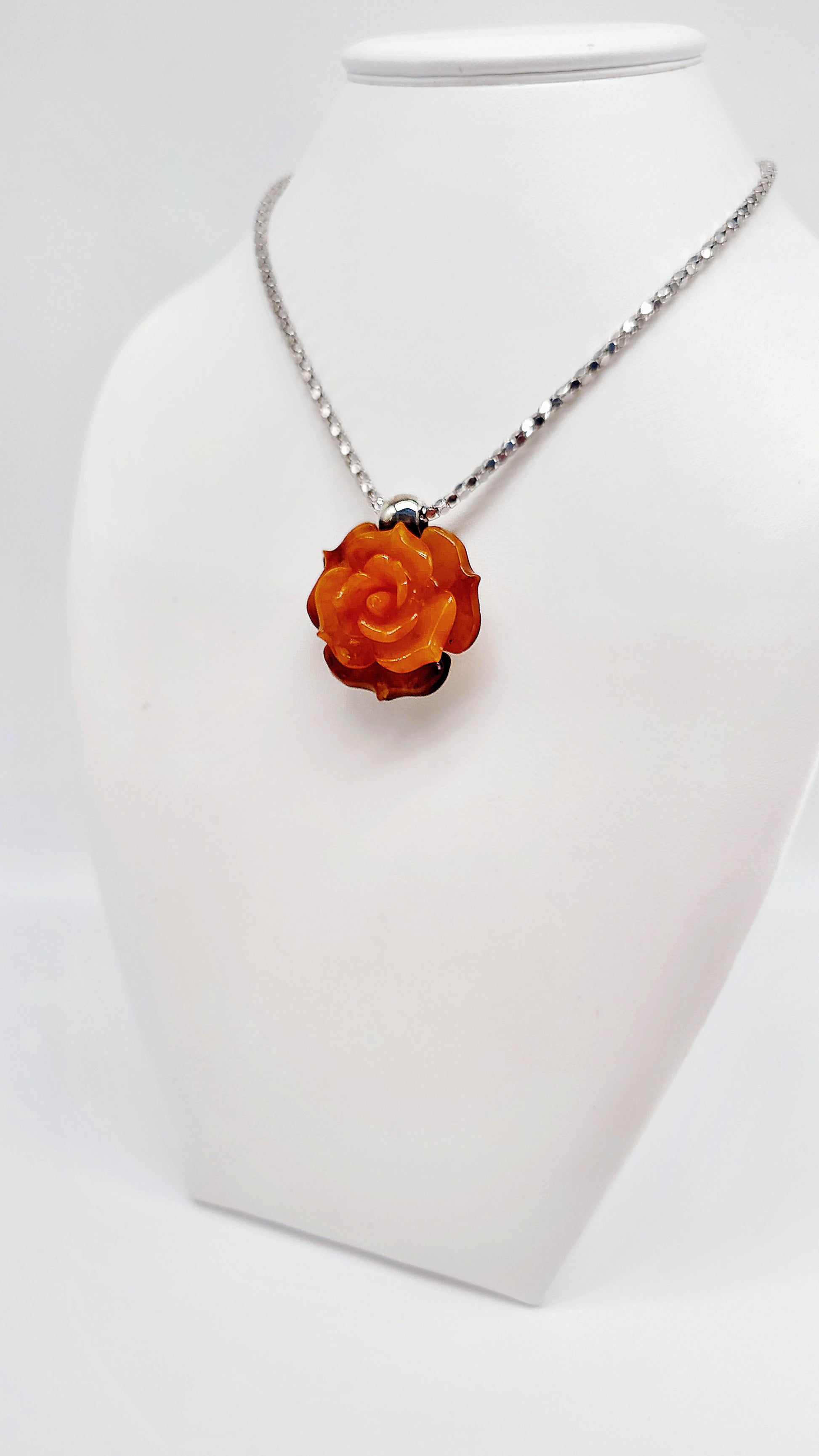 This extraordinary flower-shaped amber pendant combines the captivating beauty of amber with delicate craftsmanship. The warm, golden amber has been lovingly carved into a blossom that enhances any outfit with natural elegance. Each pendant is unique and captivates with its unique grain and color. Ideal for special occasions or as an everyday highlight, this pendant brings the splendor of nature directly into your jewelry box.