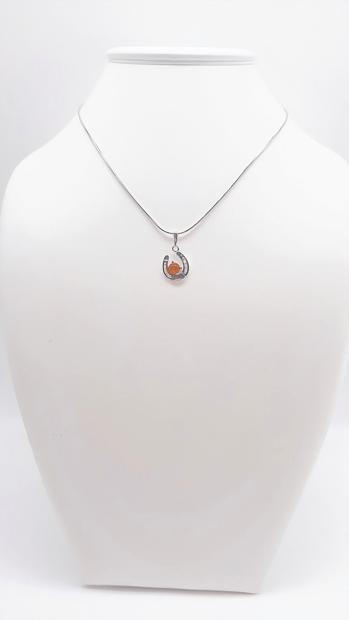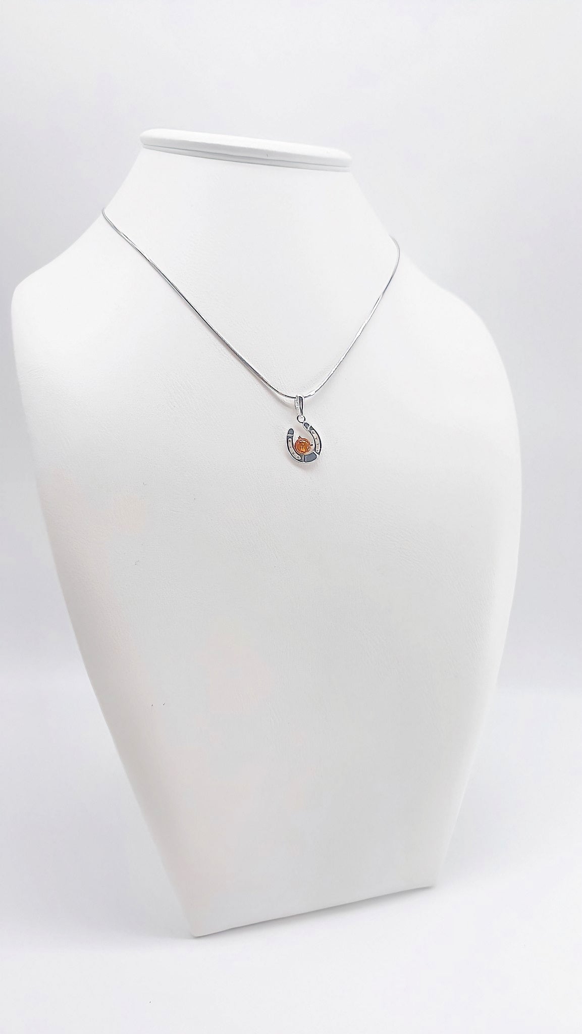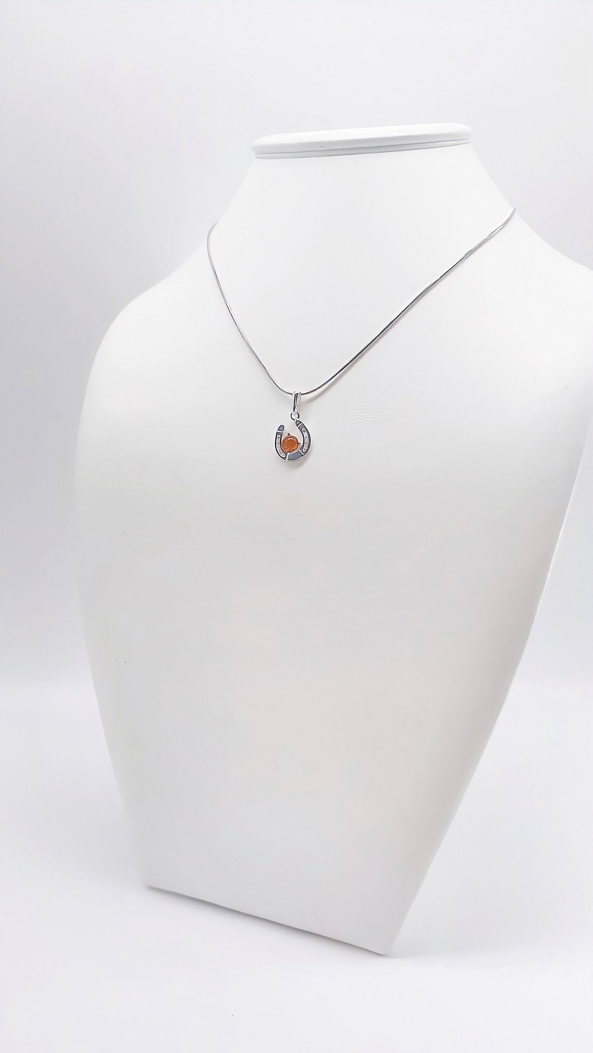 Lucky charm: horseshoe pendant with amber