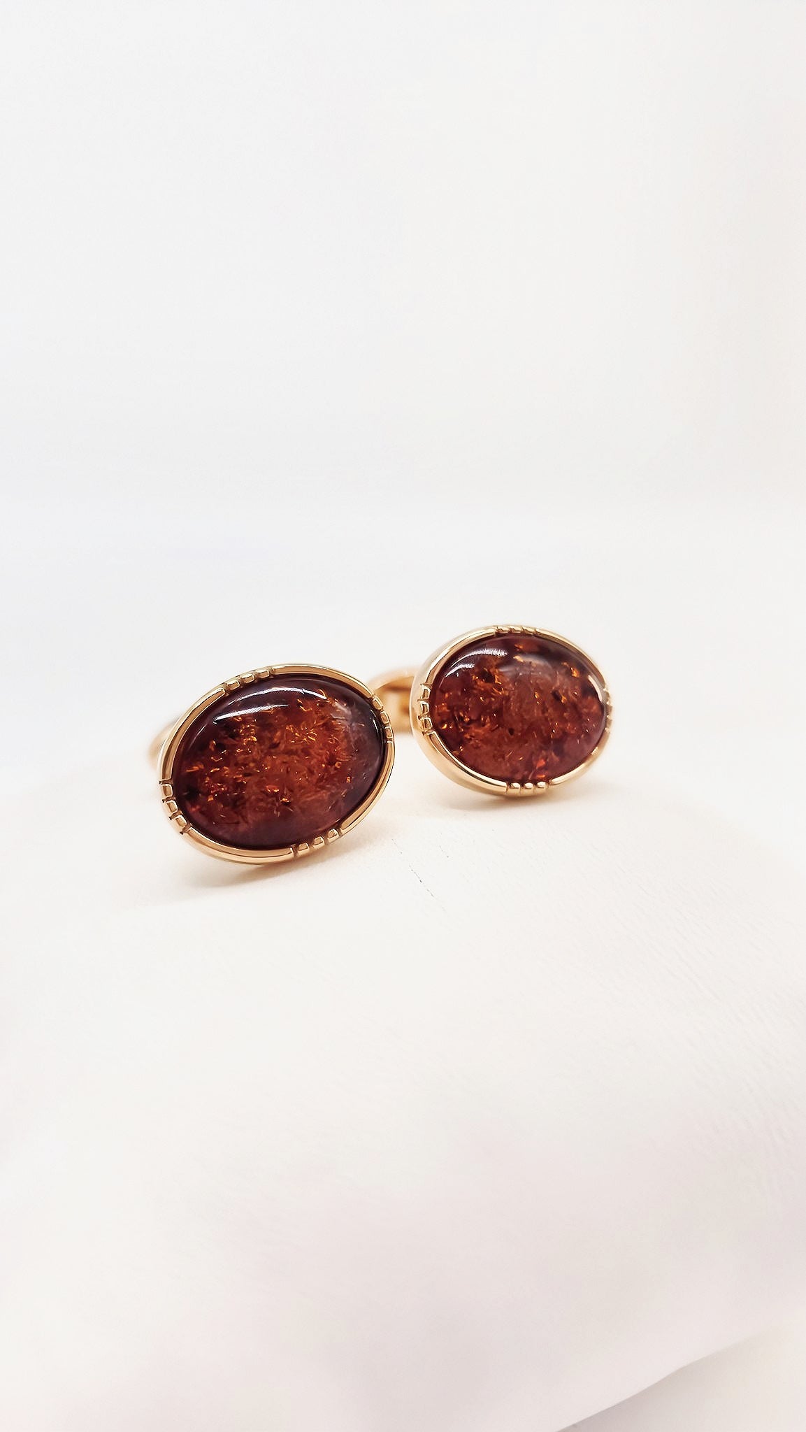 These high-quality gold-plated cufflinks with genuine amber are the perfect accessory for style-conscious men. The warm natural amber shimmers in golden and honey-colored nuances and harmonizes beautifully with the fine gold plating of the 925 sterling silver. The classic oval design makes these cufflinks ideal for formal occasions, business outfits, or elegant evening wear. Thanks to their handcrafted craftsmanship, they combine the highest quality with timeless elegance. A refined gift for stylish men or a luxurious statement for your own look.