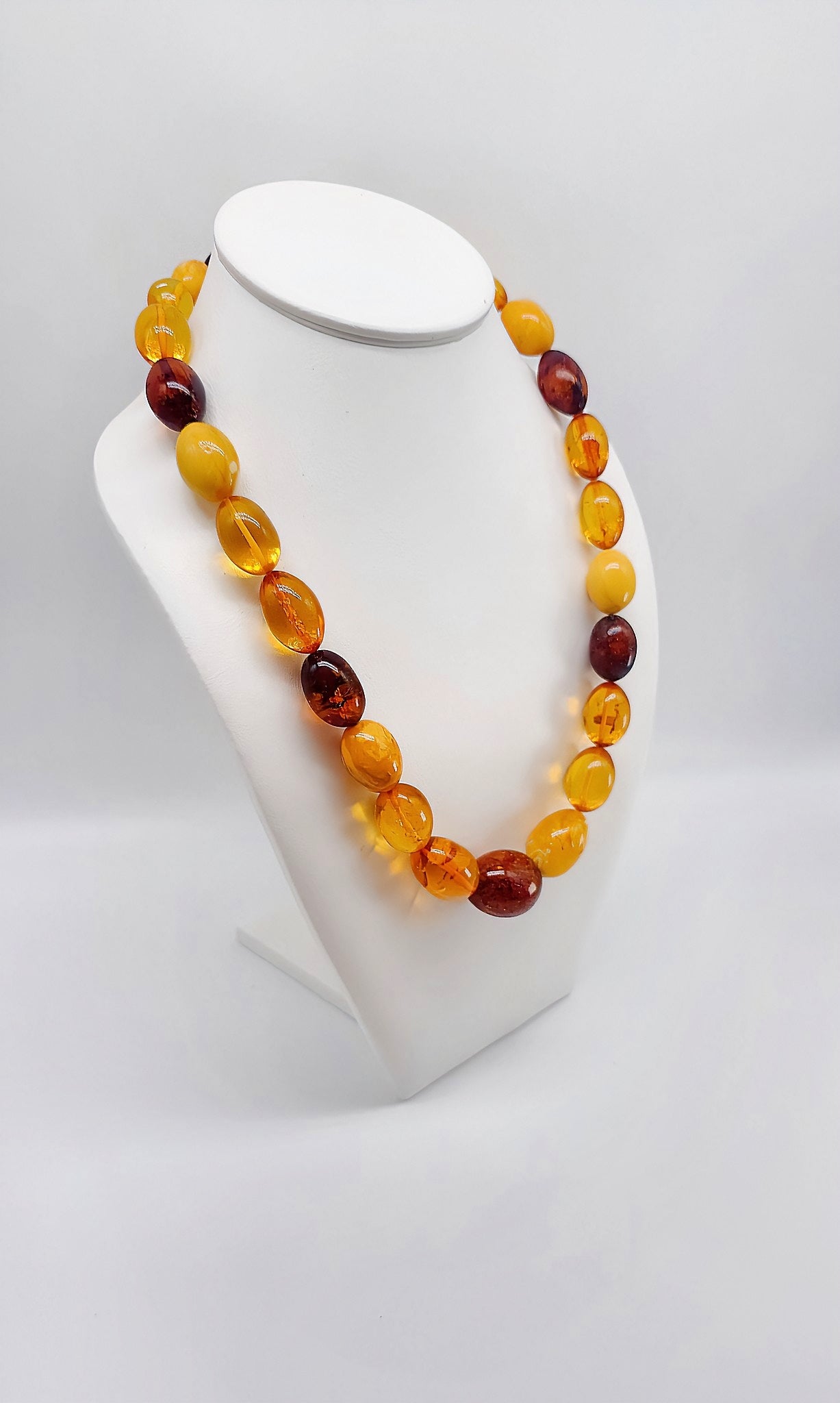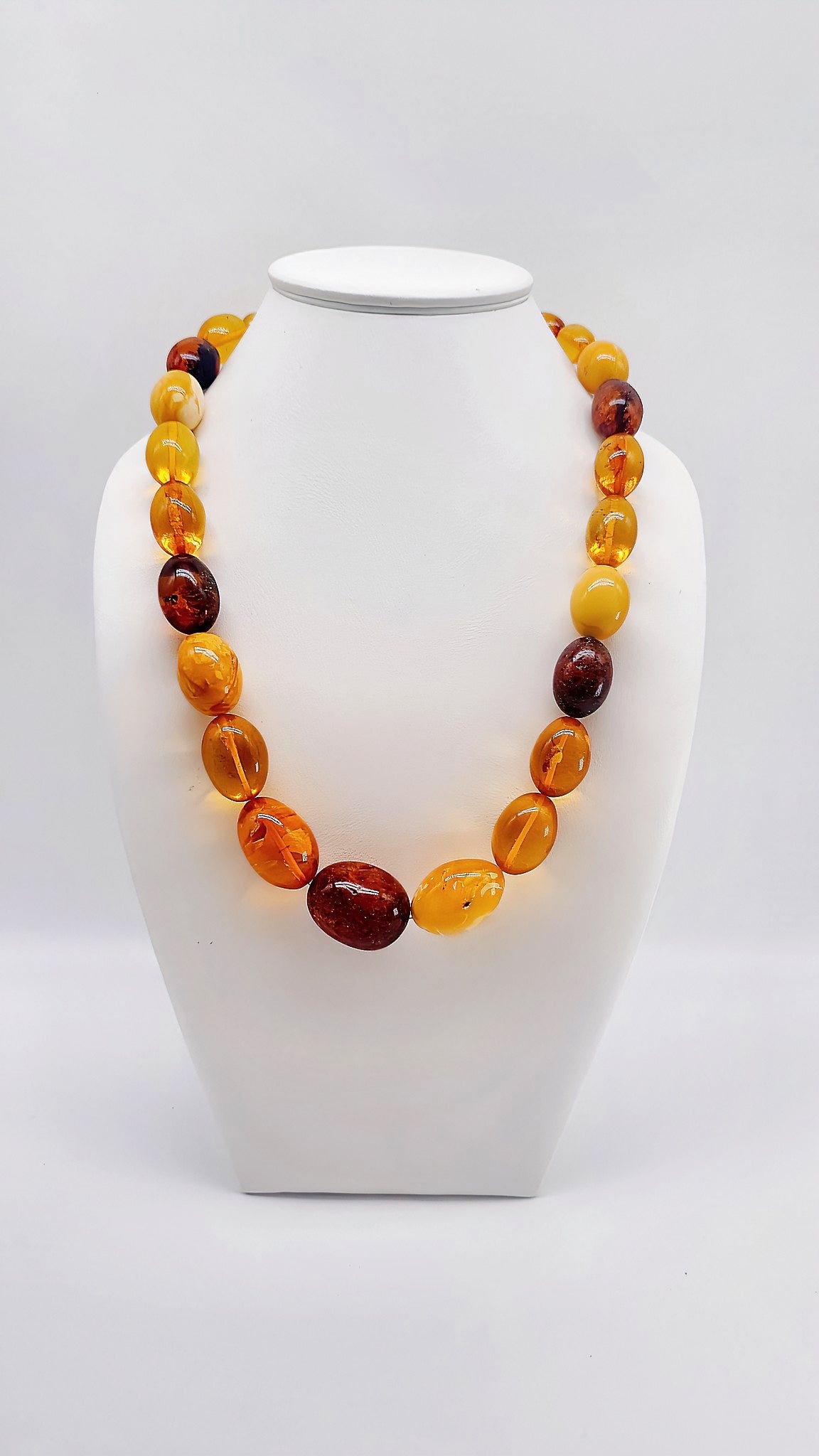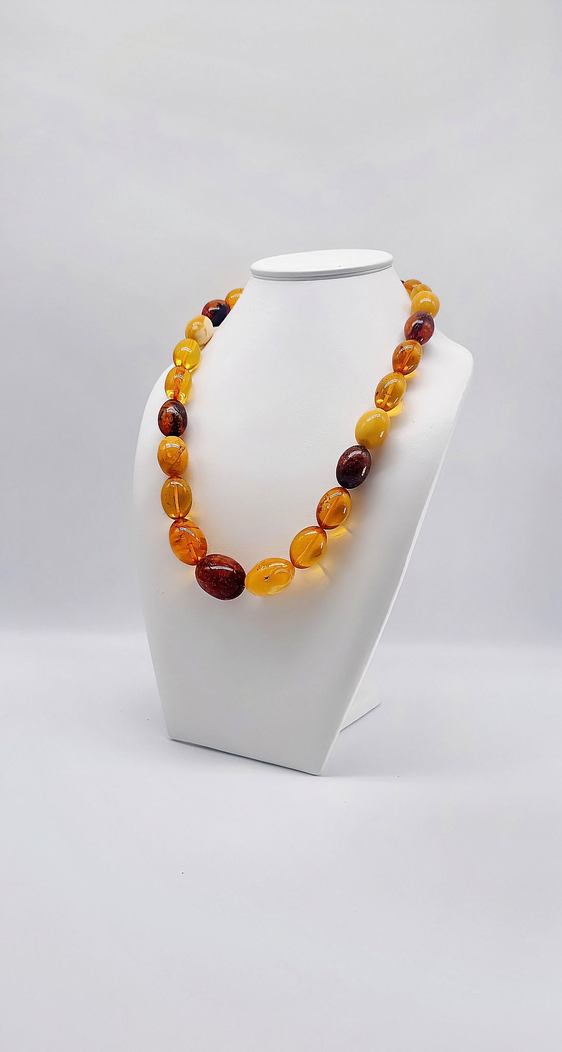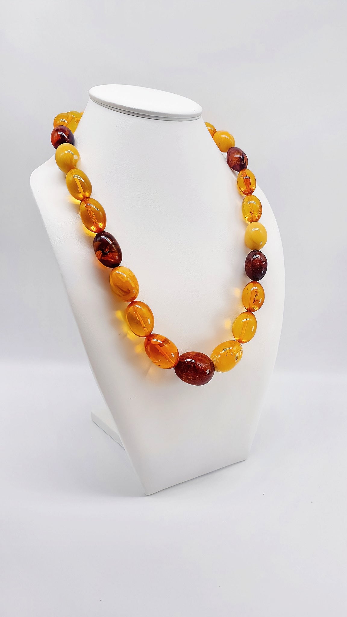Experience the timeless beauty of this unique amber necklace. Handcrafted from carefully selected amber beads, this piece of jewelry combines warm, golden tones that add a special touch to any outfit. The natural texture of the amber and its incomparable color make this necklace truly unique. Ideal for special occasions or as a stylish everyday accessory – let yourself be enchanted by the radiant elegance of this amber necklace.