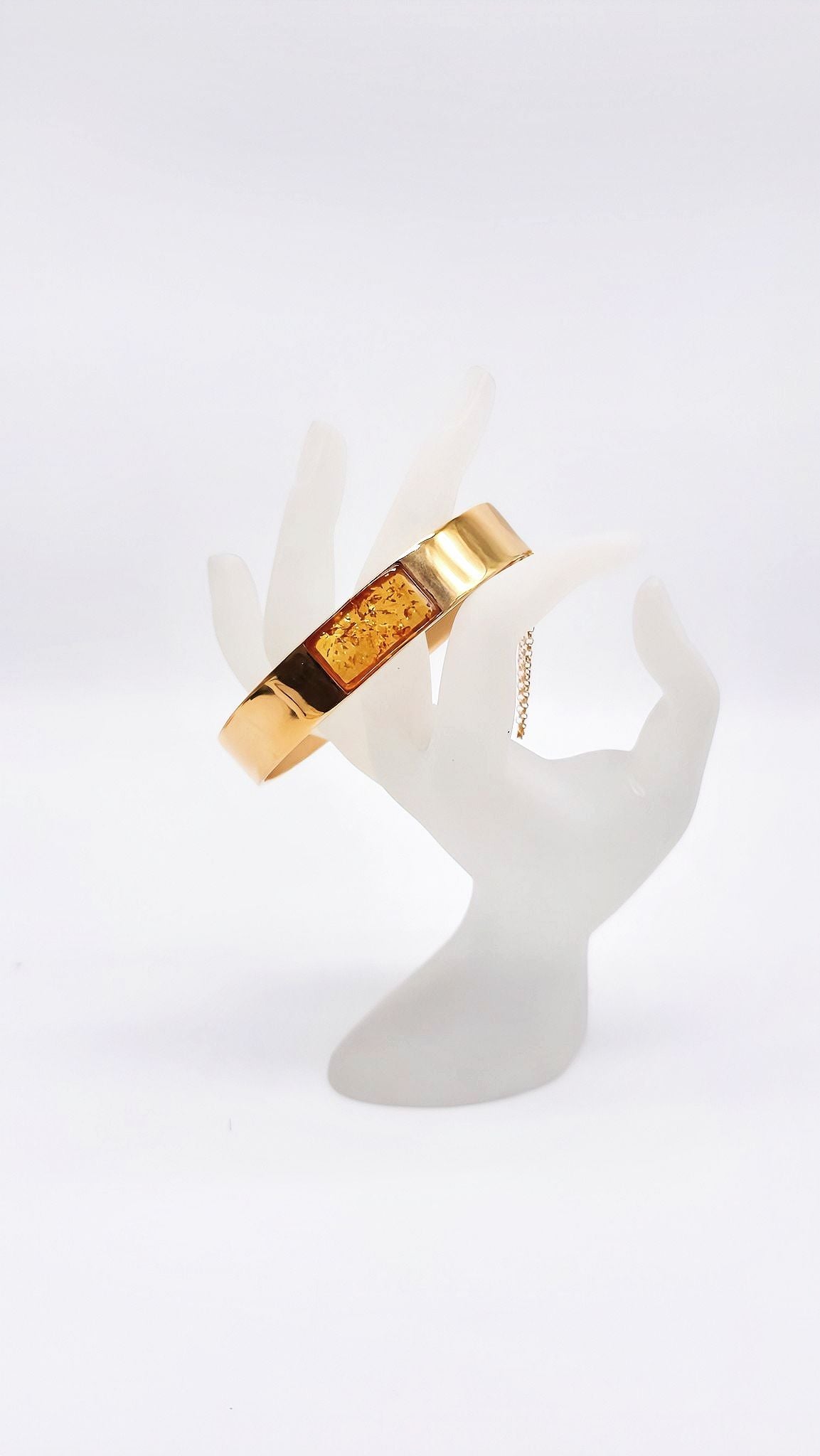 This gold-plated bangle with genuine amber combines sophisticated design with timeless elegance.