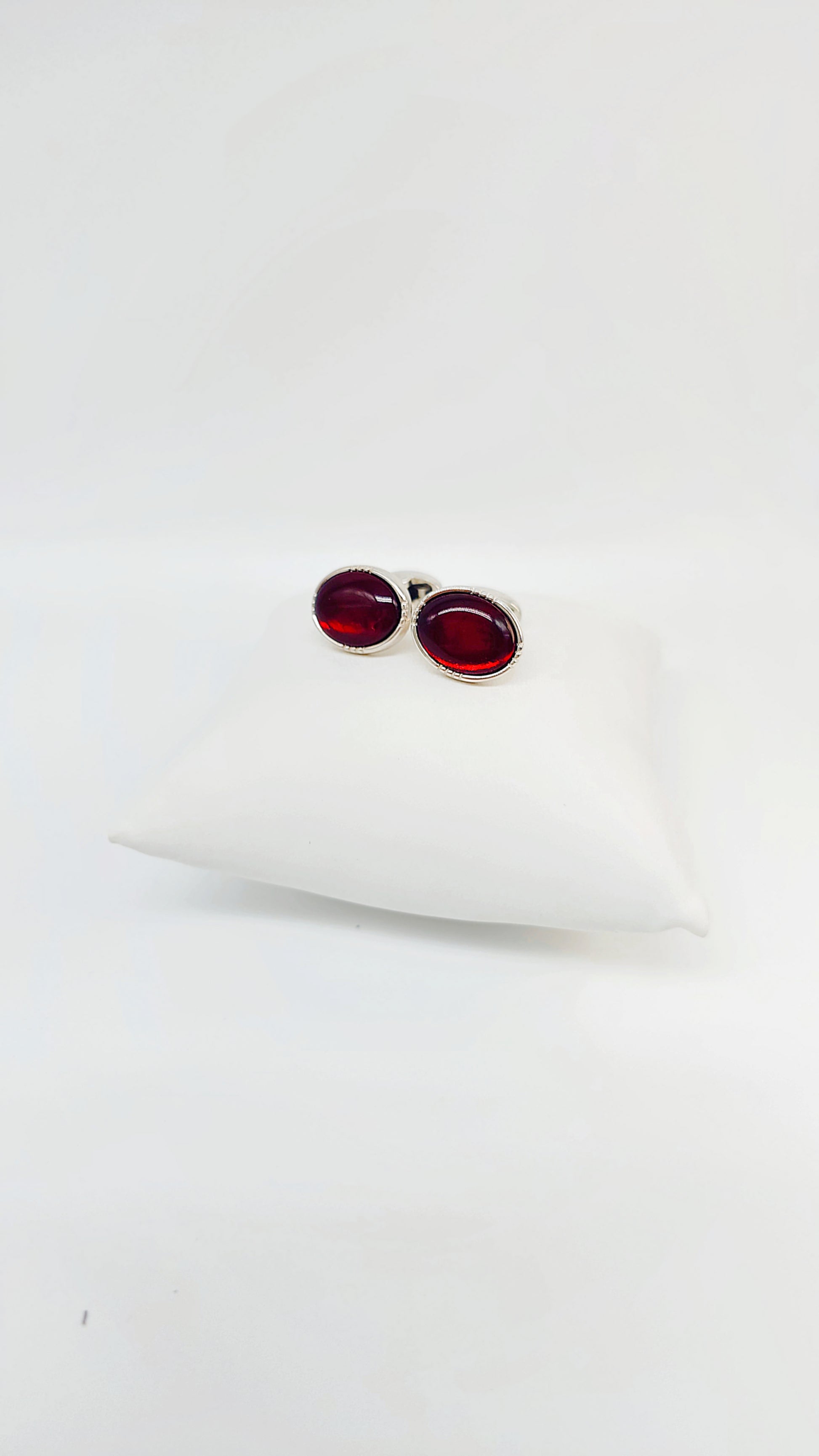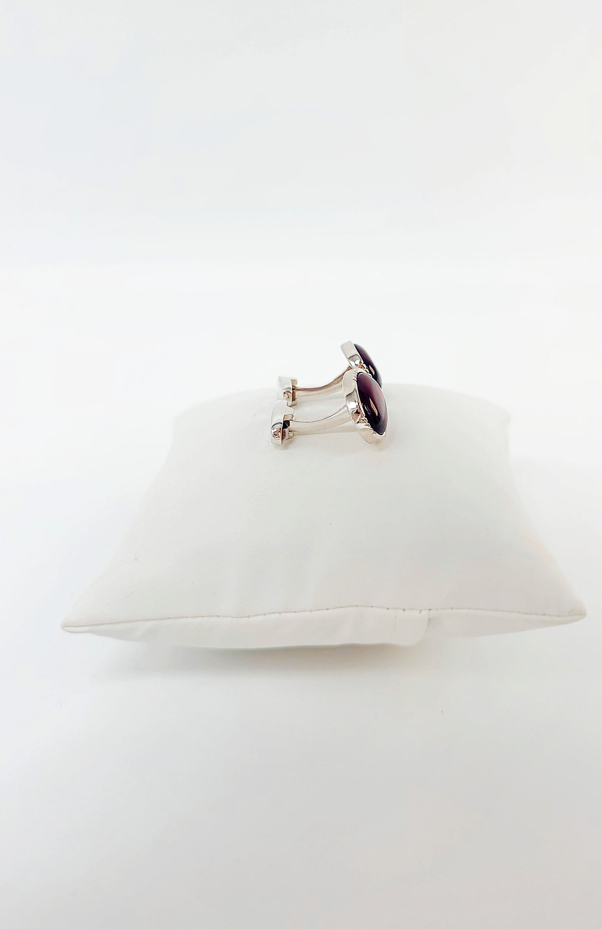 Handmade cufflinks made of 925 sterling silver with dark red amber