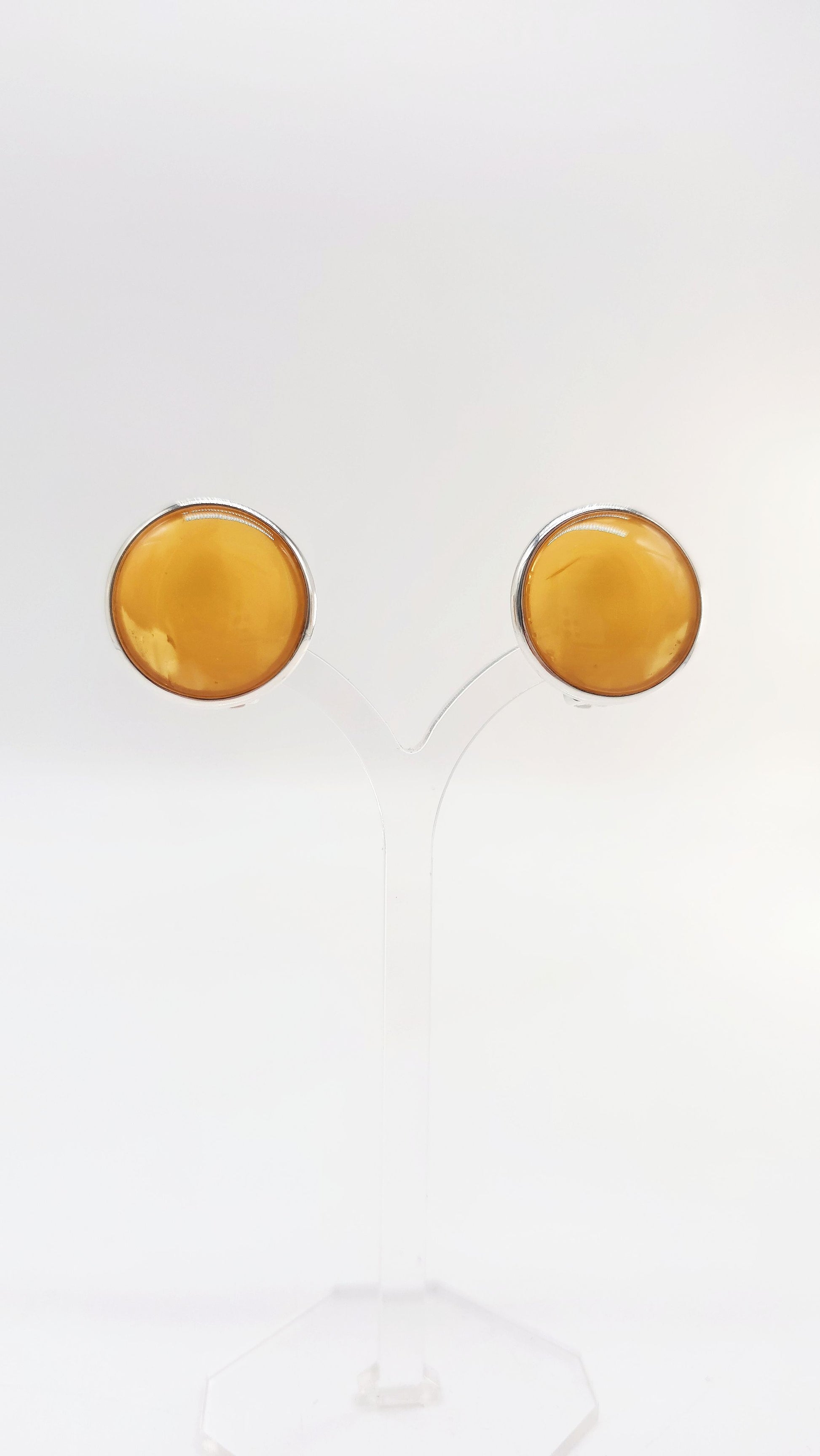 These silver ear clips with round, yellow natural amber are the perfect blend of timeless elegance and natural beauty. The warm yellow tone of the amber brings a soft, warm glow to the face, while the high-quality 925 silver setting ensures a sophisticated look.