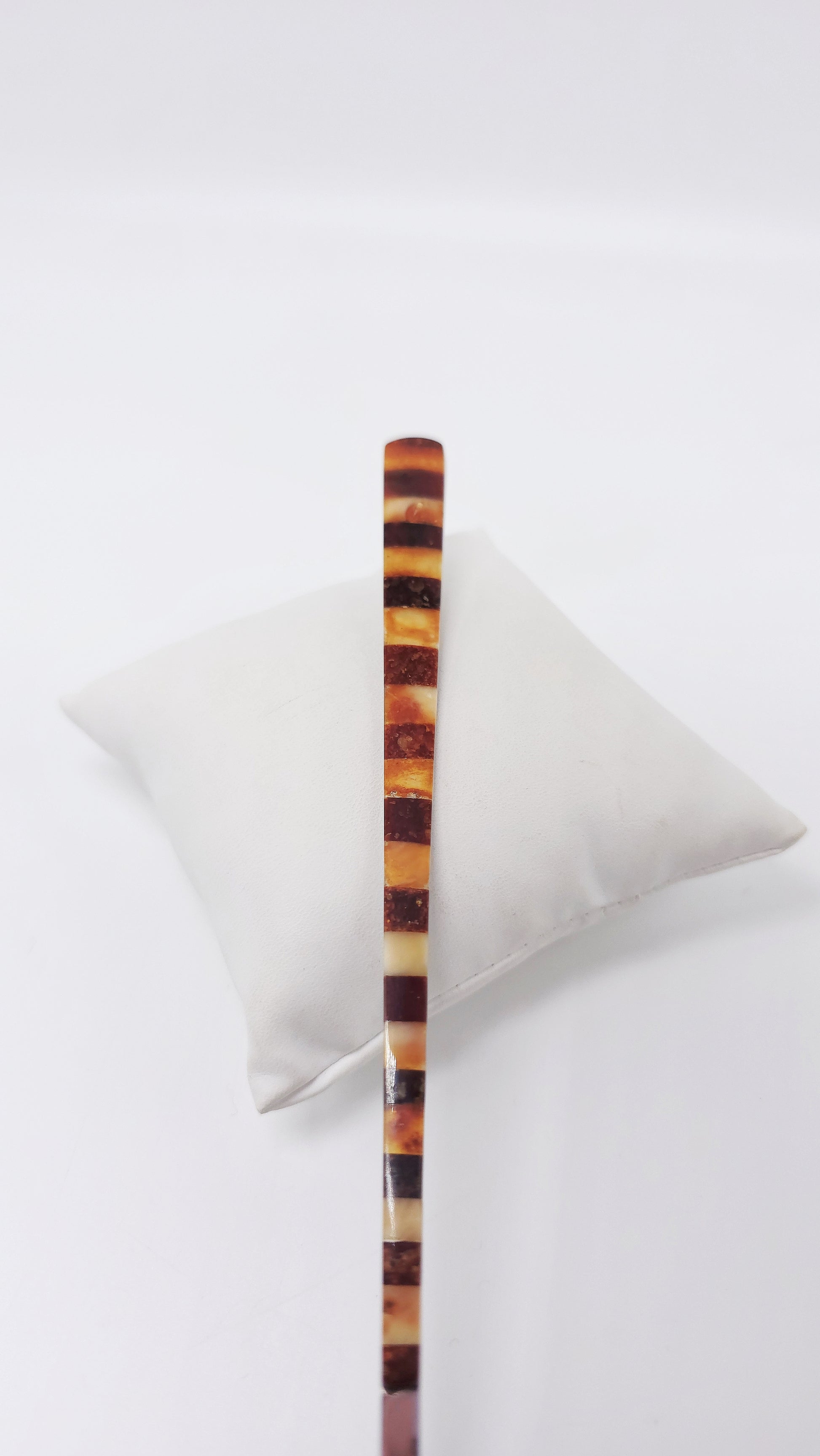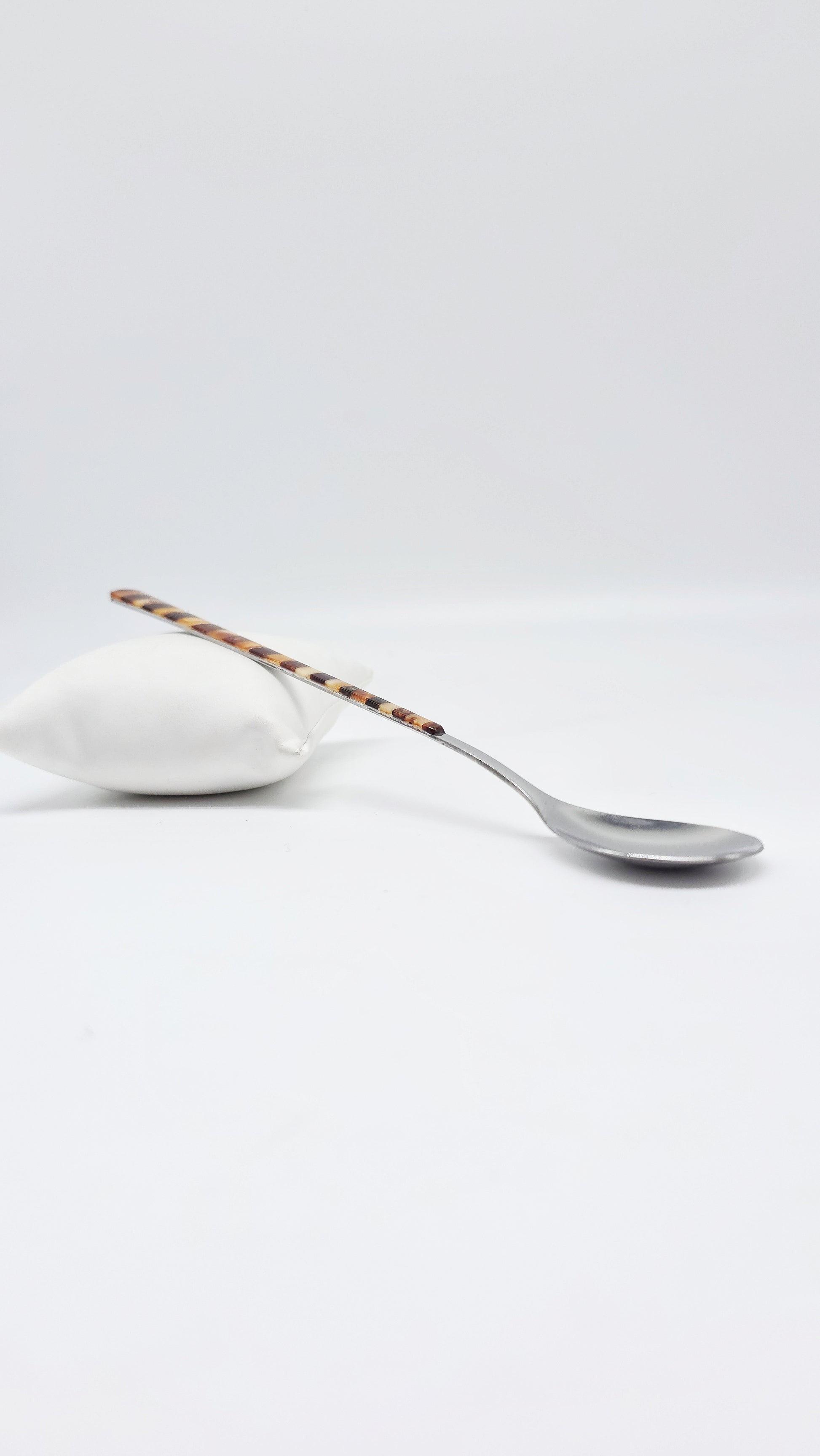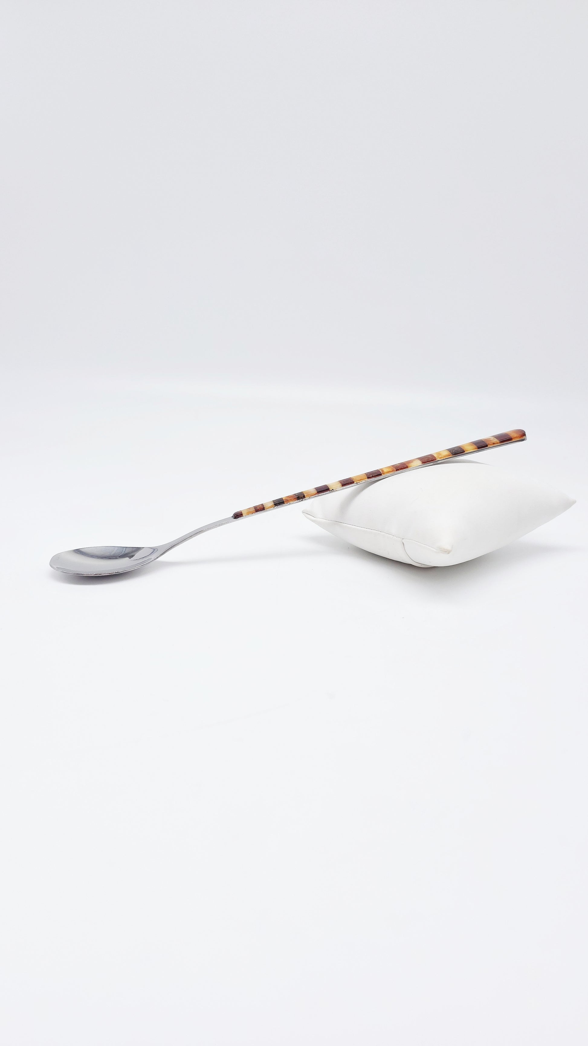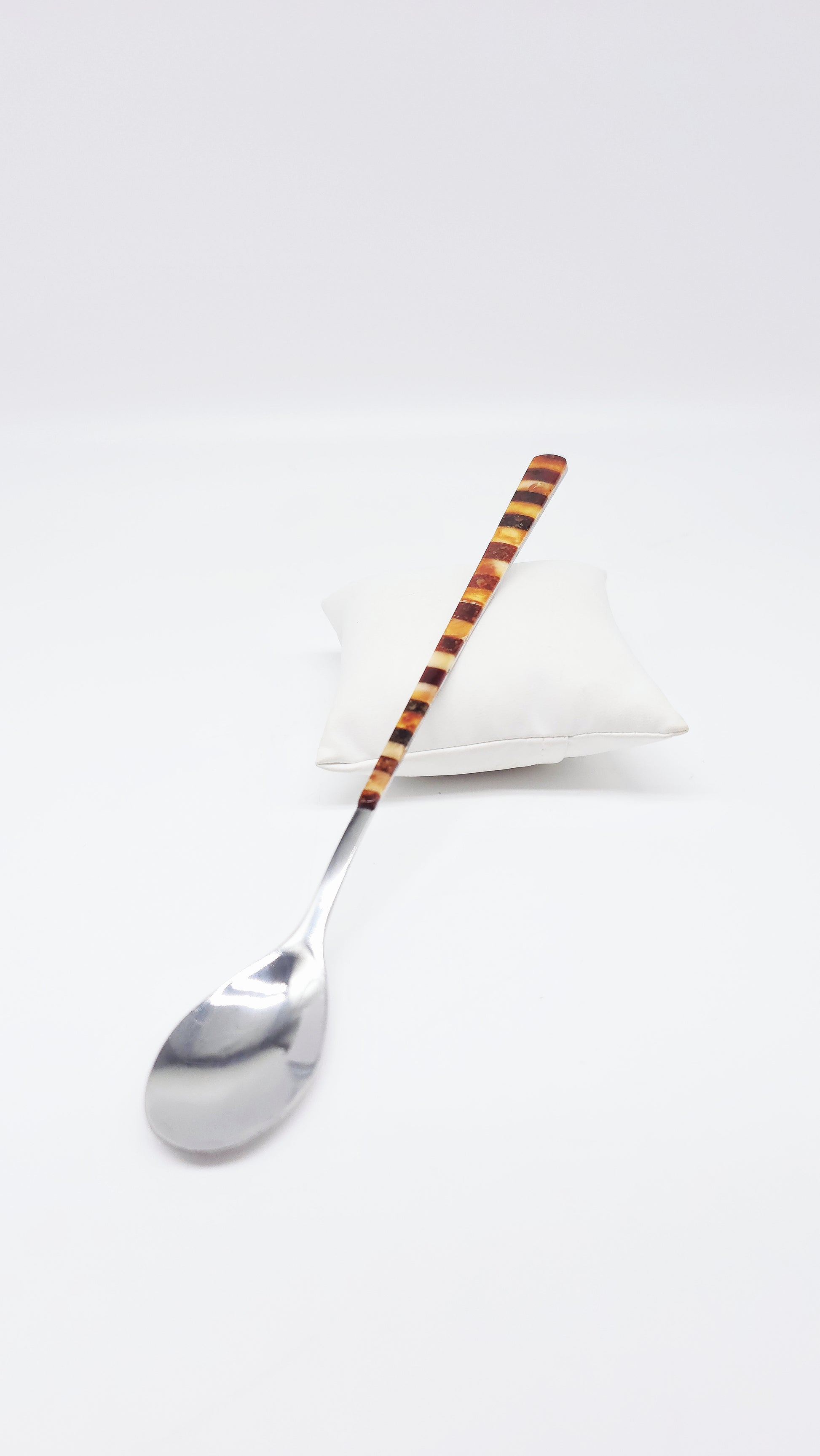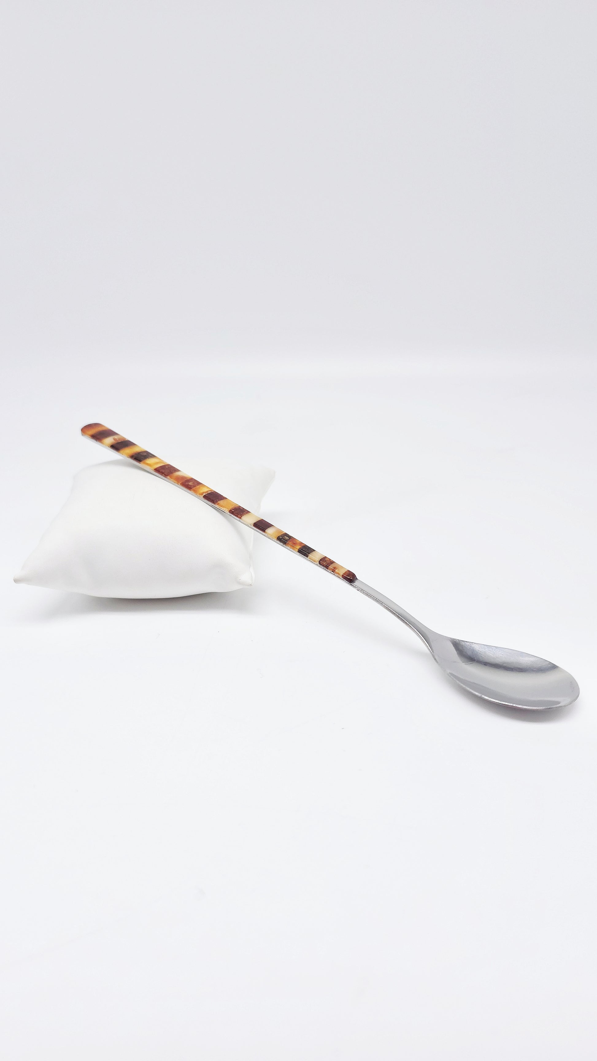 This luxurious ice cream spoon combines elegant design with natural beauty. The handle is made of genuine amber, captivating with its warm color nuances and unique grain. The combination with high-quality stainless steel ensures a stylish appearance and long-lasting quality. Perfect for enjoying desserts, ice cream, or coffee in style.