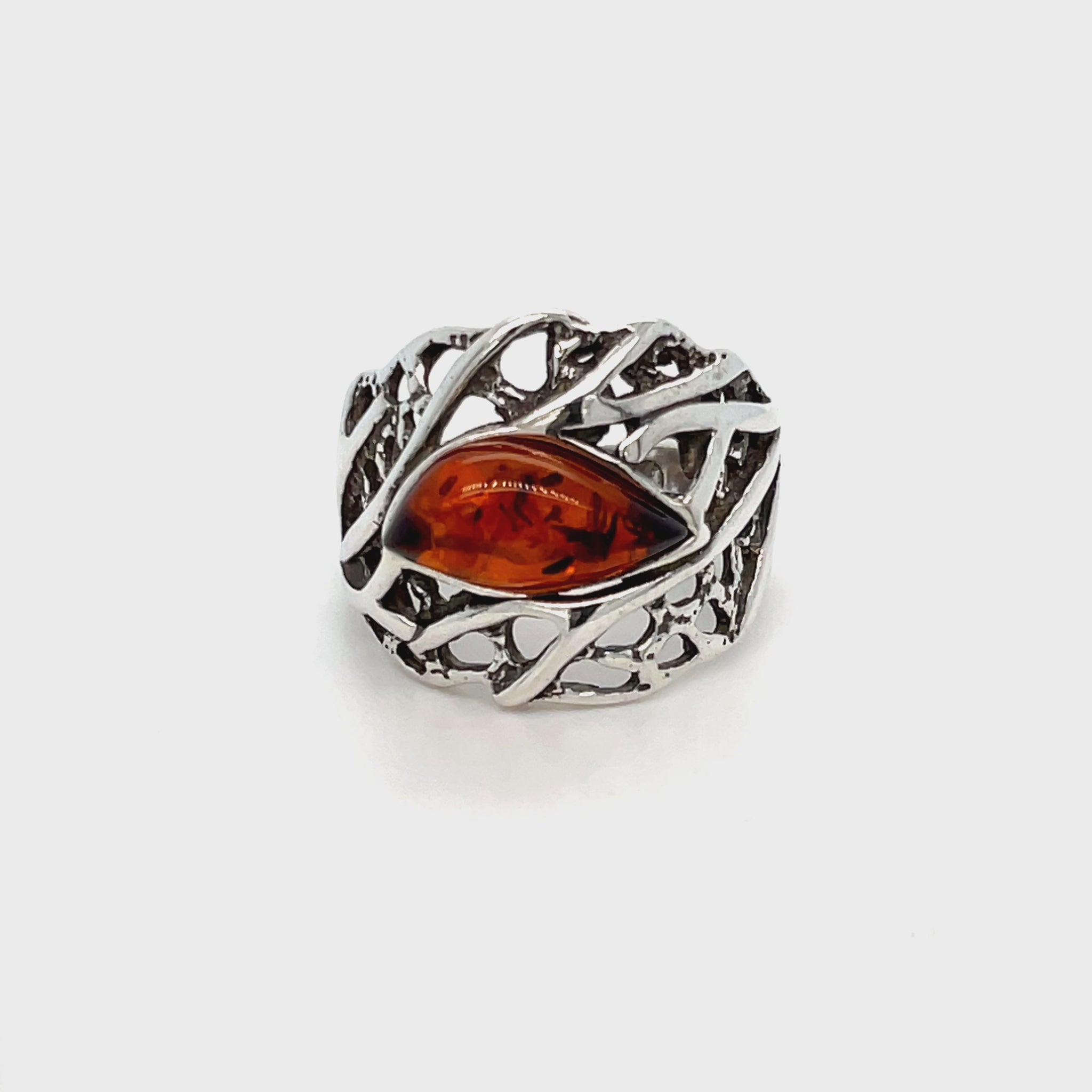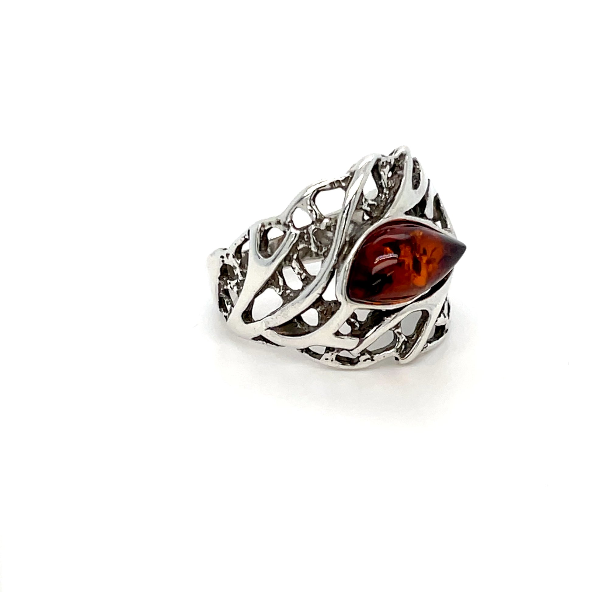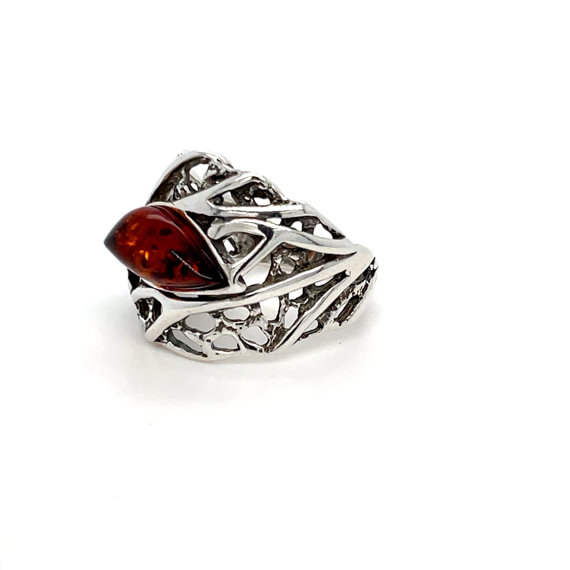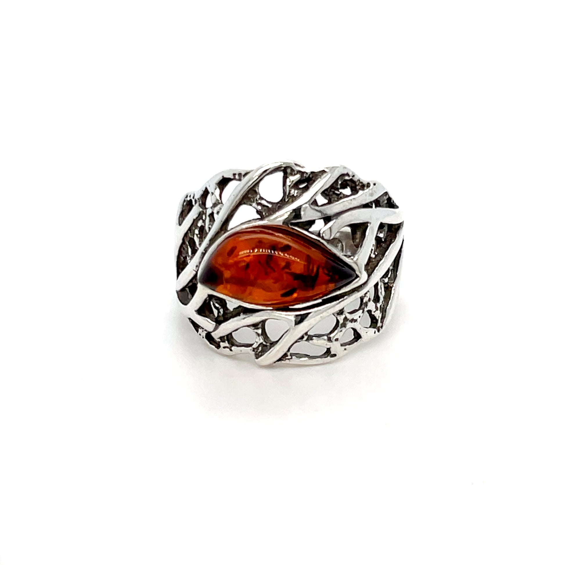 Dieser moderne Silberring ist ein Unikat, das sofort ins Auge fällt. Der warm leuchtende Bernstein in eleganter Navette-Form bildet einen starken Kontrast zum hochglänzenden 925er Sterlingsilber. Durch seine klare, moderne Linienführung wirkt der Ring zeitlos, stilvoll und lässt sich perfekt zu jedem Outfit kombinieren.