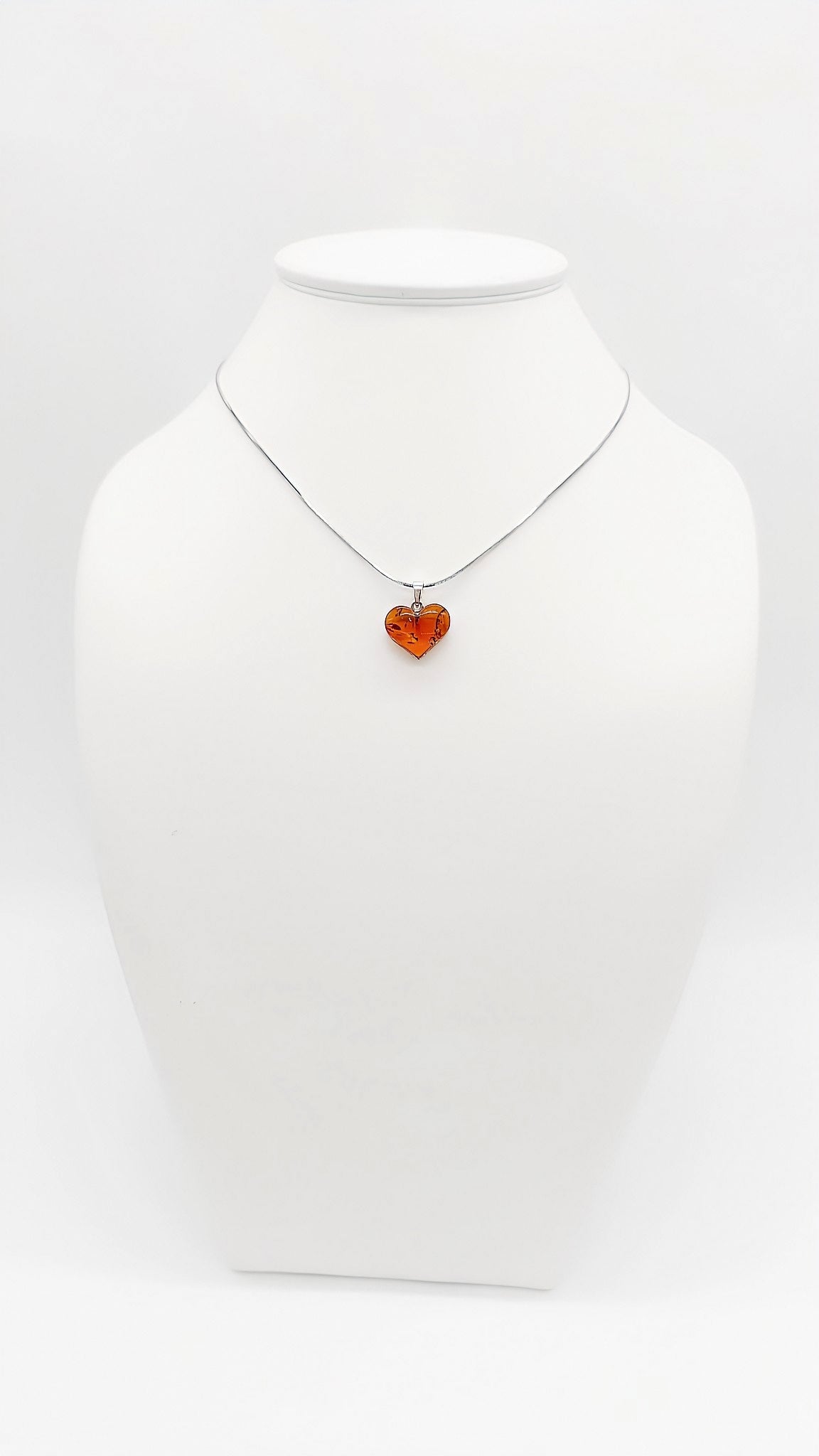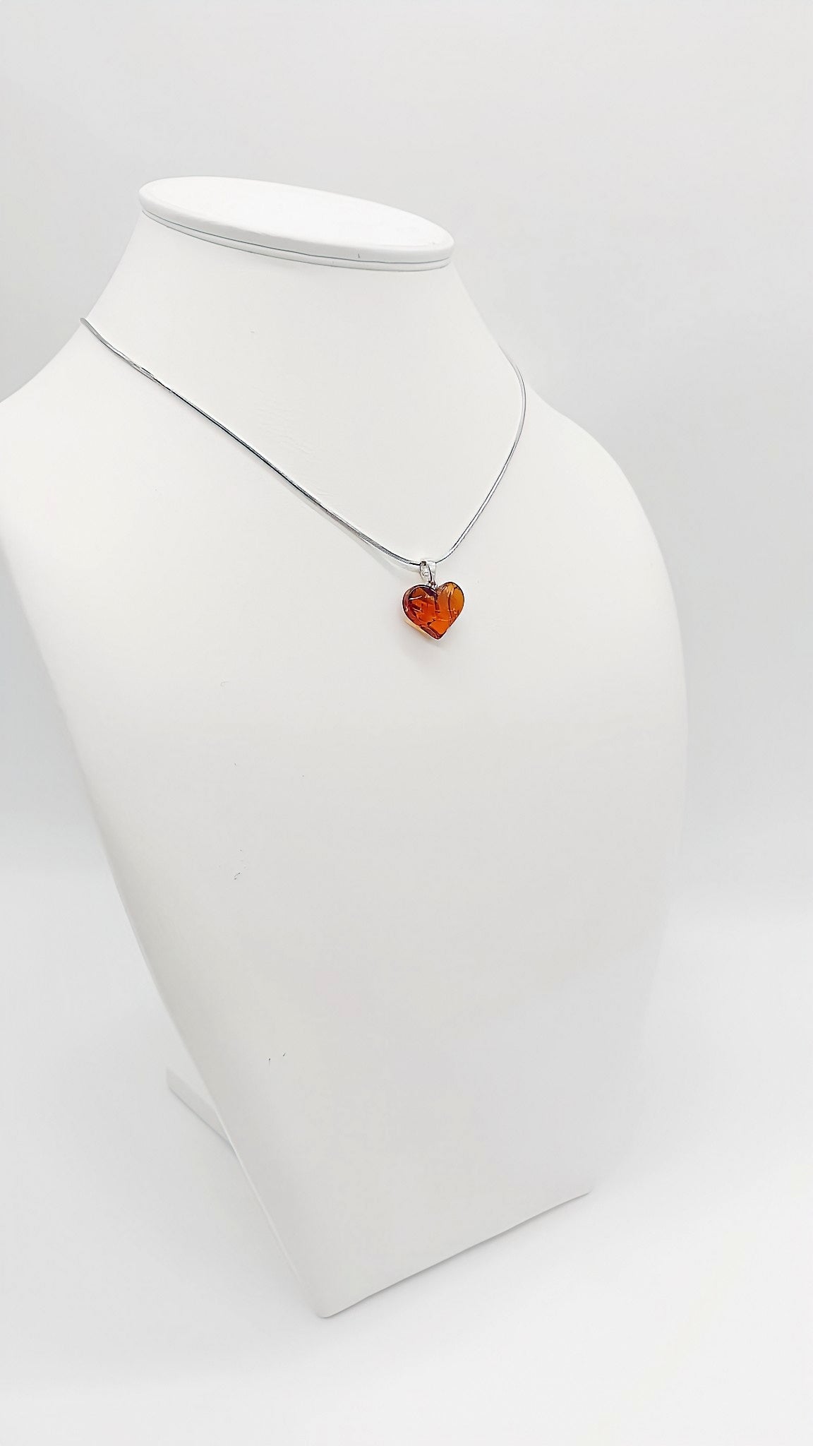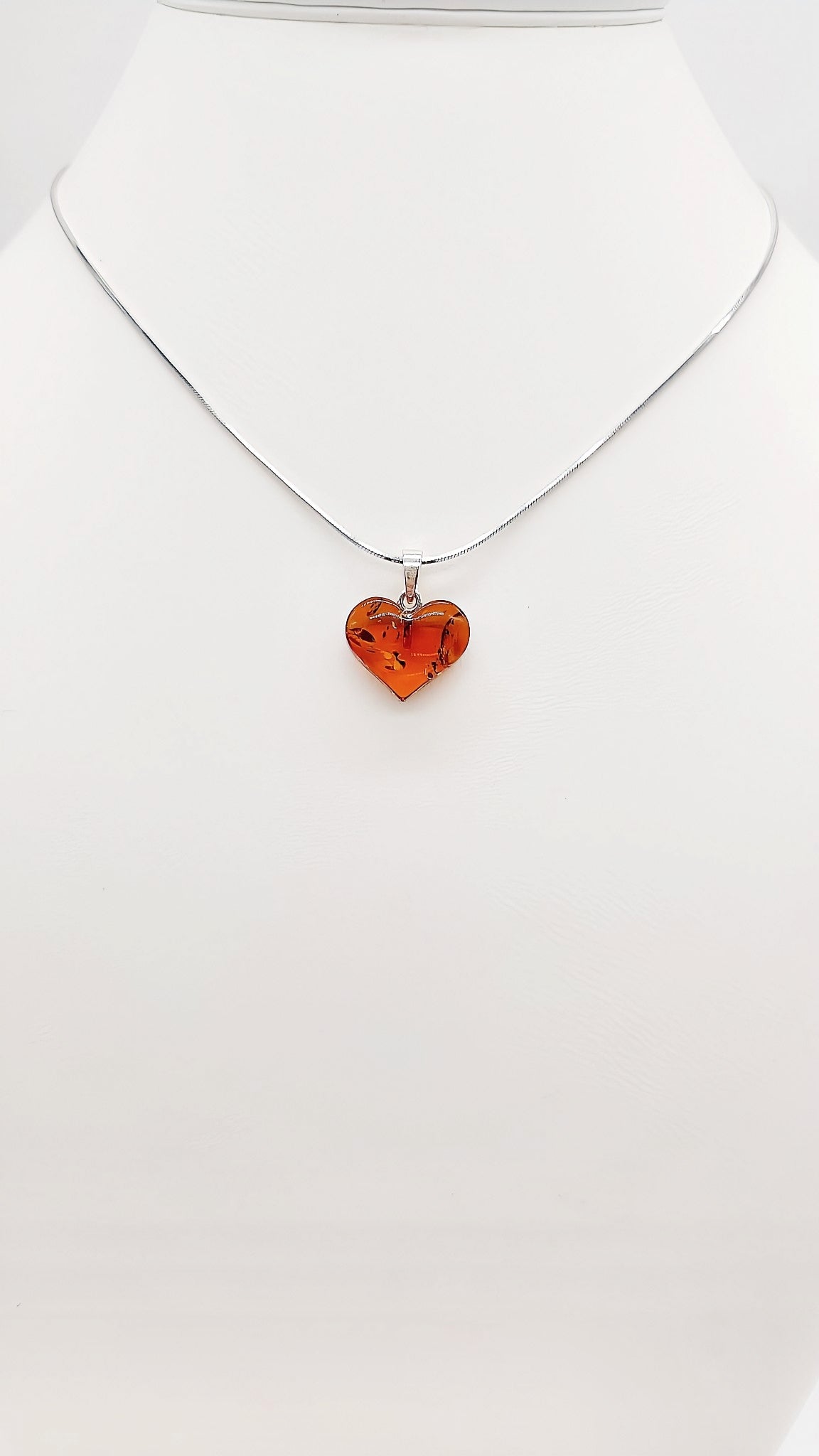 This beautiful heart pendant combines the natural warmth of amber with the cool elegance of 925 sterling silver. The deep, luminous brown of the amber is perfectly enhanced by the simple silver setting, giving this piece of jewelry a timeless beauty. Ideal as a gift or as an everyday accessory, adding a romantic and elegant touch to any outfit.