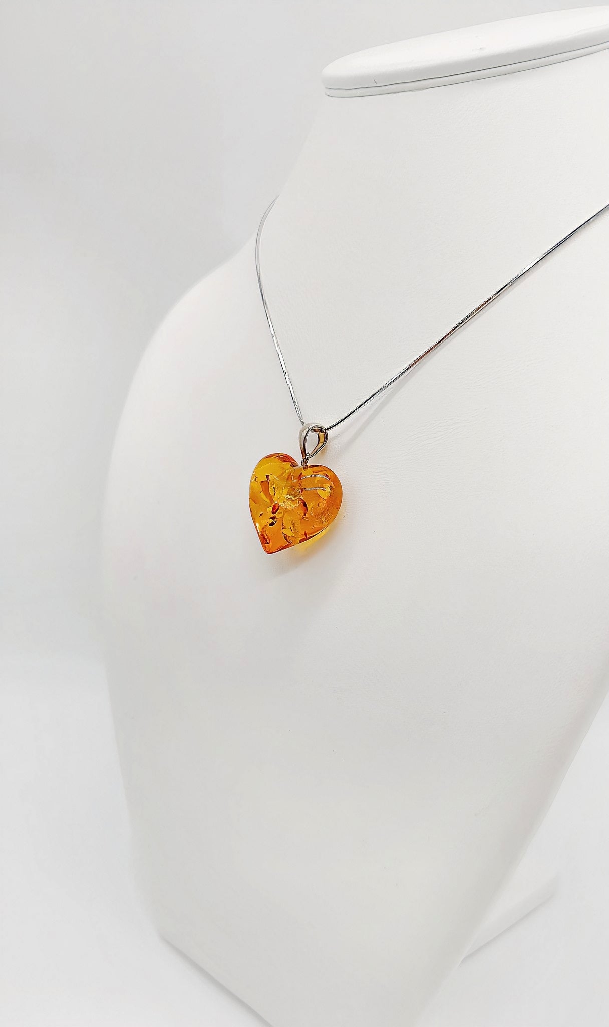 This beautiful heart pendant combines the natural warmth of amber with an elegant 925 silver bail. The deep, luminous brown of the amber is perfectly highlighted by the simple silver bail, giving this piece of jewelry a timeless beauty. Ideal as a gift or as an everyday accessory, adding a romantic and elegant touch to any outfit.