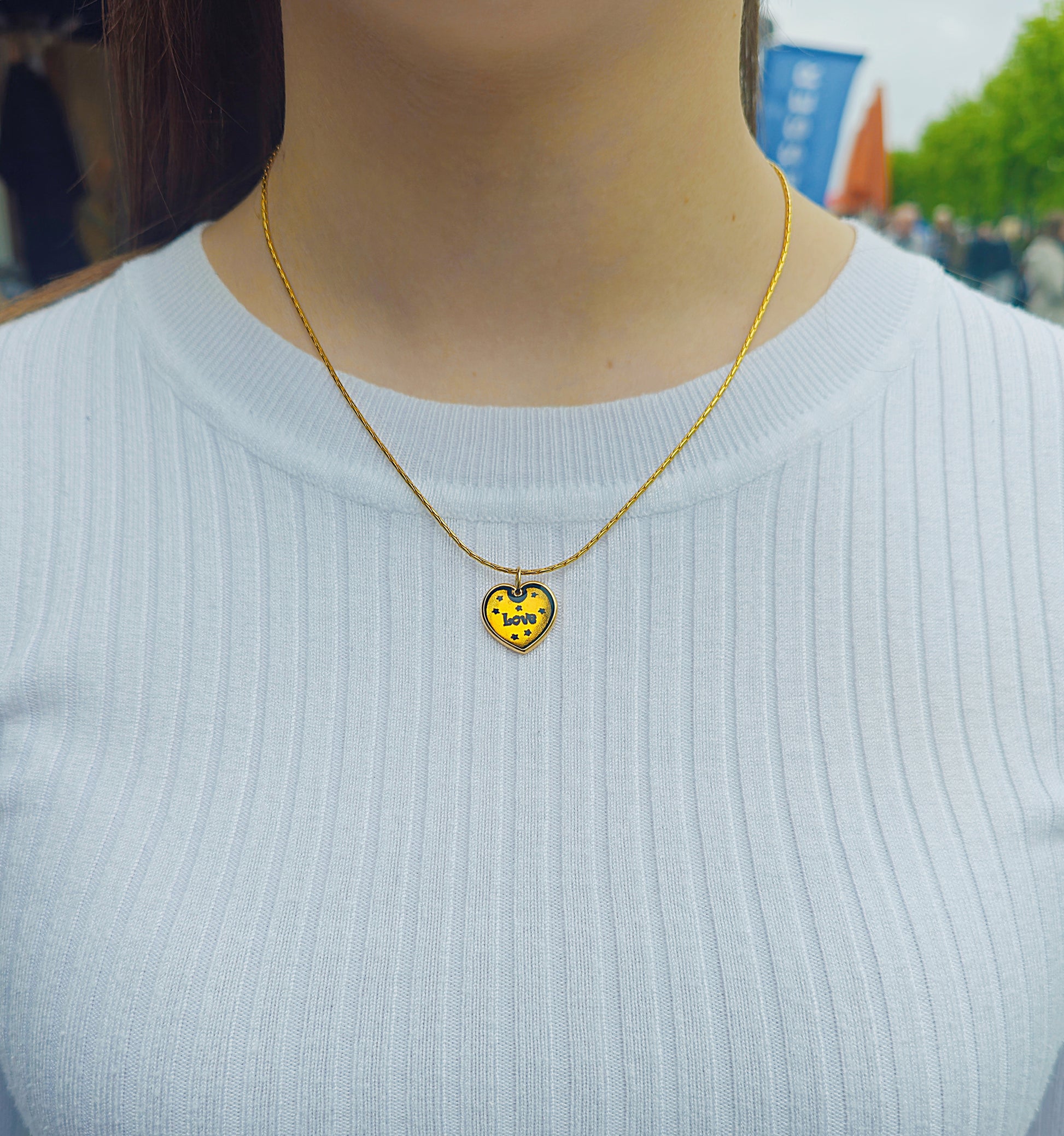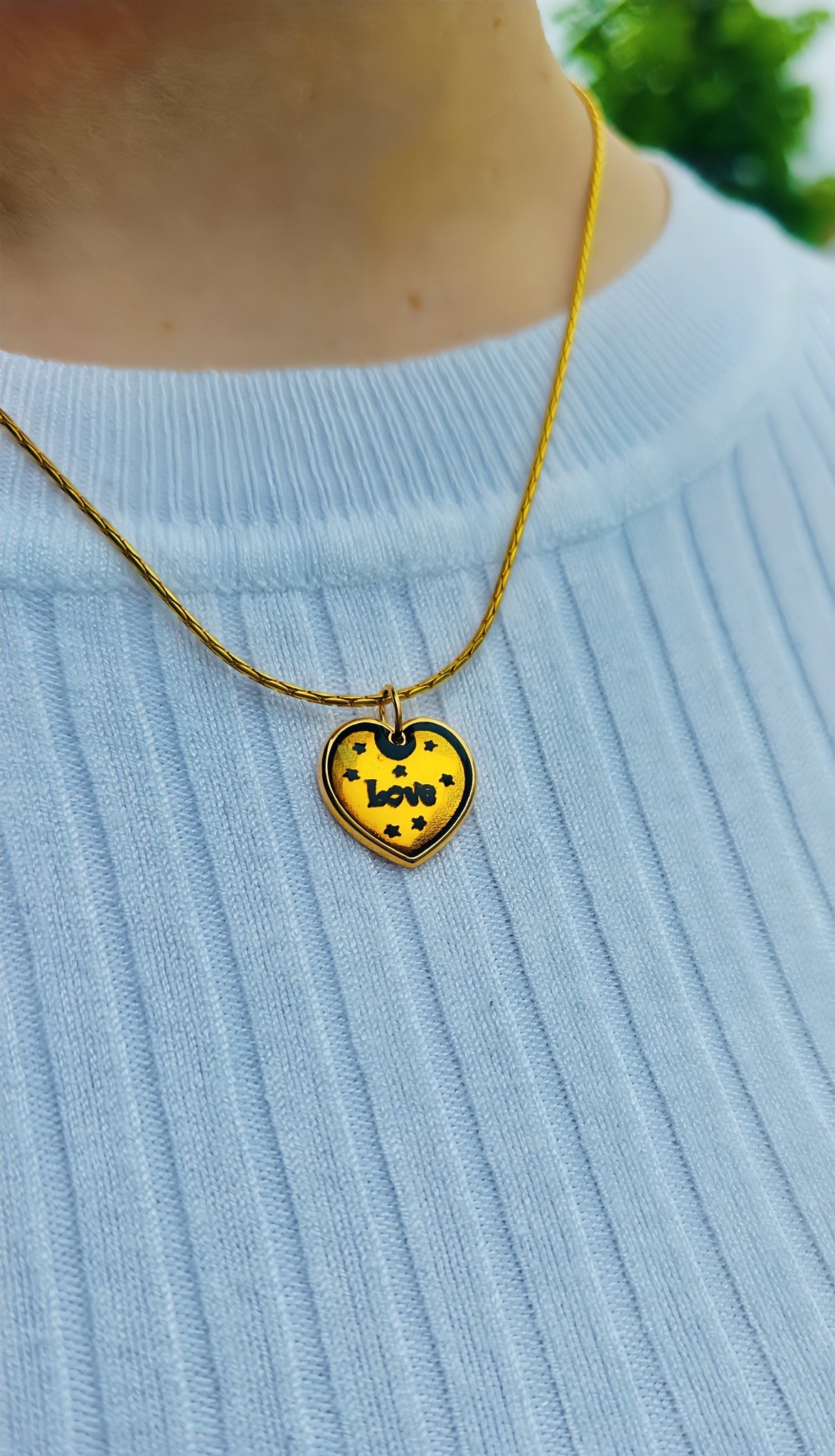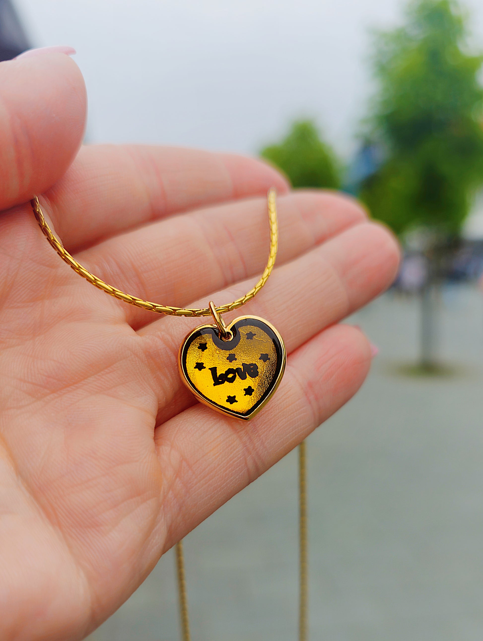 This charming heart pendant made of gold-plated 925 Sterling silver and amber is an expression of pure love. The word "Love" is engraved in the brilliant yellow amber, surrounded by delicate stars. The warm gold of the pendant harmonizes perfectly with the sunny glow of the amber, making this piece of jewelry an enchanting gift for a special someone or as a reminder of your love for yourself.