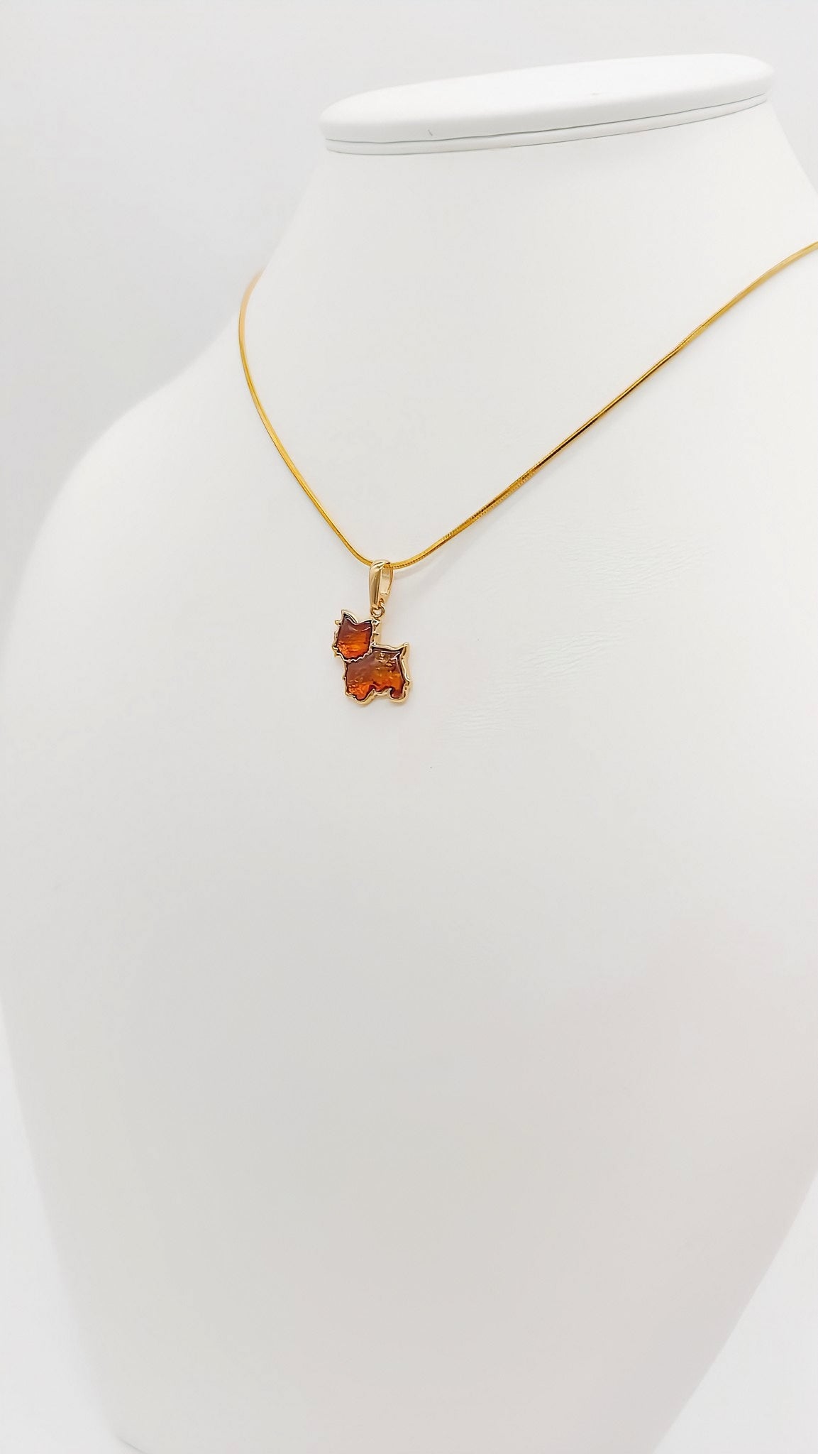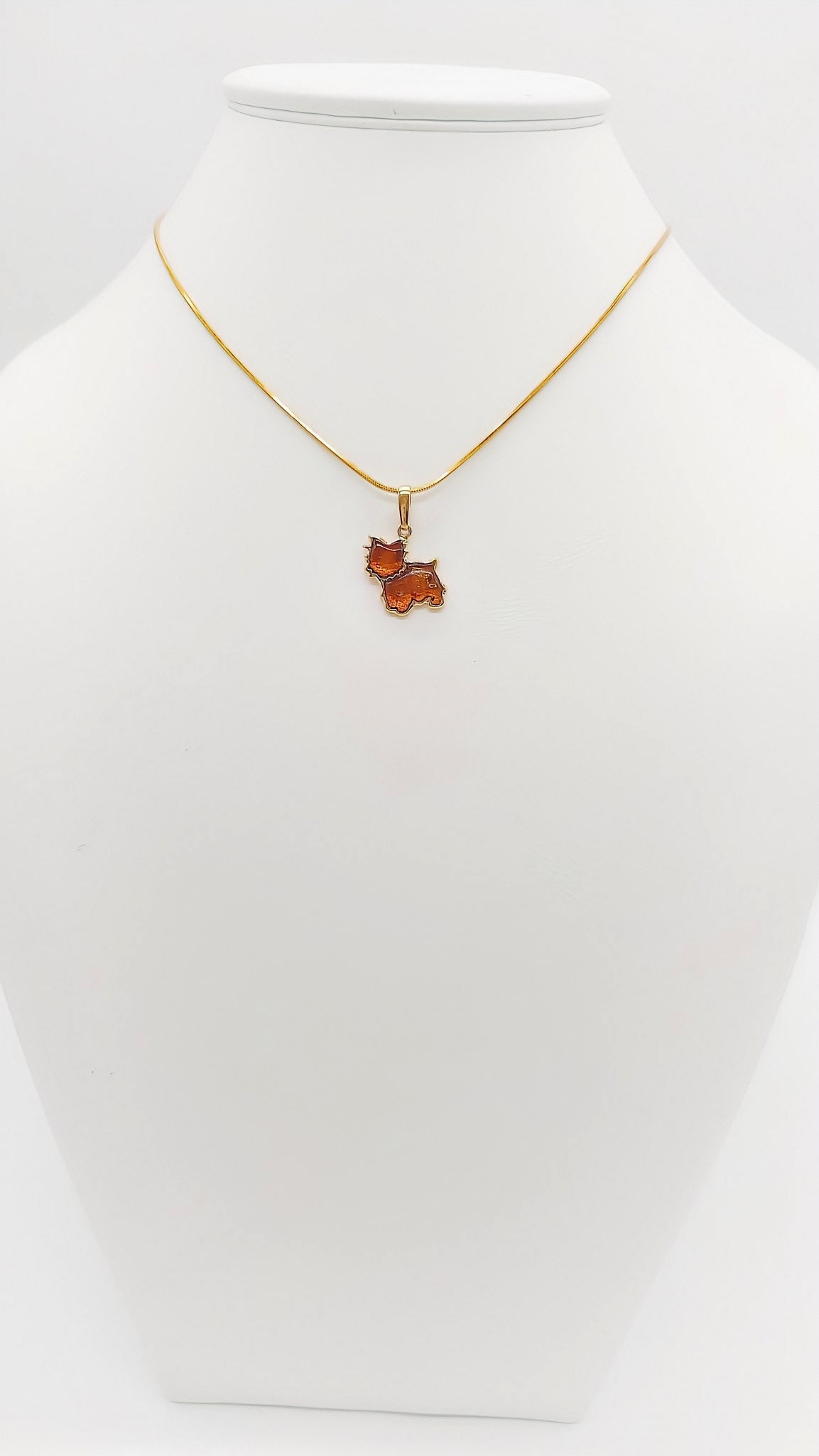 This cute dog pendant made of gold-plated 925 sterling silver is perfect for animal lovers. The warm, luminous amber gives the pendant a special charm and perfectly highlights the loving design of the little dog. A charming accessory that can be worn both everyday and on special occasions to express your love for your four-legged friend.