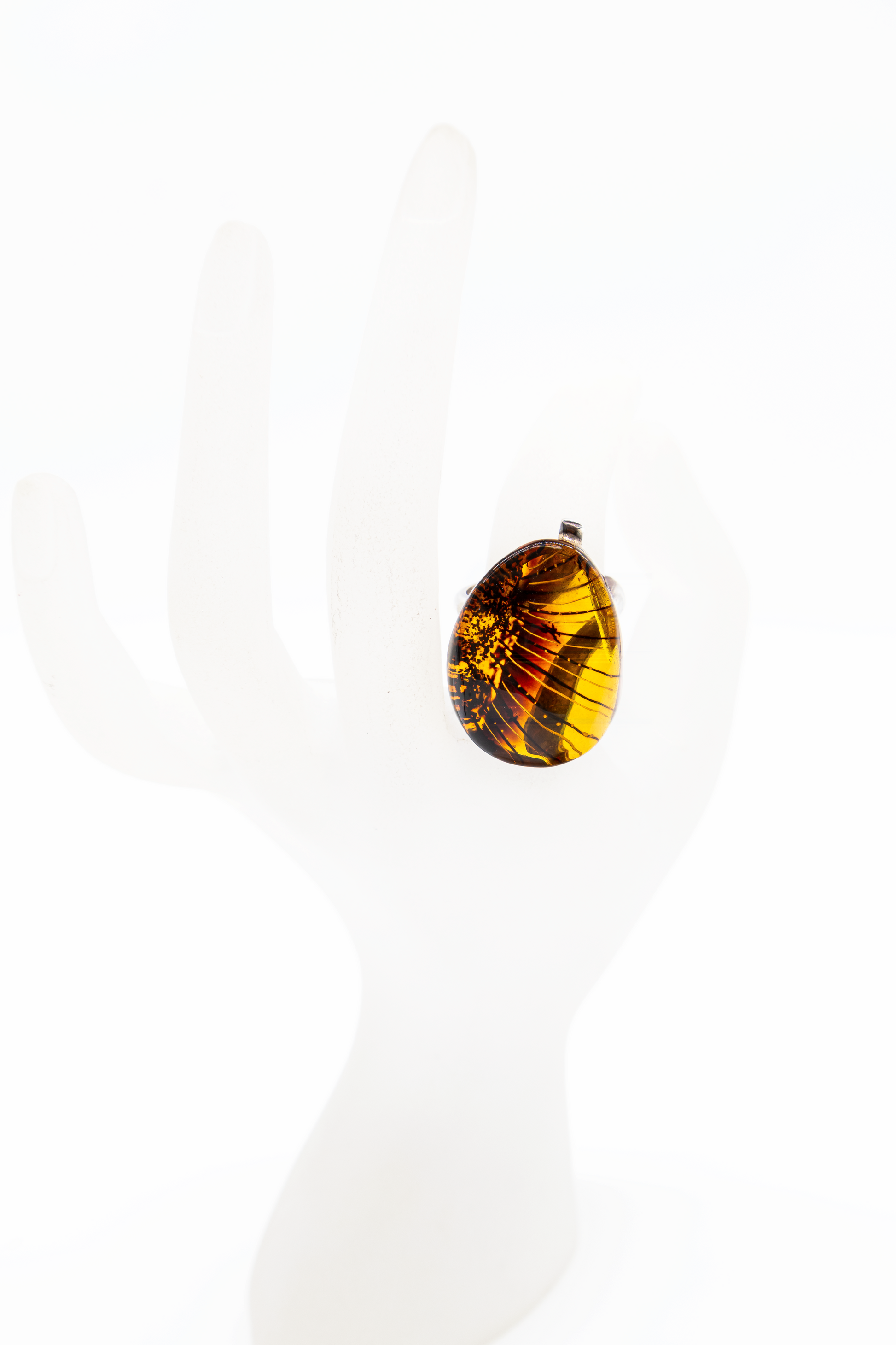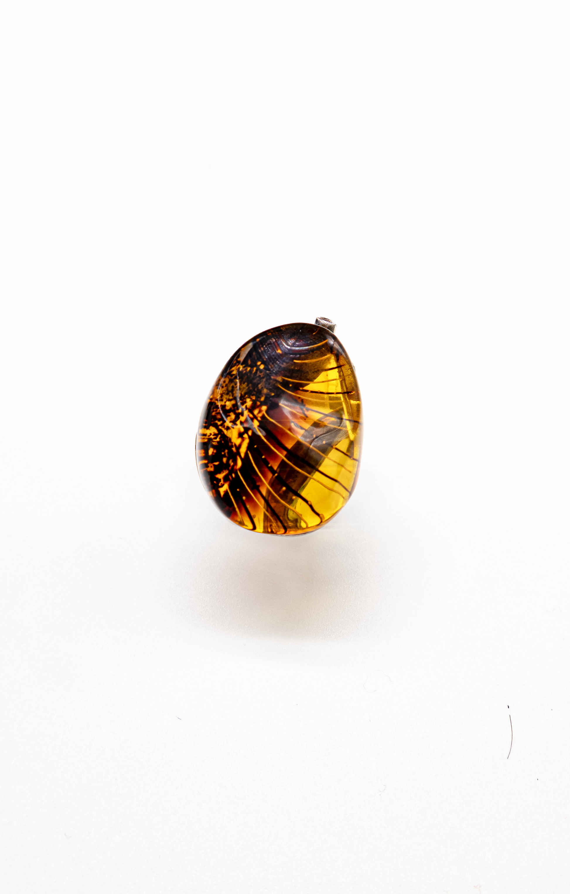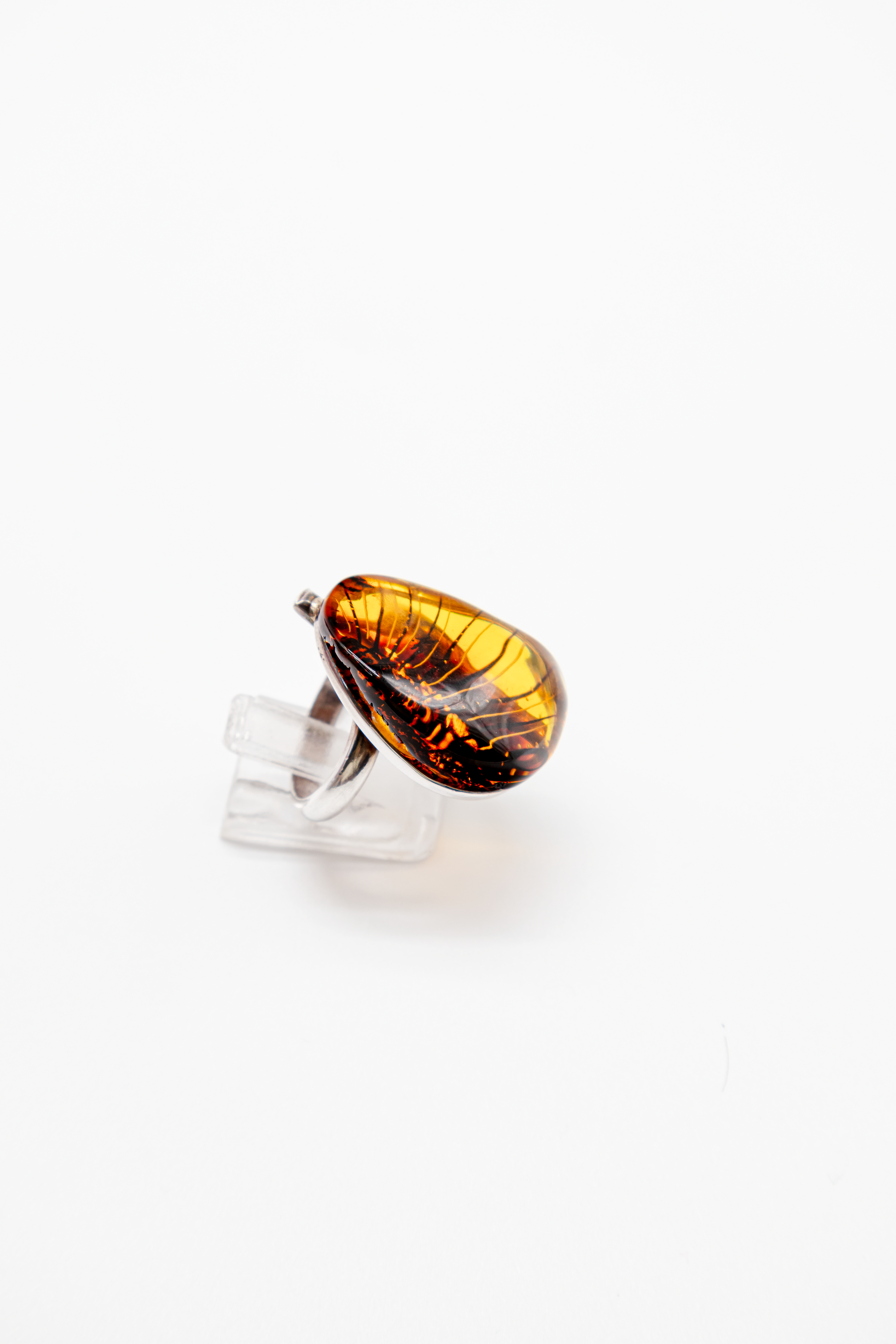 Handgefertigtes Einzelstück – jede Linie im Bernstein ist naturgegeben und macht den Ring absolut einzigartig.