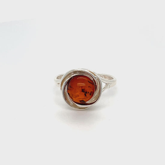 Dieser zarte Silberring rückt den warm leuchtenden Bernstein in den Mittelpunkt und verleiht ihm eine feine, elegante Bühne.