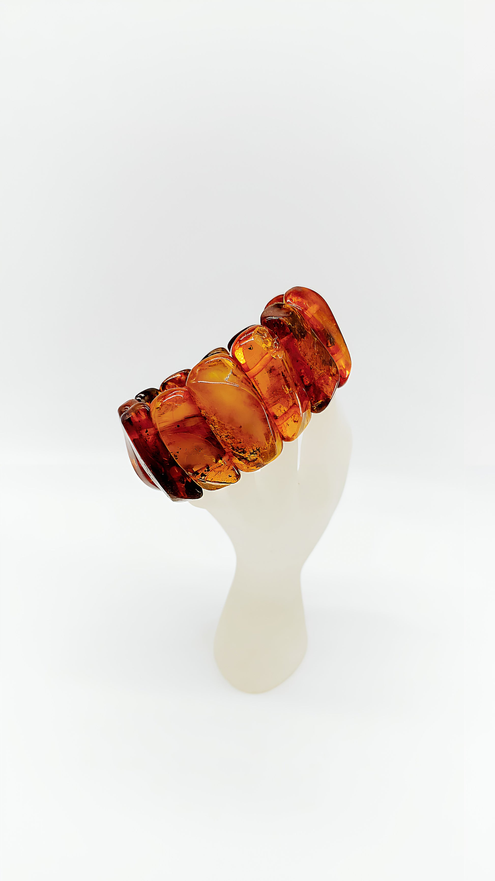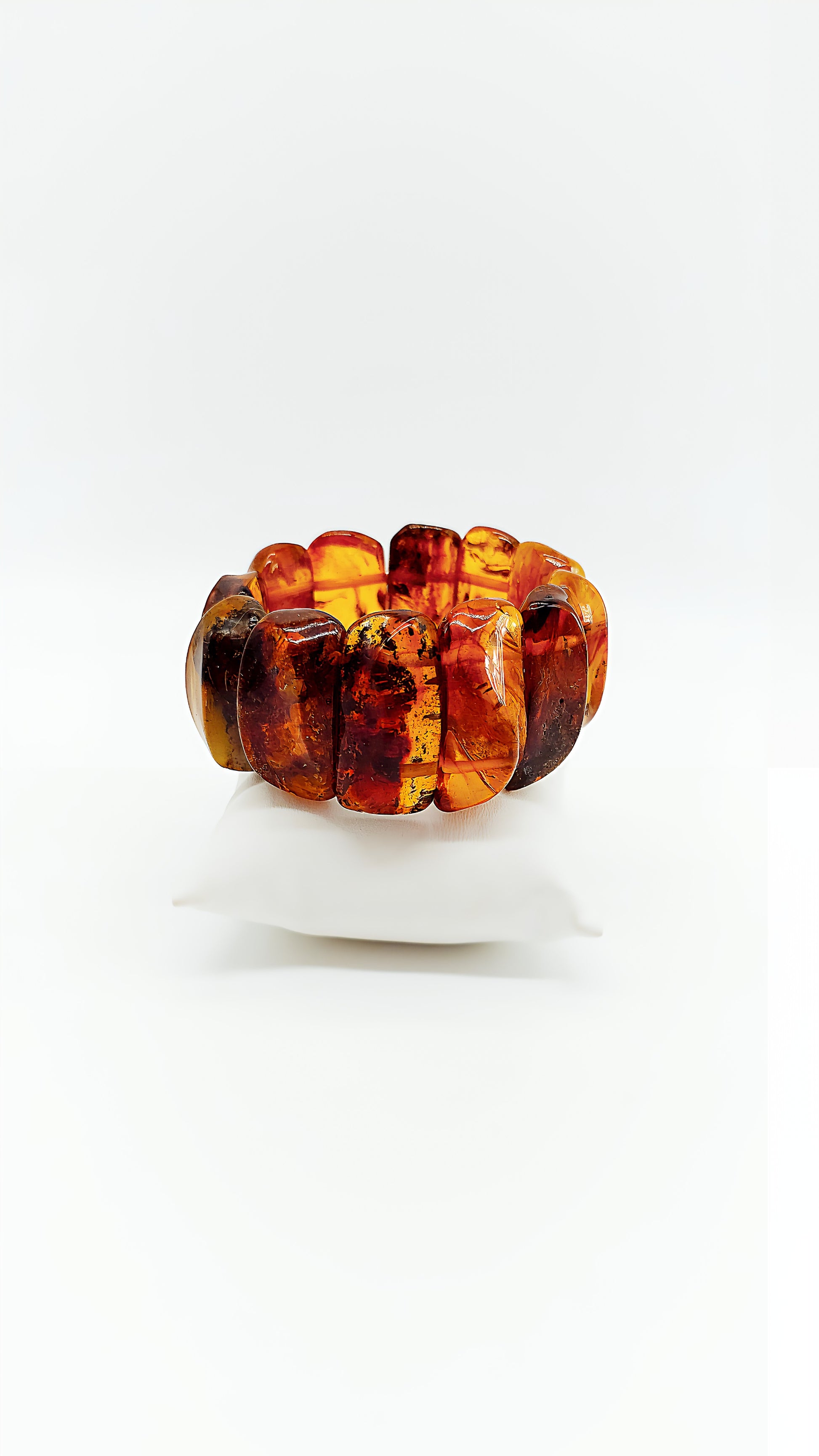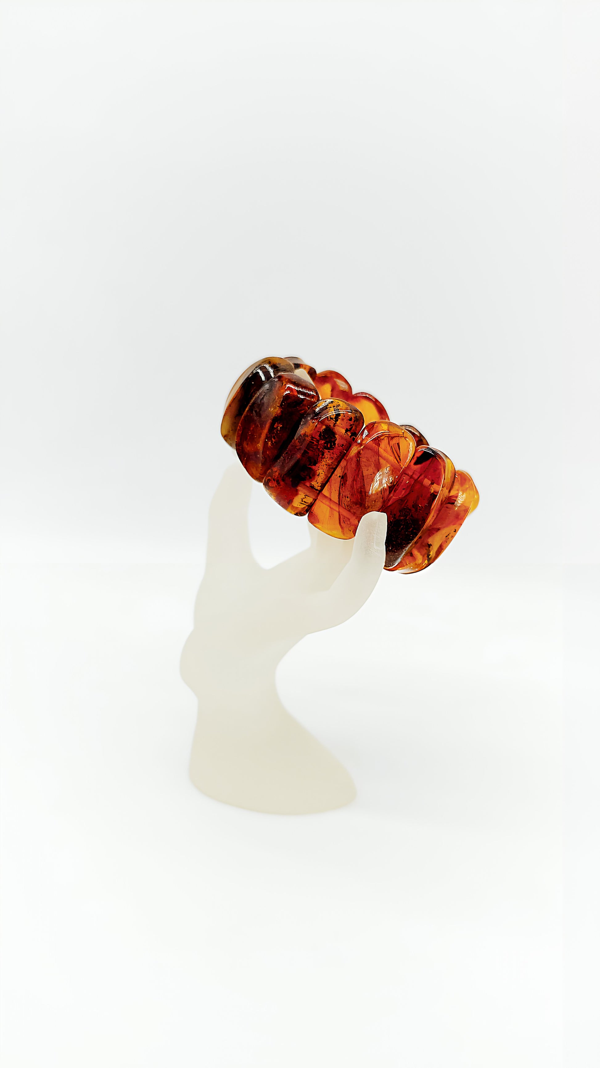 This beautiful bracelet made of genuine amber is a true statement piece. The warm, golden-brown tones of the amber capture the light in a unique way, lending your look a natural elegance. Each amber stone is unique, making this bracelet a special piece of jewelry. Whether as an everyday accessory or as a highlight for special occasions, this bracelet brings a touch of nature and history to your wardrobe. A timeless piece of jewelry for lovers of natural beauty.