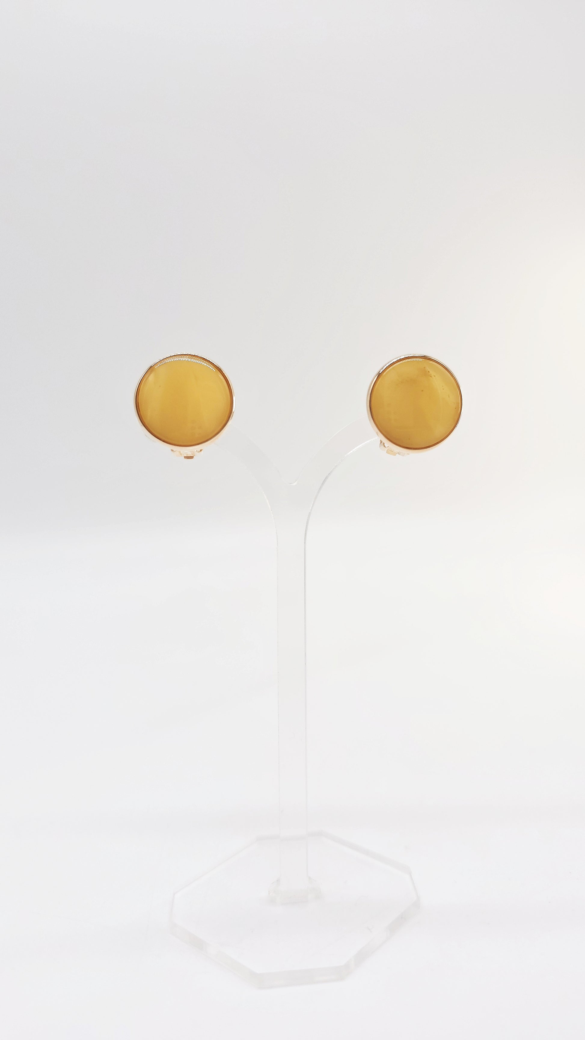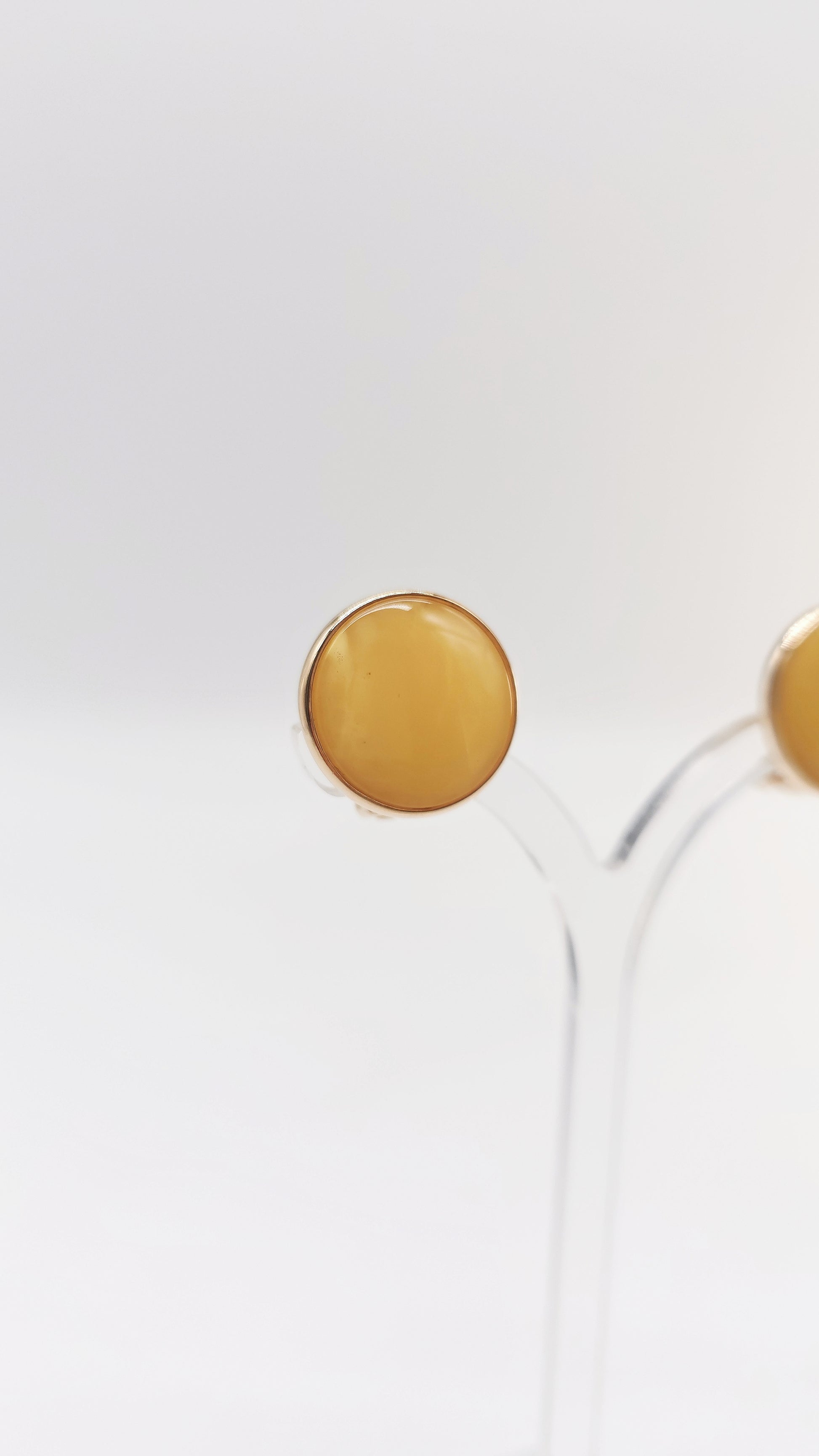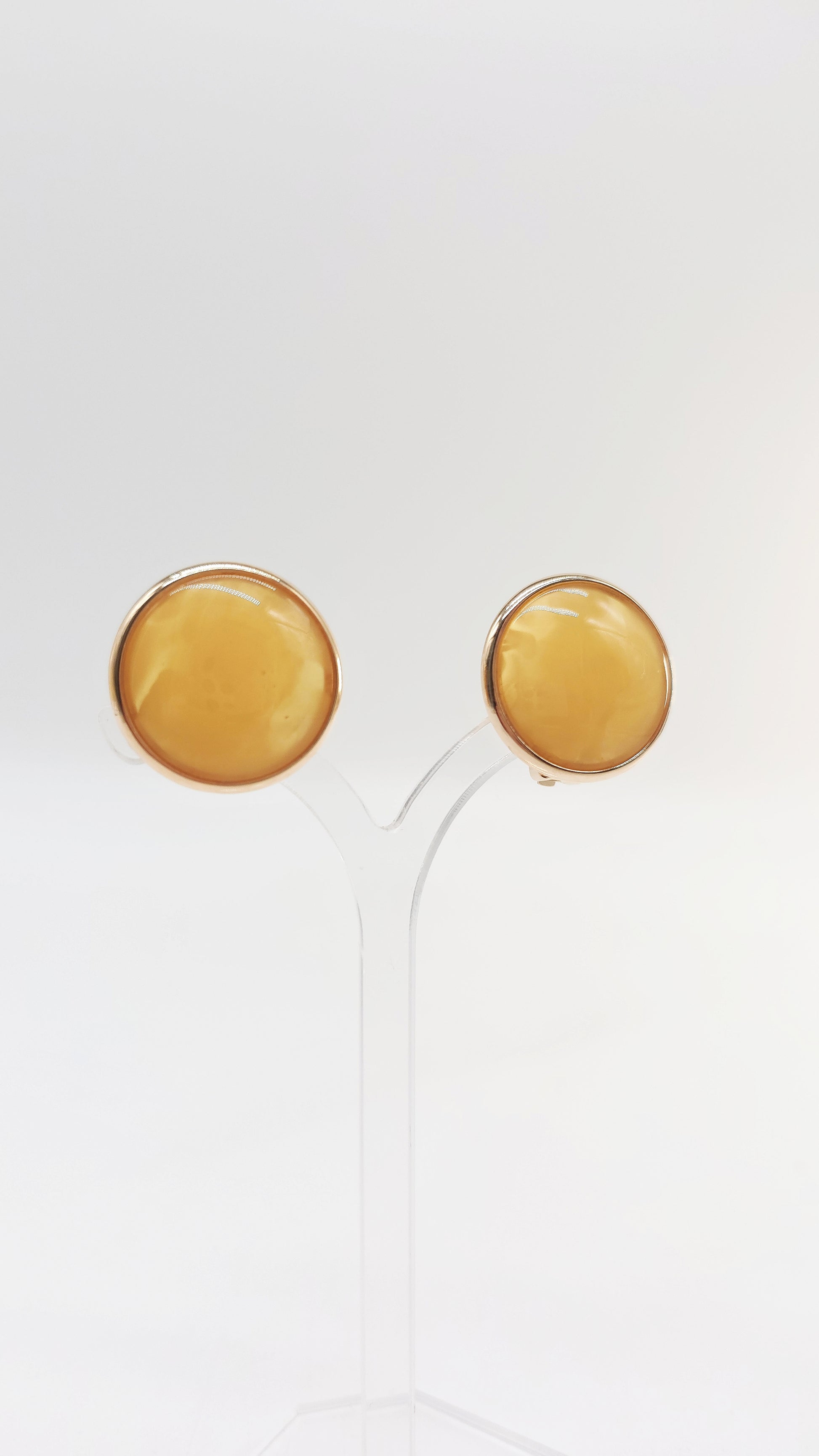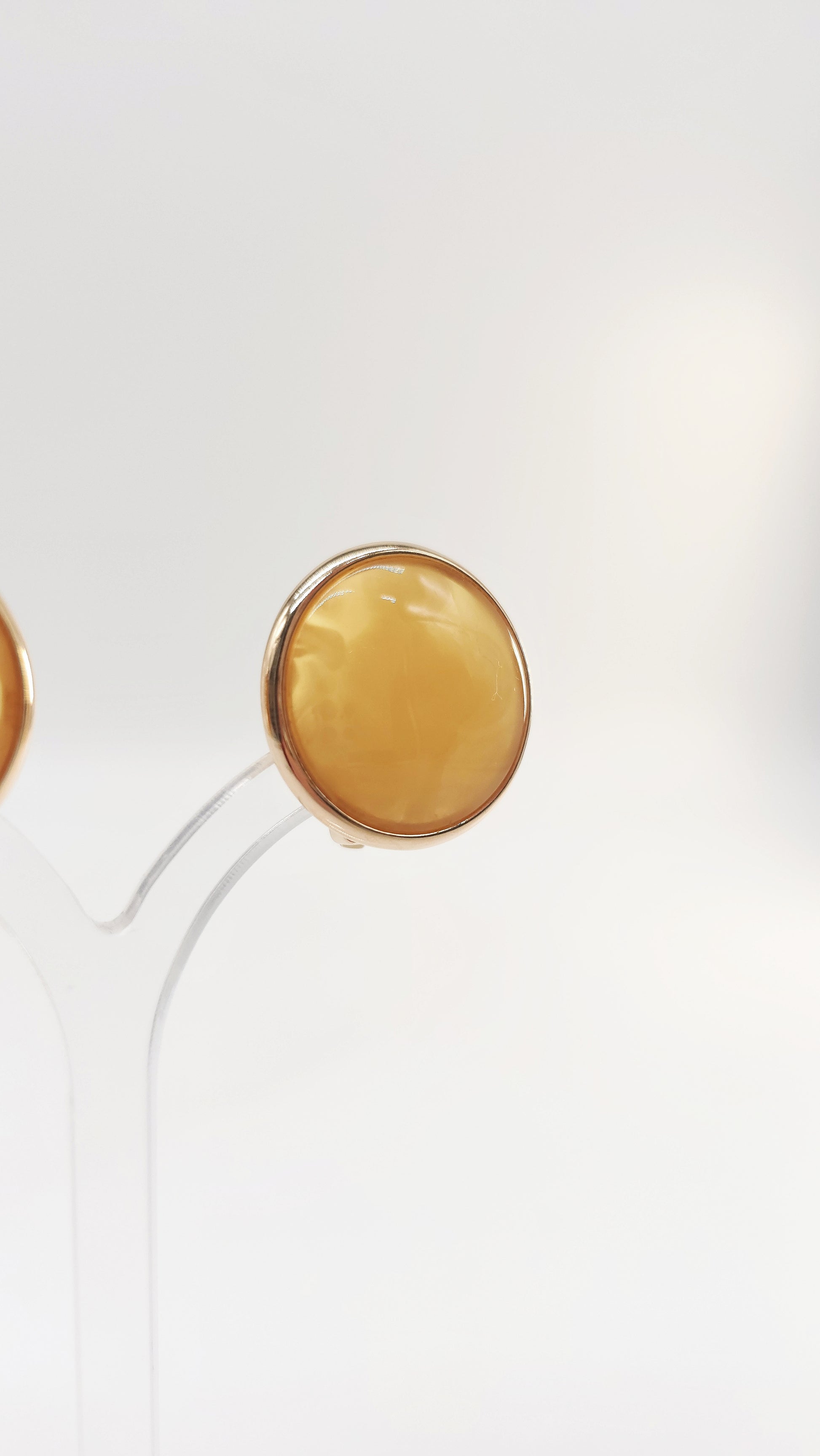 These gold-plated ear clips with round yellow amber are an expression of elegance and timeless beauty. The warm yellow amber, set in high-quality gold-plated 925 silver , gives these ear clips a sophisticated look.