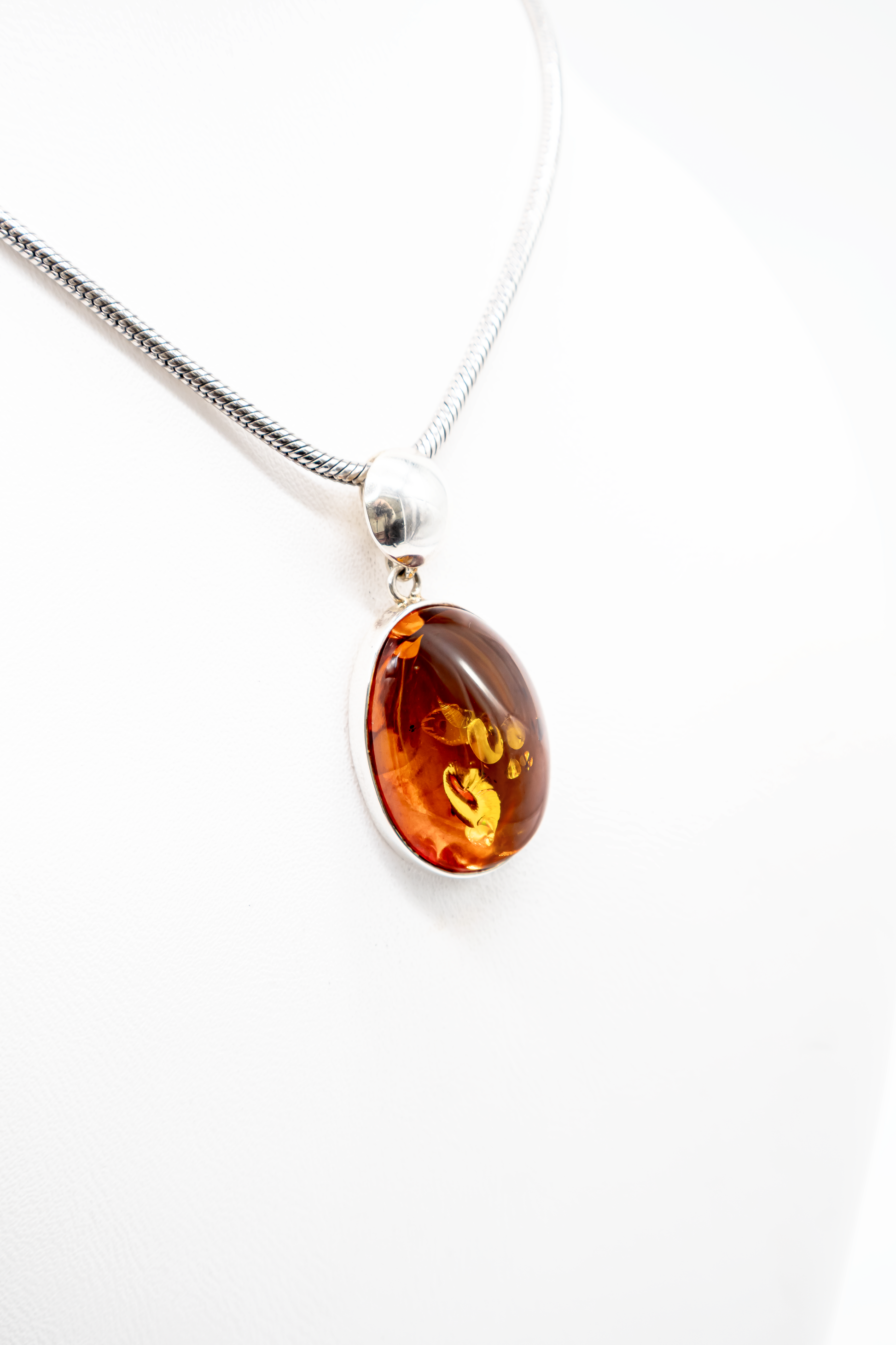 Ovaler Bernsteinanhänger Cognacfarbe 925 Silber