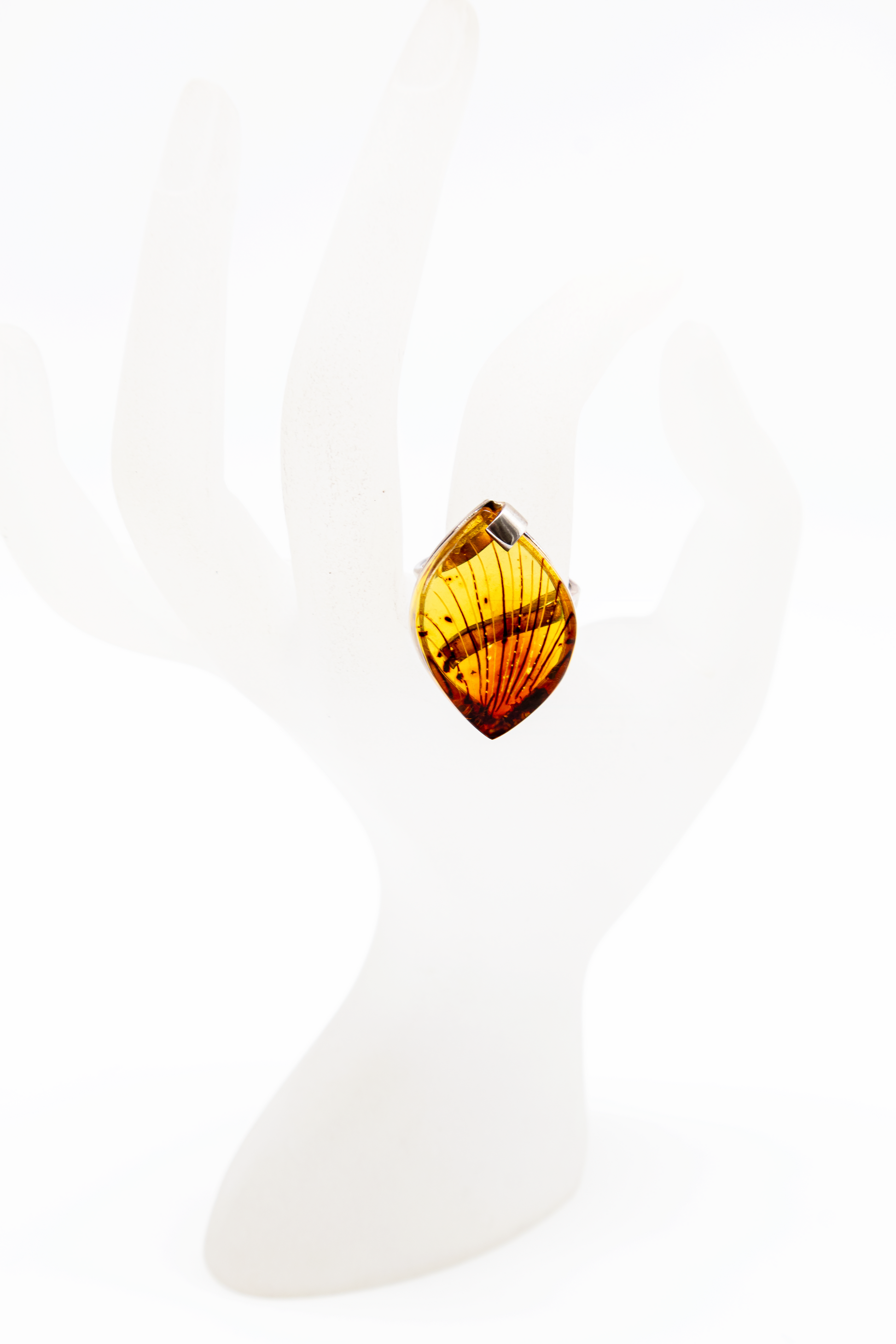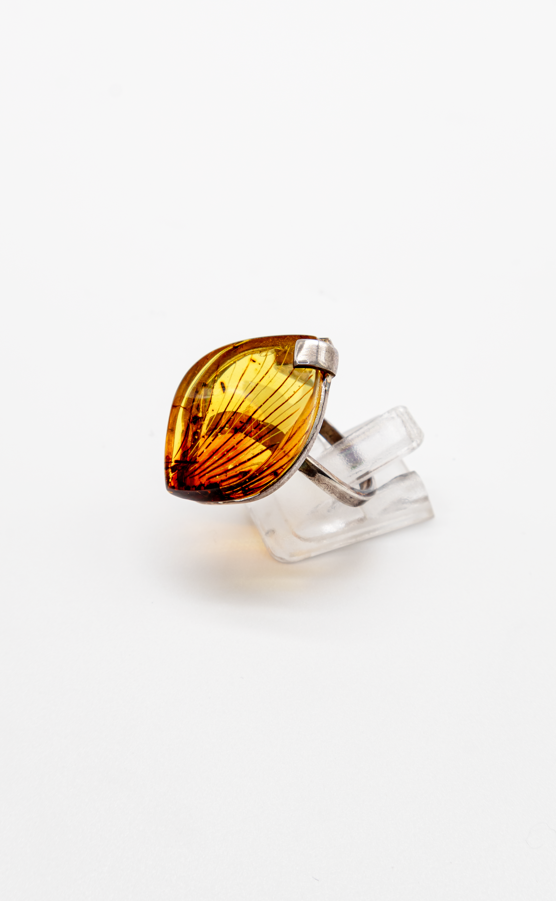 Sorgfältig von Hand gefertigtes Einzelstück – mit einzigartigem Bernsteinbild, das nur in diesem Ring existiert.