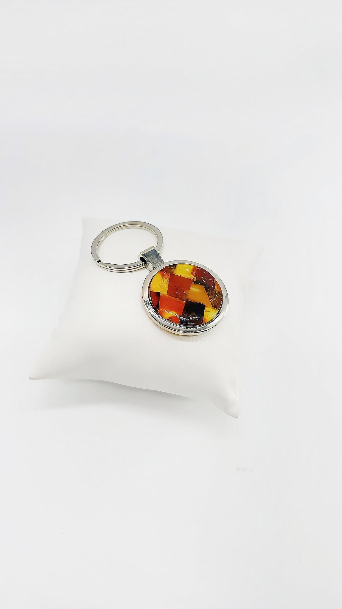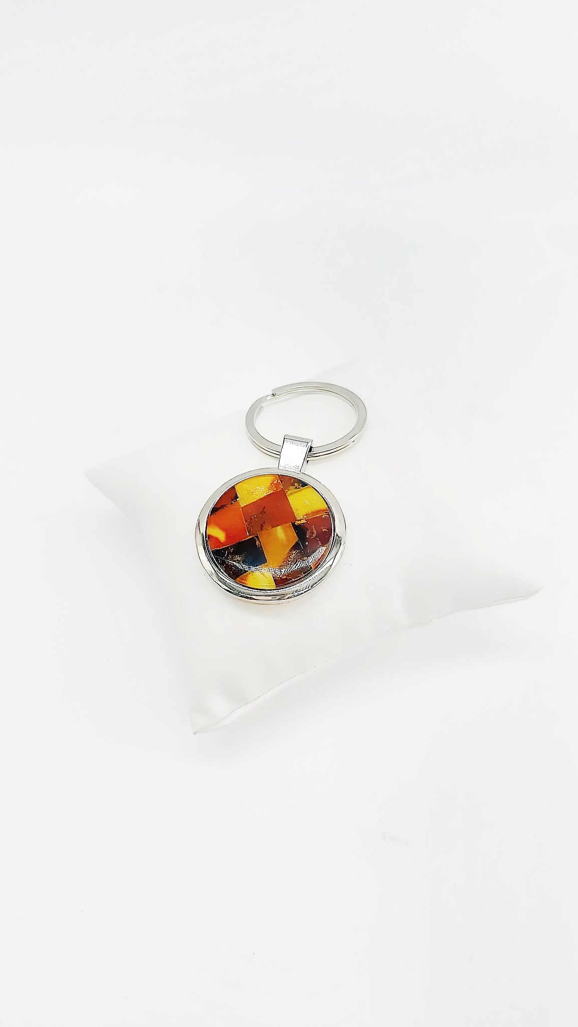 This round keychain combines robust metal with the natural beauty of amber. The artfully crafted amber insert in warm, natural tones makes any keychain a real eye-catcher. Ideal for everyday use and as a unique gift.