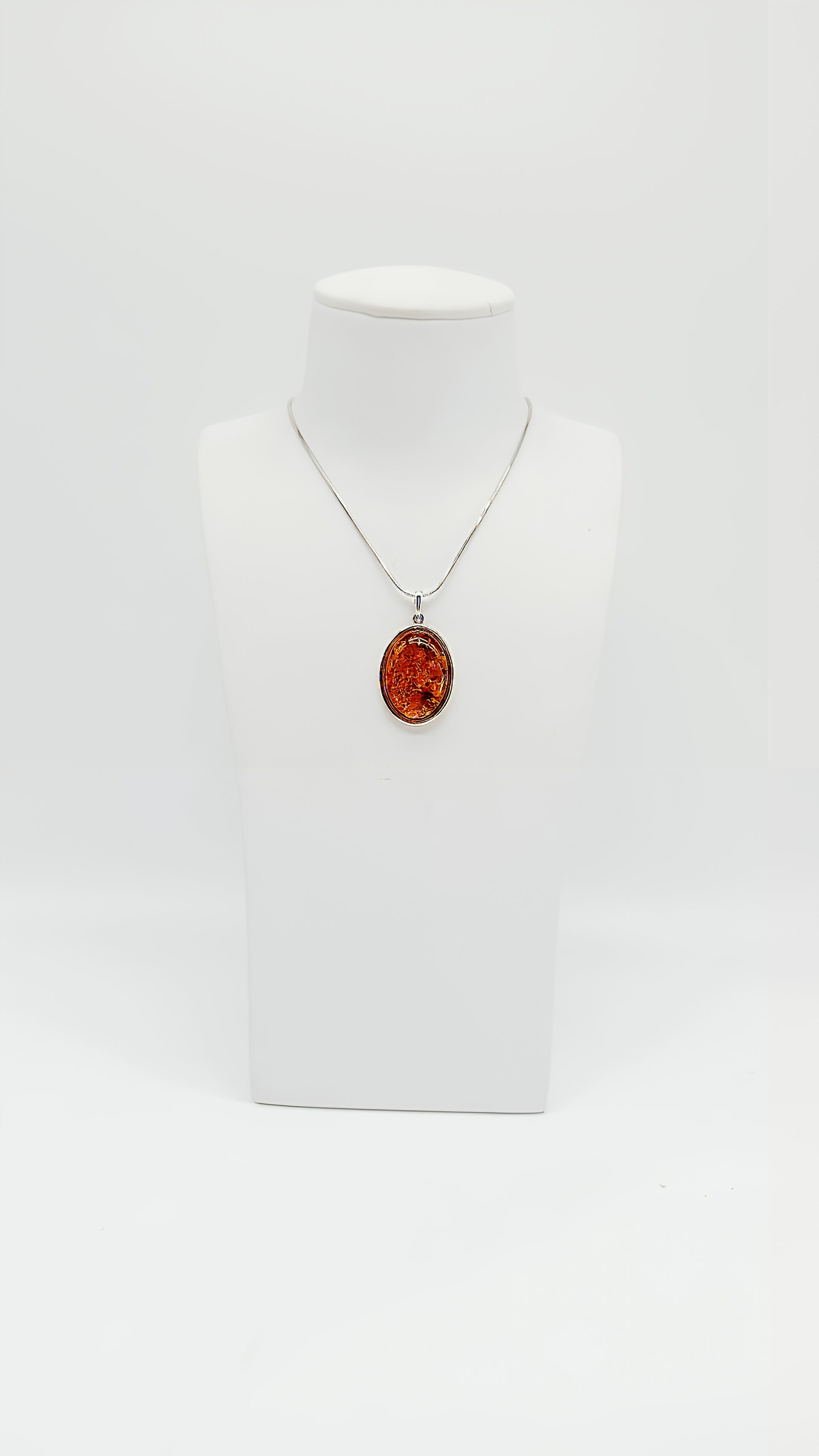 A stunning pendant crafted from 925 sterling silver, adorned with a beautiful butterfly design. The highlight of this piece is the vibrant orange amber that sparkles at its center, evoking the warm colors of a sunset. The combination of delicate silverwork and the warm glow of the amber makes this pendant a unique accessory that will enhance any jewelry collection. Ideal for those who want to combine a connection to nature with stylish design.