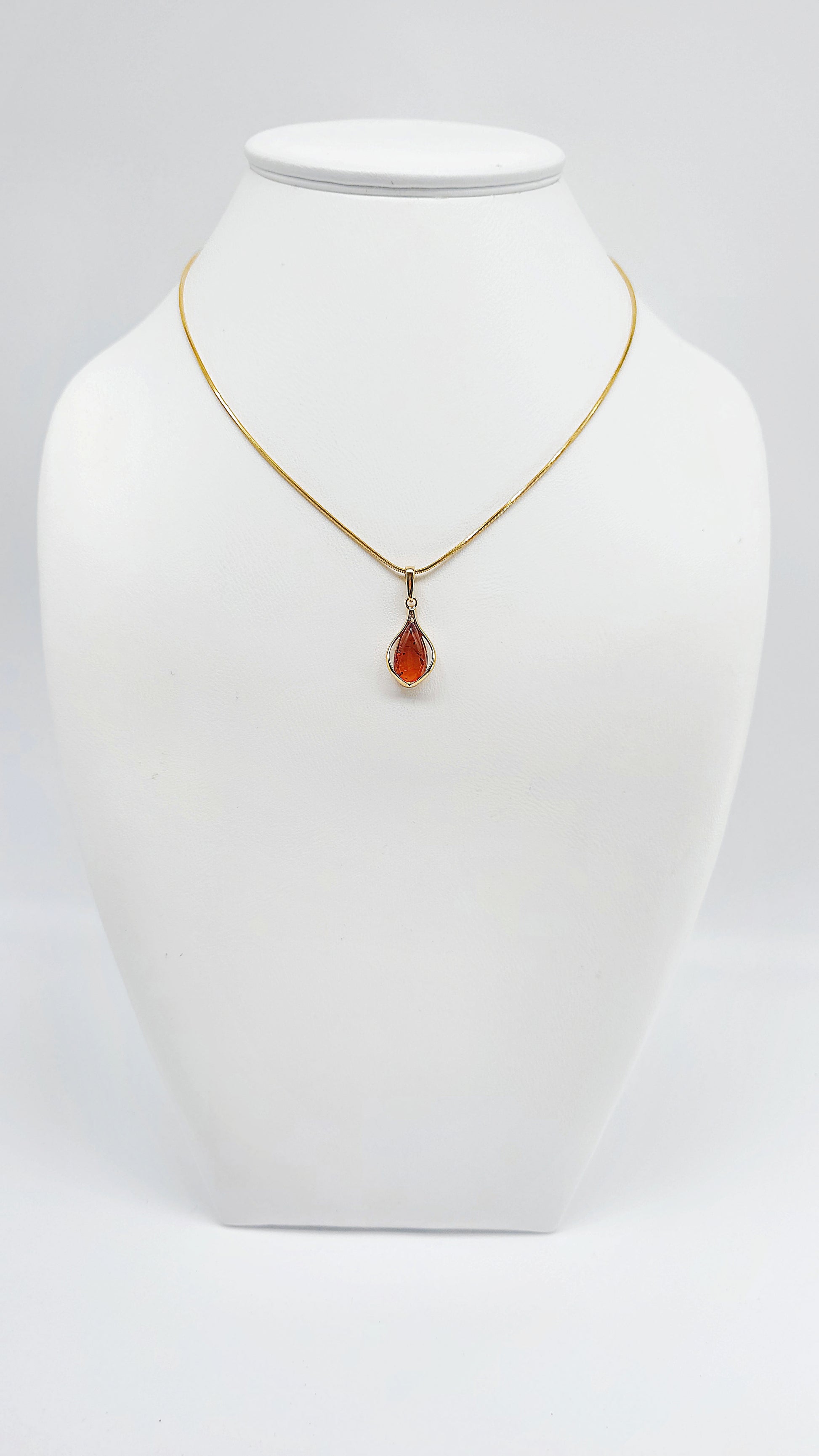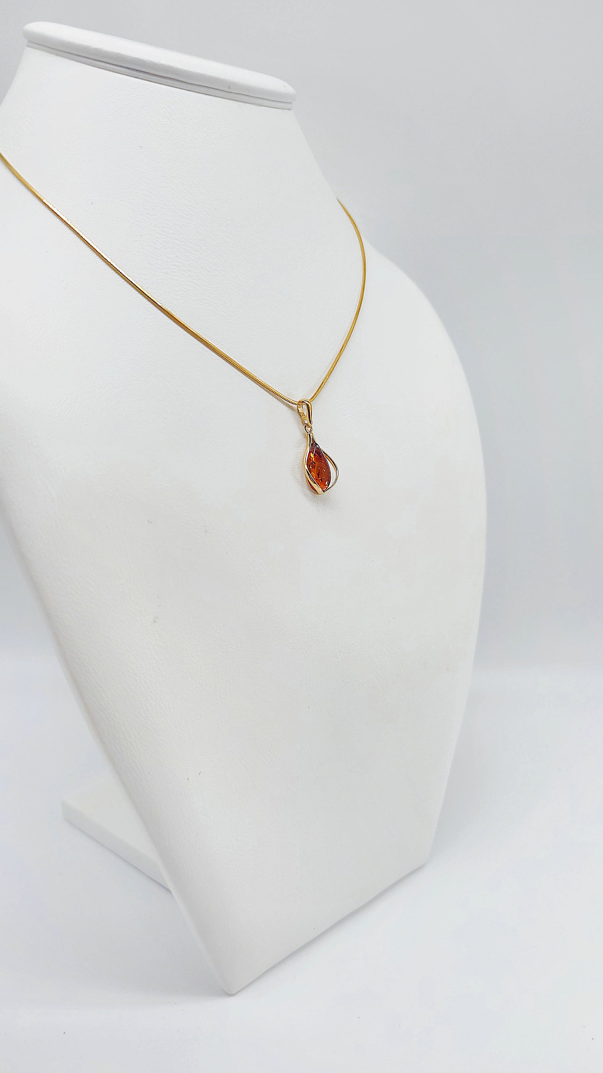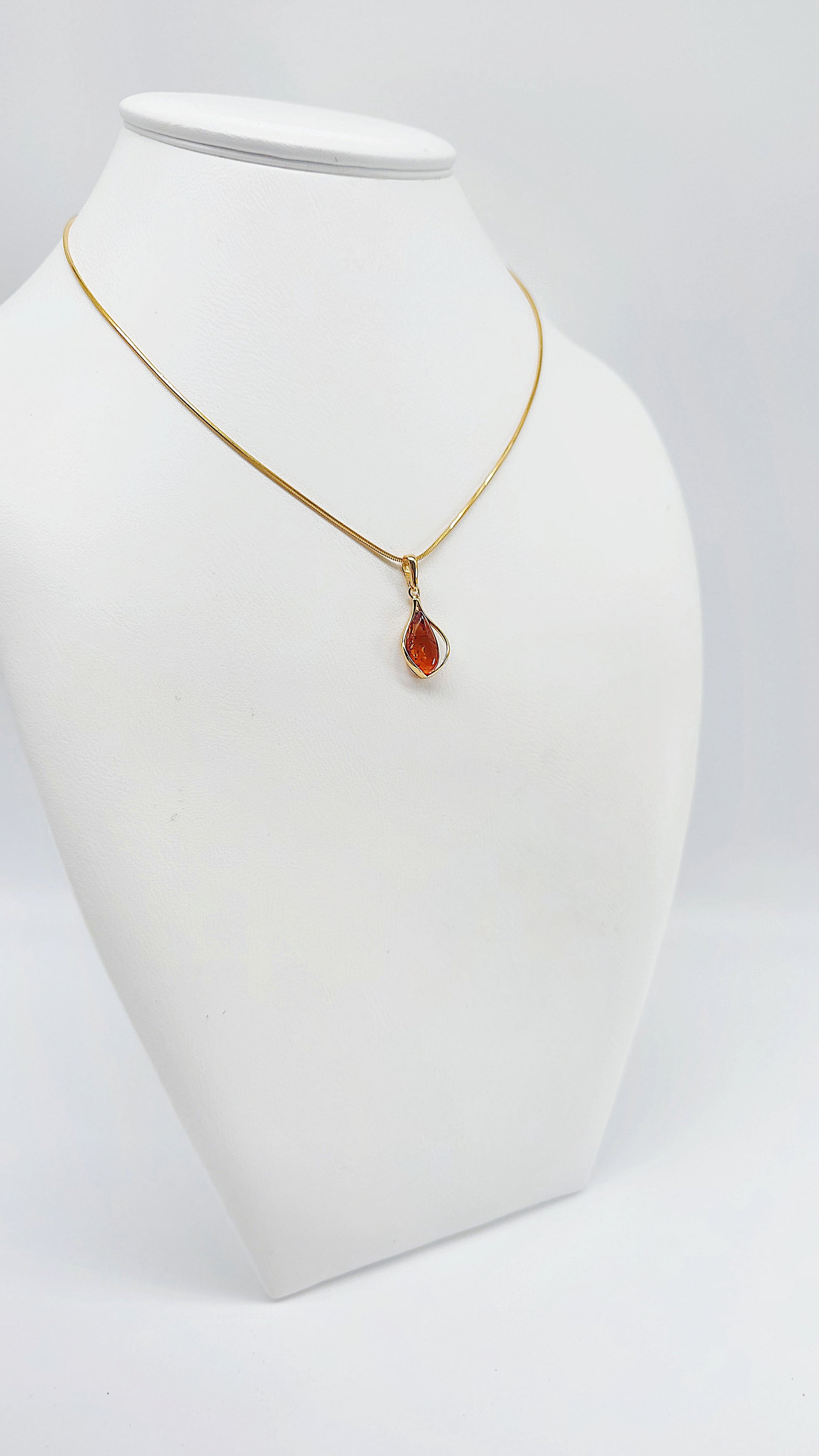 This high-quality necklace made of gold-plated 925 sterling silver with genuine amber combines timeless elegance with natural beauty. The beautifully cut amber in a vibrant orange hue gives this piece of jewelry a warm, refined radiance.