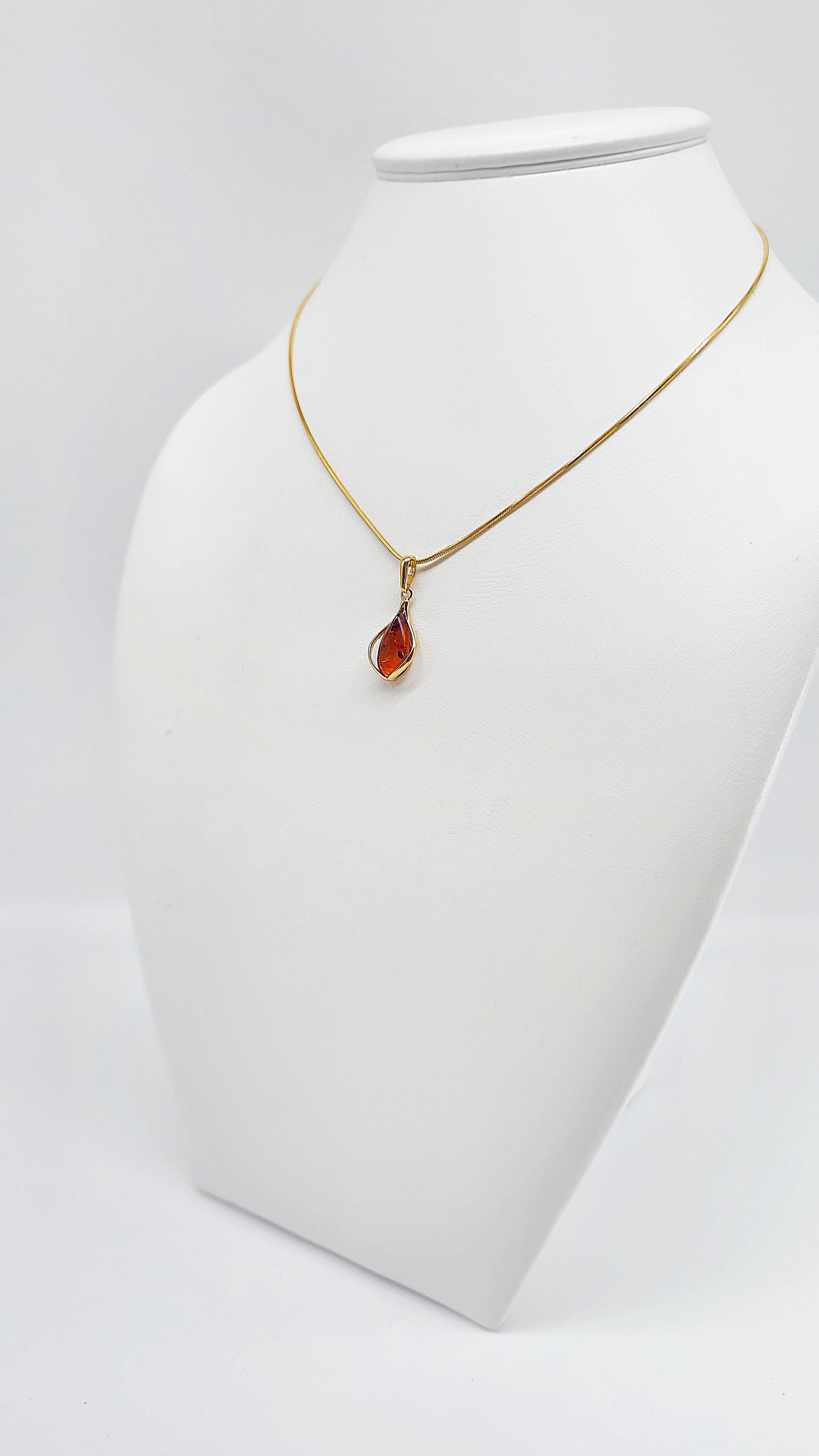 Jewelry set: Gold-plated necklace with genuine amber pendant