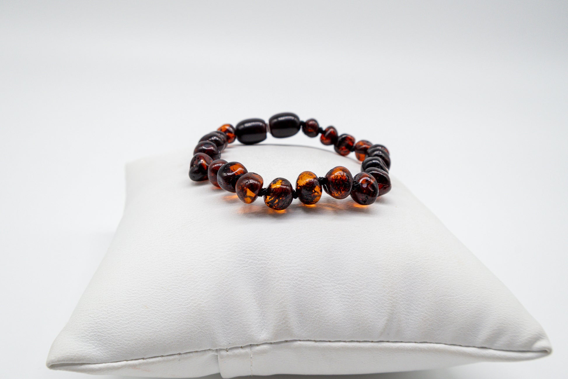 This lovingly handcrafted amber bracelet for babies and children is not only an enchanting piece of jewelry, but also a symbolic protective companion made of genuine amber. With a length of approximately 13 cm and a secure screw clasp, it's ideal for small children's hands. Thanks to the warm amber, the bracelet is comfortable to wear and captivates with its natural beauty. Perfect as a gift for a birth, baptism, or special occasions. Tip: In our online shop, you'll also find matching amber necklaces for babies and children – ideal for mixing and matching!