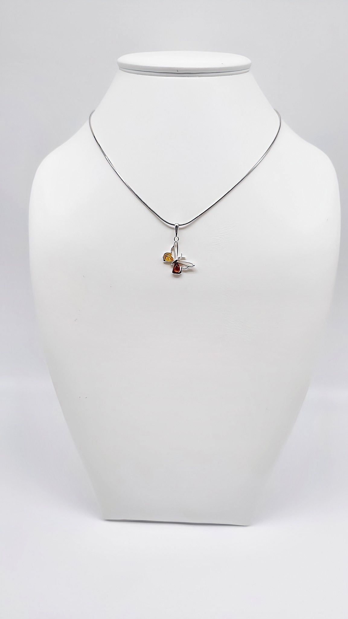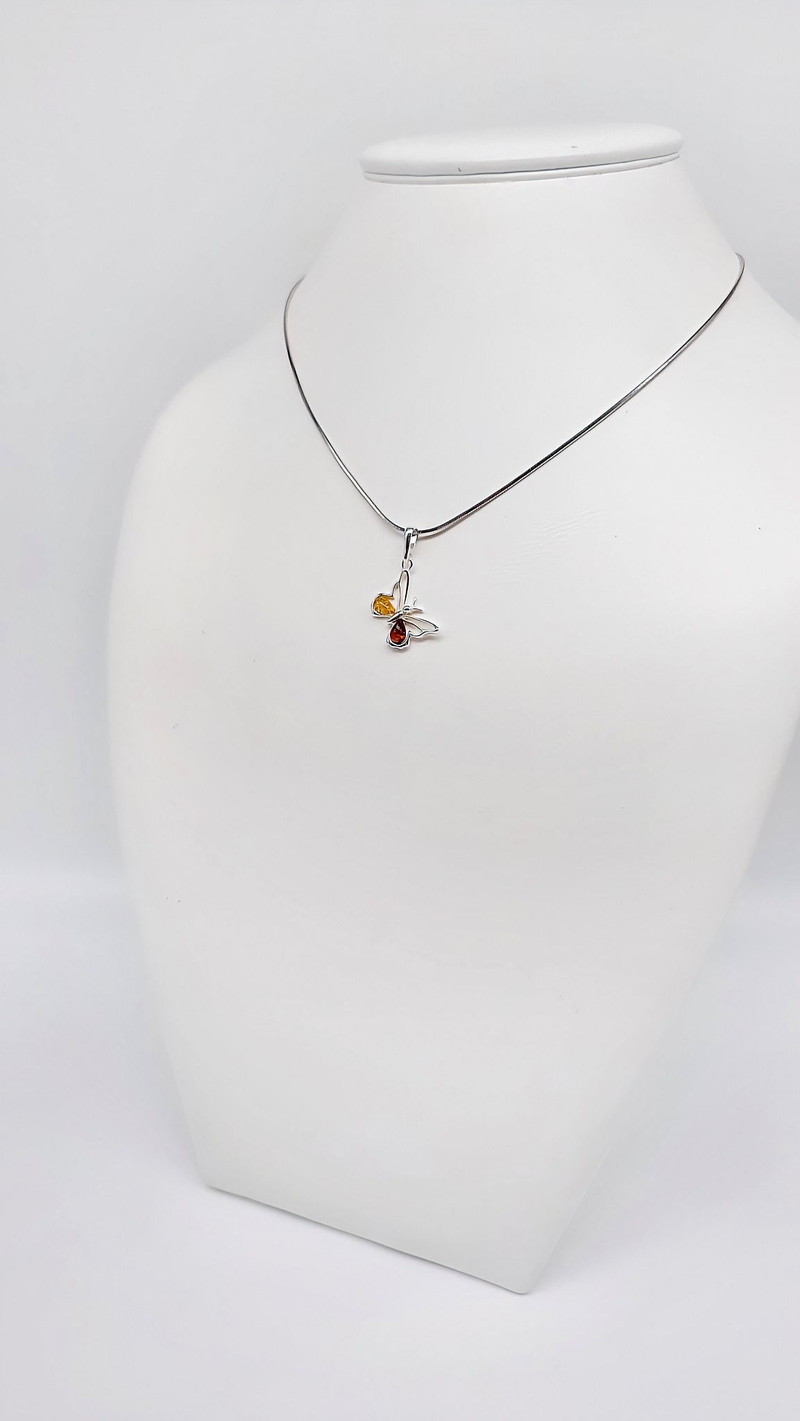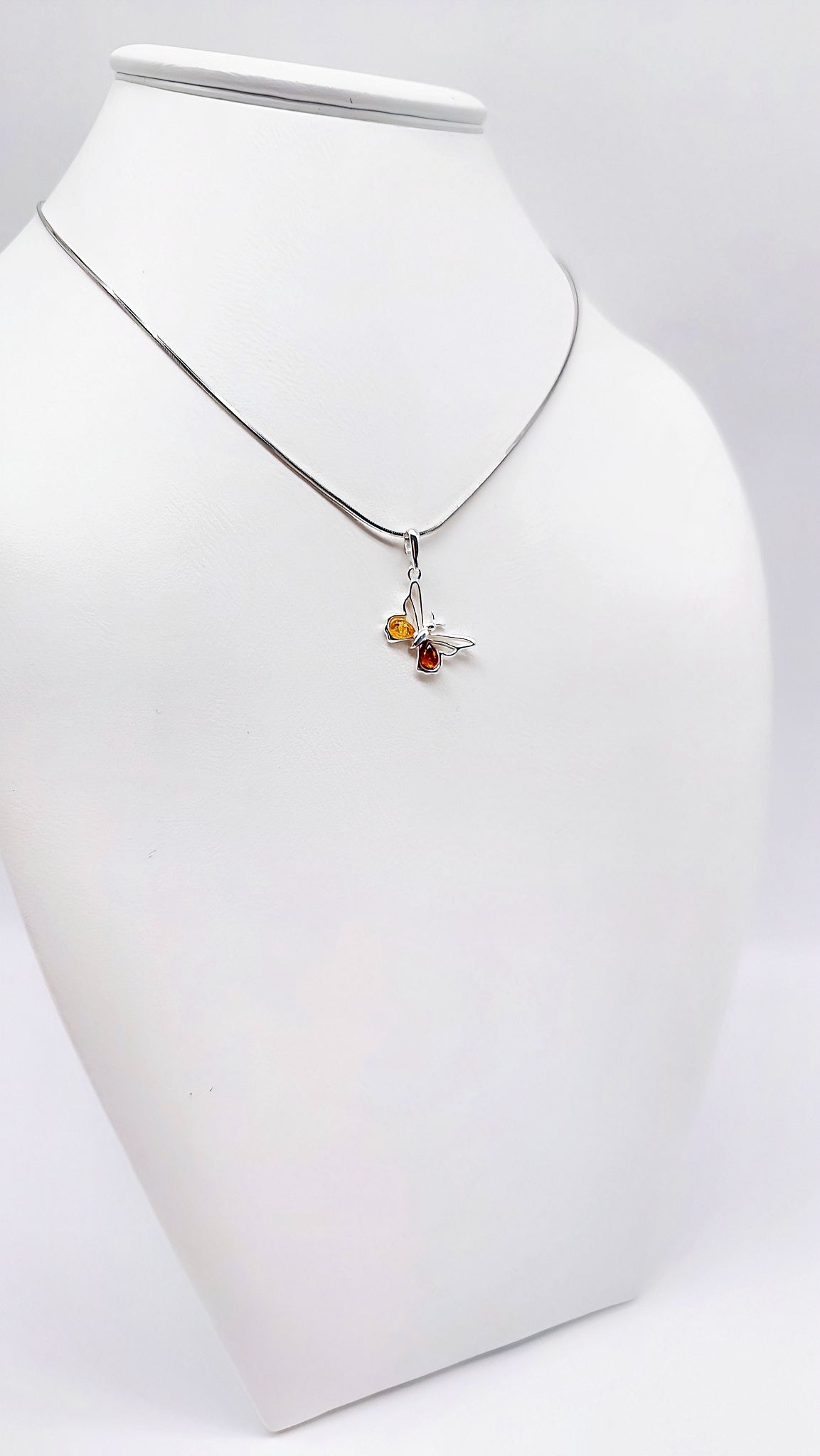 This enchanting pendant, crafted from high-quality silver, features an elegant butterfly adorned with three sparkling amber stones in varying colors. The handcrafted detail makes this piece of jewelry a unique accessory that adds a touch of natural elegance to both everyday outfits and special occasions. The pendant symbolizes lightness and beauty and is a perfect gift for any nature lover.