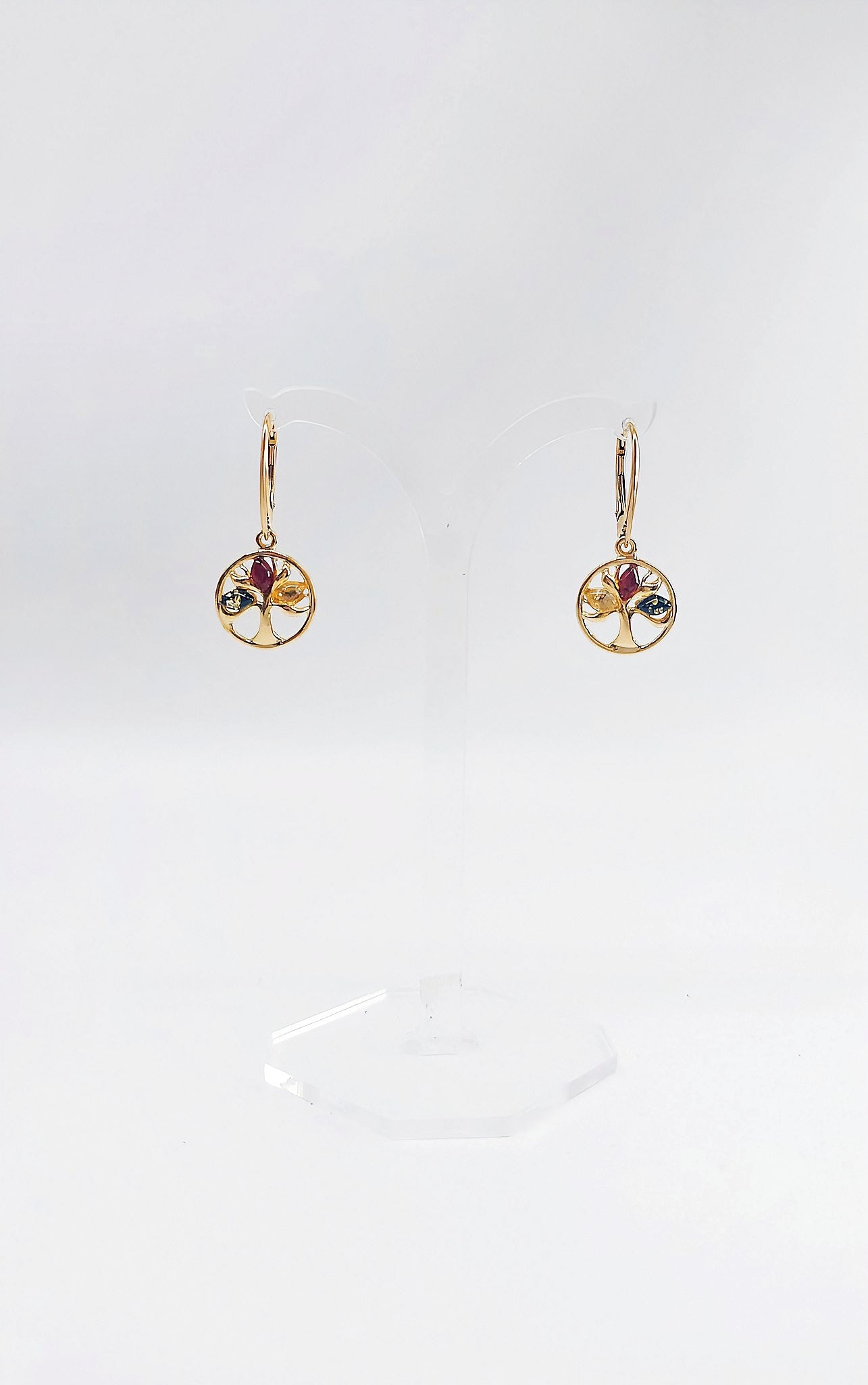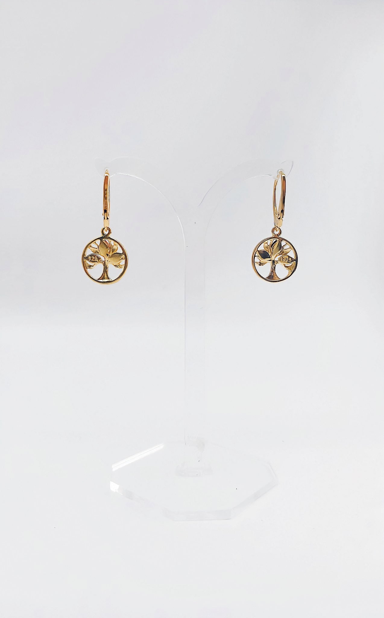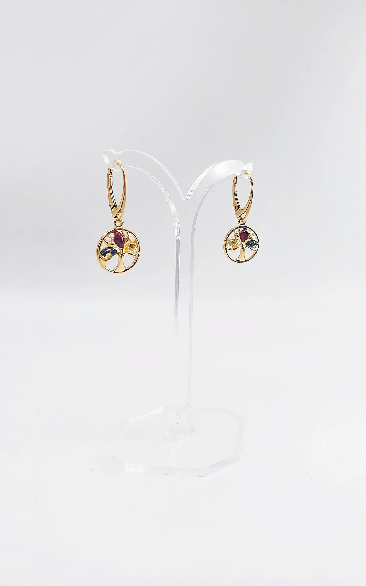 Spiritual Tree of Life Earrings with Amber & Gold-Plated Silver