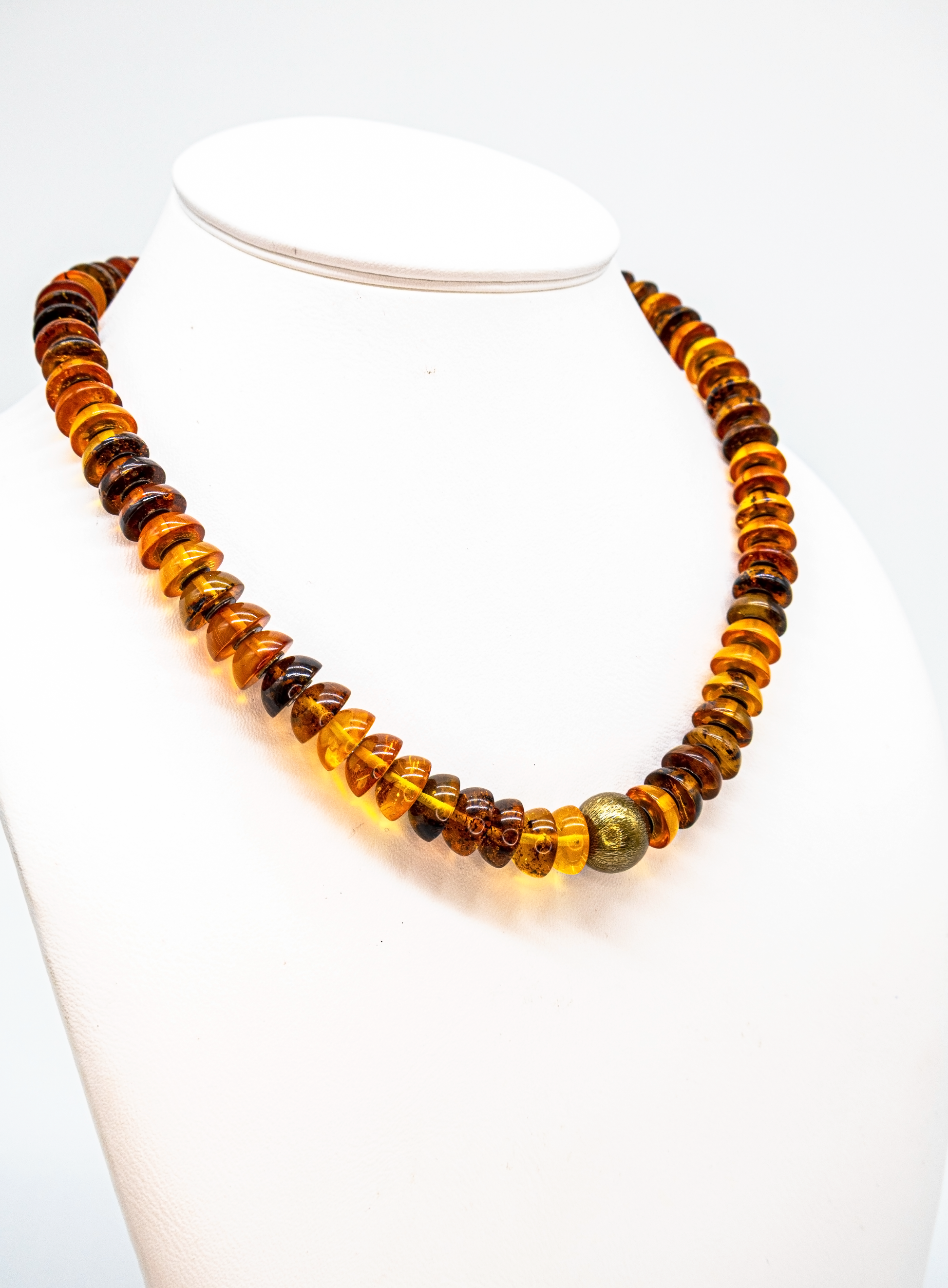 Warm amber tones with practical magnetic closure – each piece of jewellery is unique