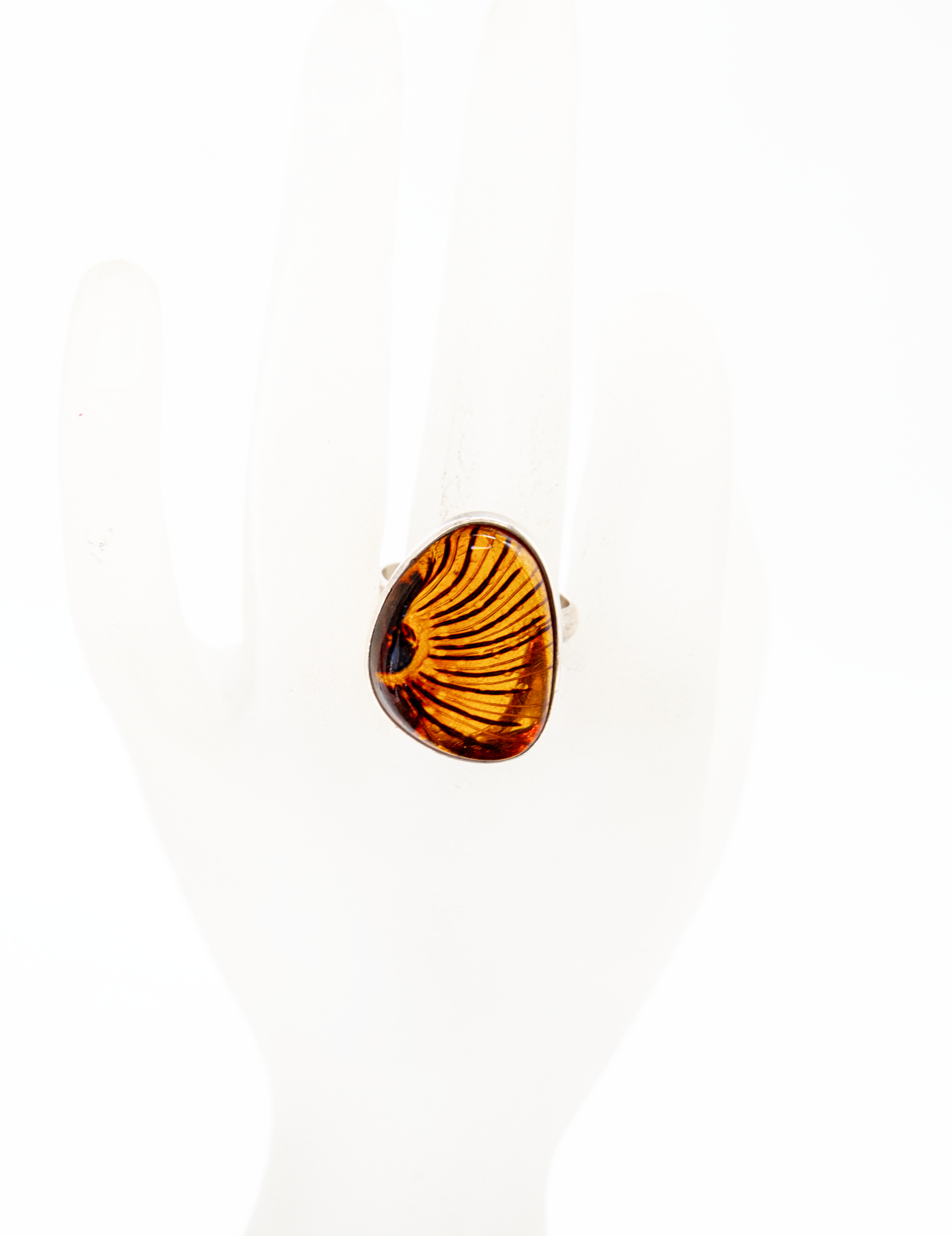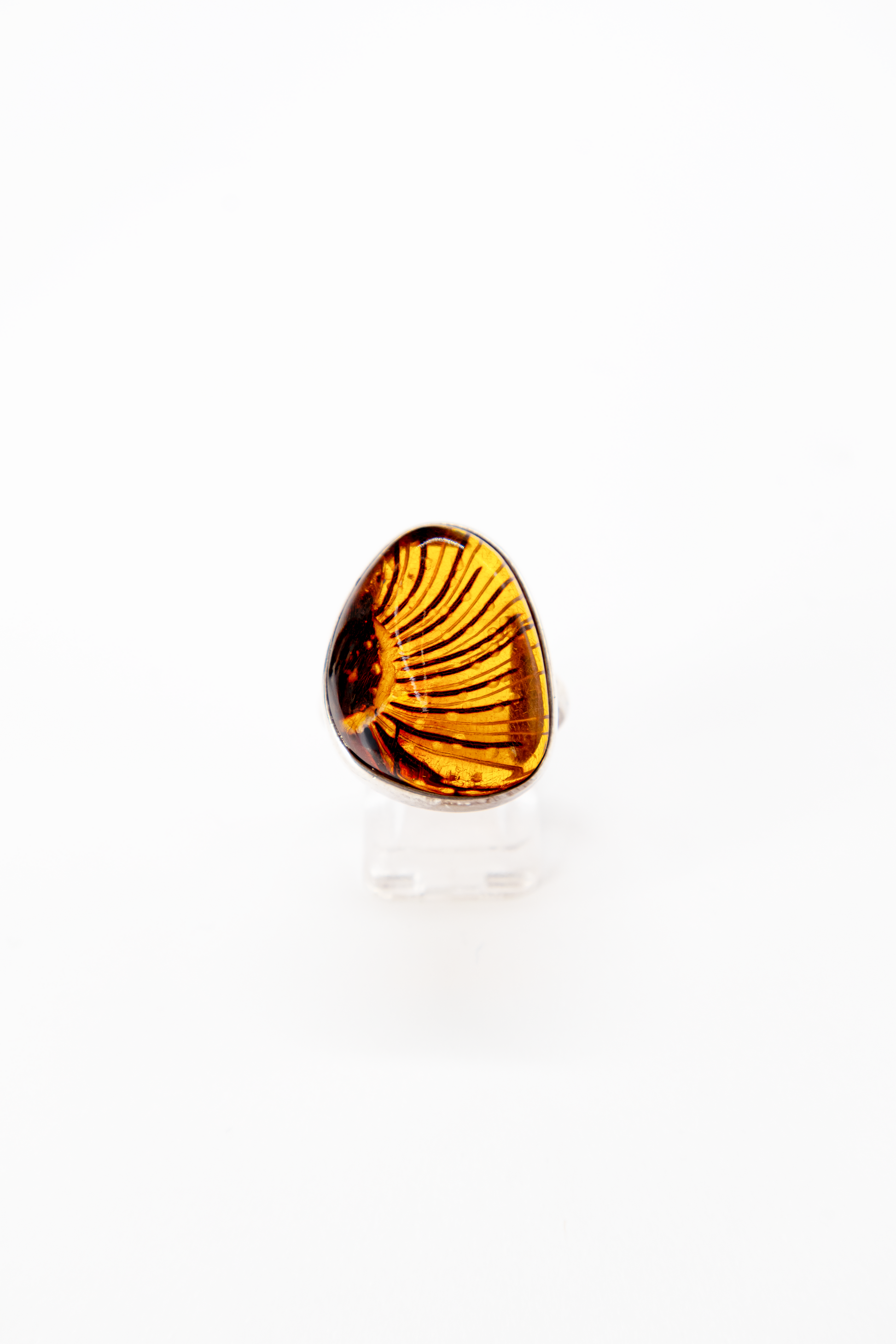 Unikat Silberring mit echtem Bernstein moderner Schliff