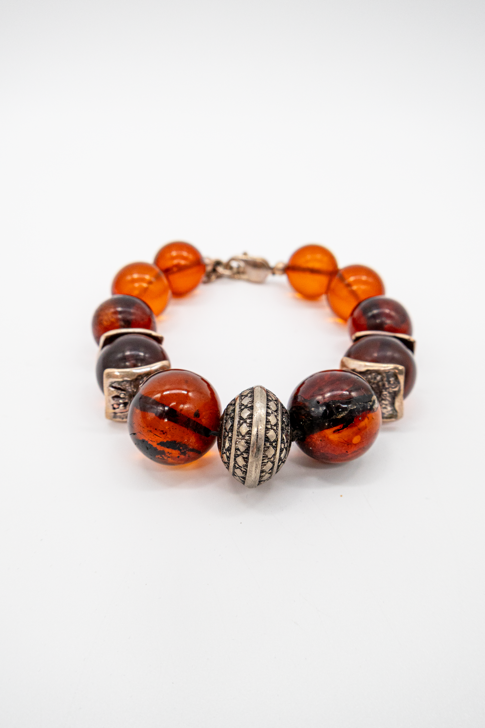 This handmade bracelet is truly unique : natural amber in warm cognac tones meets elegant 925 sterling silver . The approximately 2 cm wide piece, with a practical extension (23 + 4 cm), fits comfortably on the wrist. A robust lobster clasp ensures a secure fit. The artistic design and high-quality materials make this bracelet a stylish accessory for every occasion—and an ideal gift for special women.