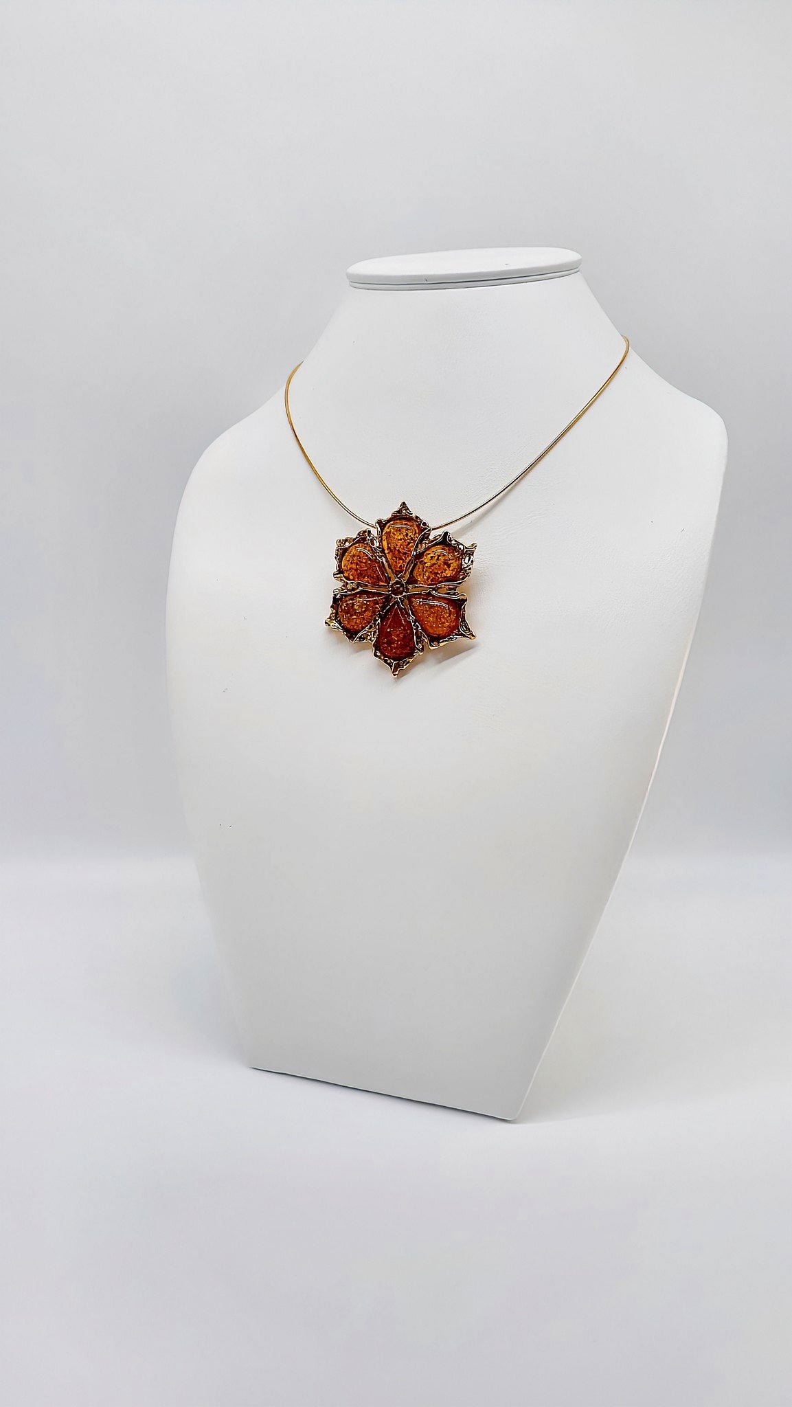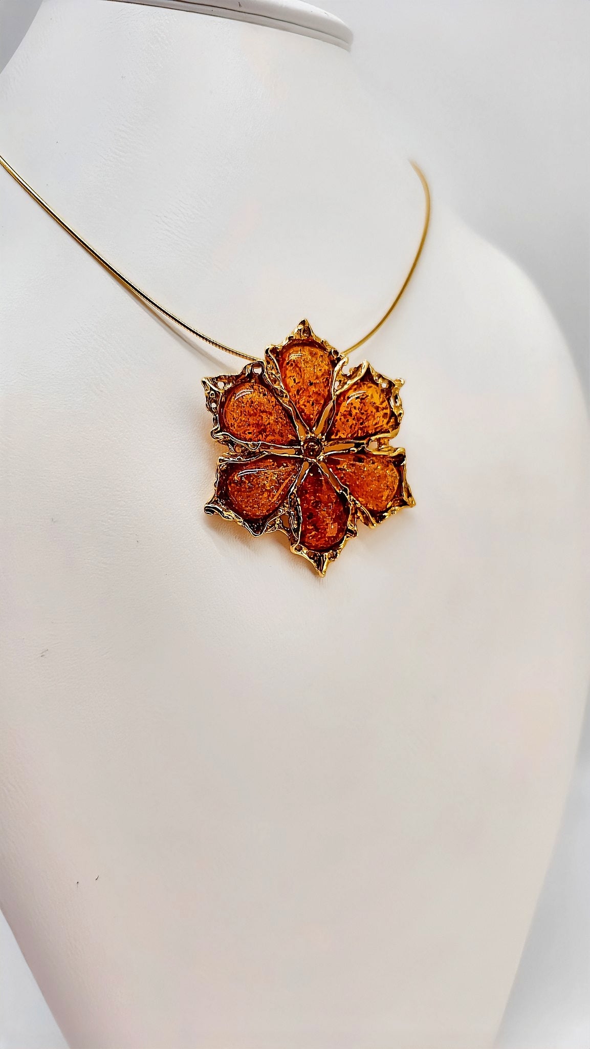 Gold-plated flower pendant with amber