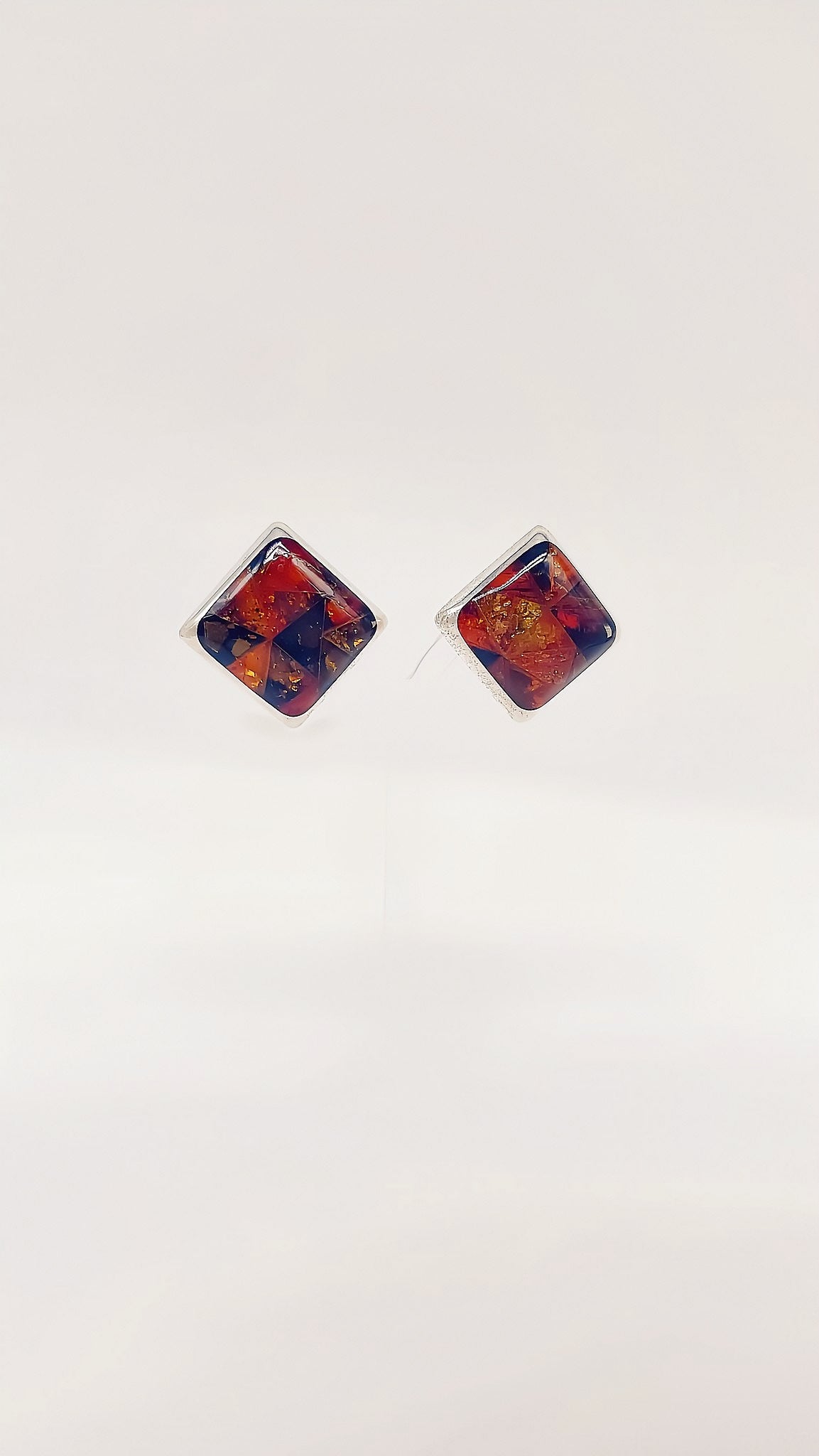 925 sterling silver, genuine natural amber Design: Square amber setting in silver