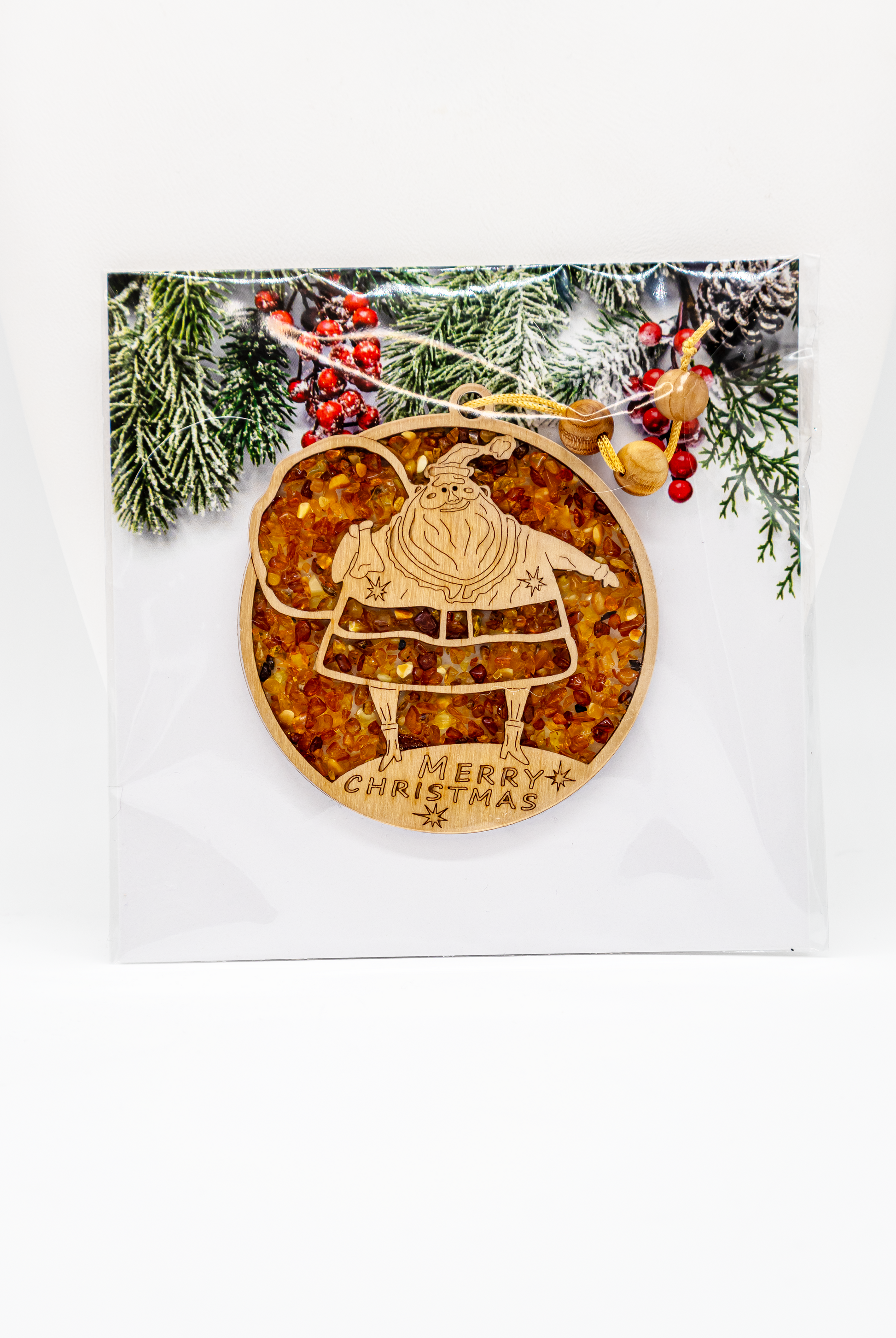 Suchen Sie nach Weihnachtsschmuck, der Tradition und moderne "Boho"-Ästhetik verbindet? Diese einzigartige Kollektion aus Holz-Ornamenten, gefüllt mit leuchtenden Bernstein-Splittern, ist ein echter Blickfang an jedem Weihnachtsbaum.