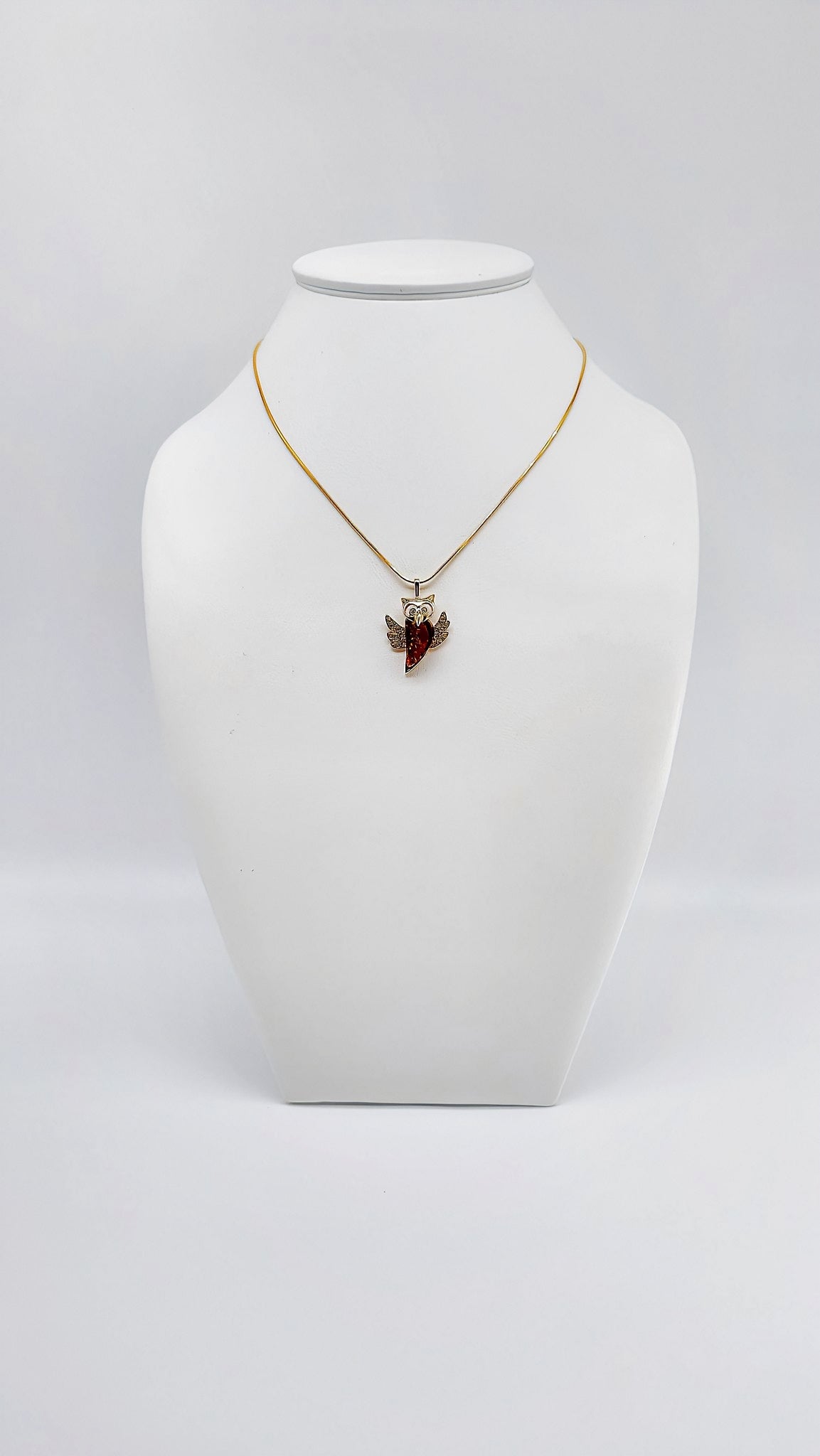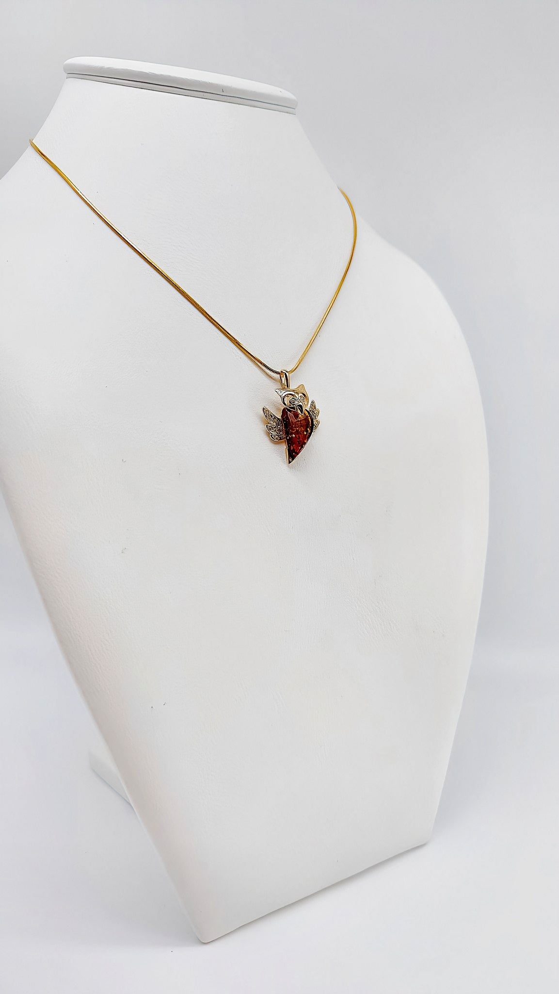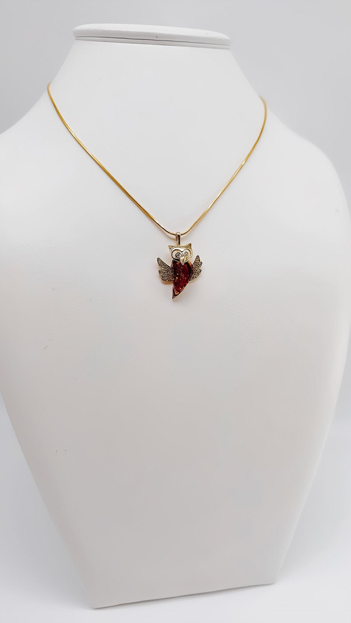 Wisdom and splendor: Gold-plated owl pendant with amber