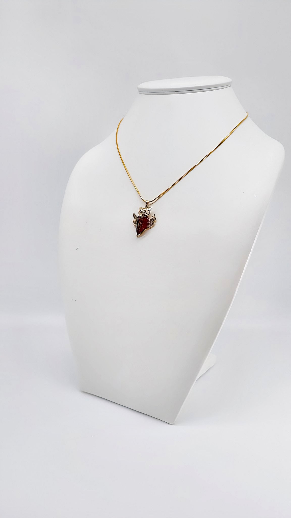 This enchanting owl-shaped pendant is a true piece of jewelry, captivating with its elegant design and premium materials. The owl's body is made of high-quality amber, shimmering in warm, golden tones. The wings and head are crafted from gold-plated silver, adding sparkling accents. Perfect for anyone who appreciates elegance and a touch of mystery in their jewelry.